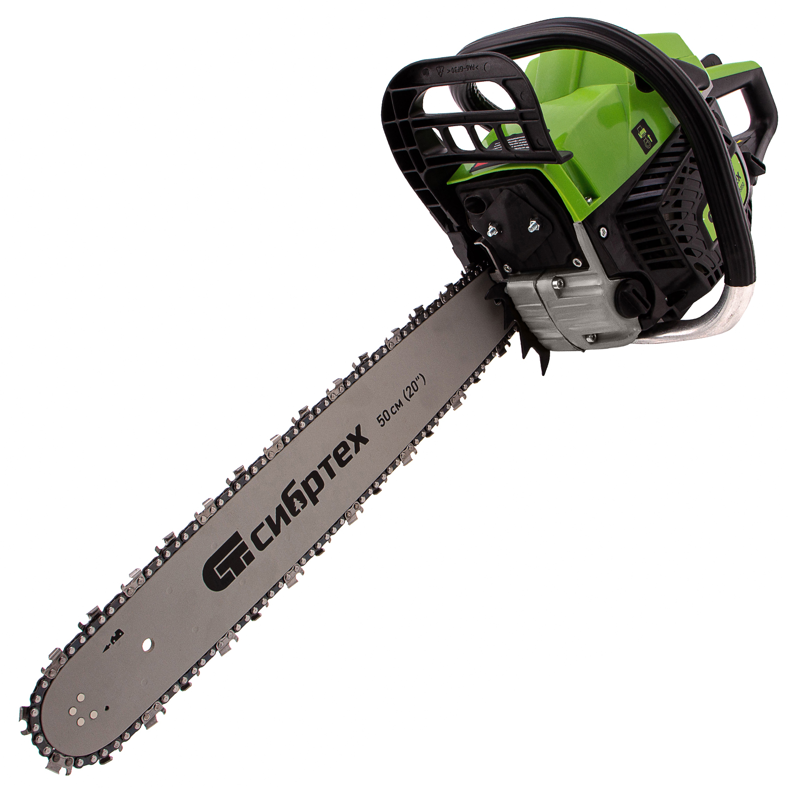 Пила цепная бензиновая Сибртех БП-5850 95210 с двухтактным двигателем объемом 58 см3 и мощностью 3,9 л.с предназначена для распиловки древесины различных пород, заготовки дров, спиливания веток и крупных сучков. Пригодится во время ремонта, строительства, благоустройства садового участка и при выполнении бытовых задач. Мощный и экономичный двигатель в сочетании с качественной шиной длиной 50 см (цепь с 76 звеньями с шагом 0,325 дюйма и шириной паза 1,5 мм) позволяют достичь наилучших результатов да.