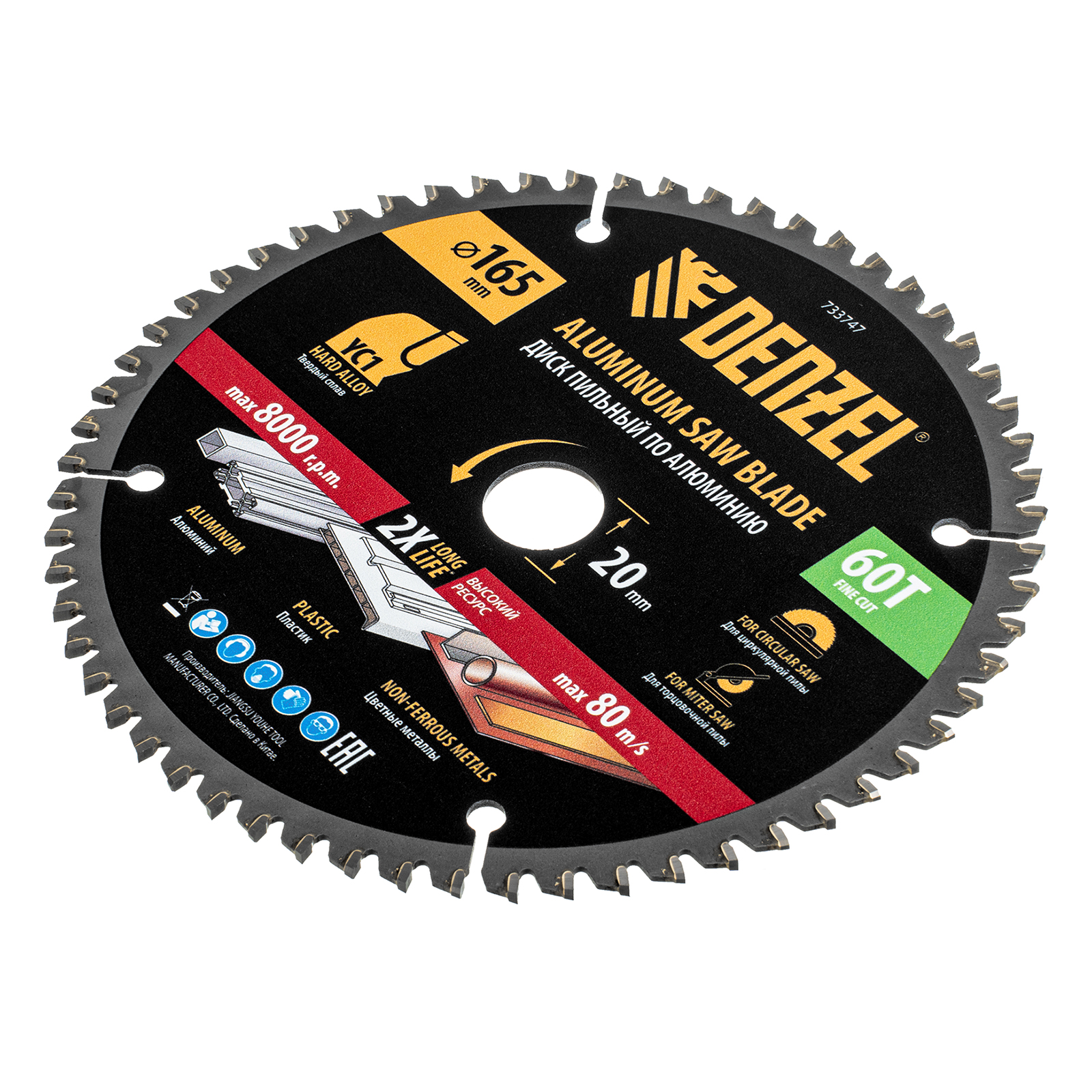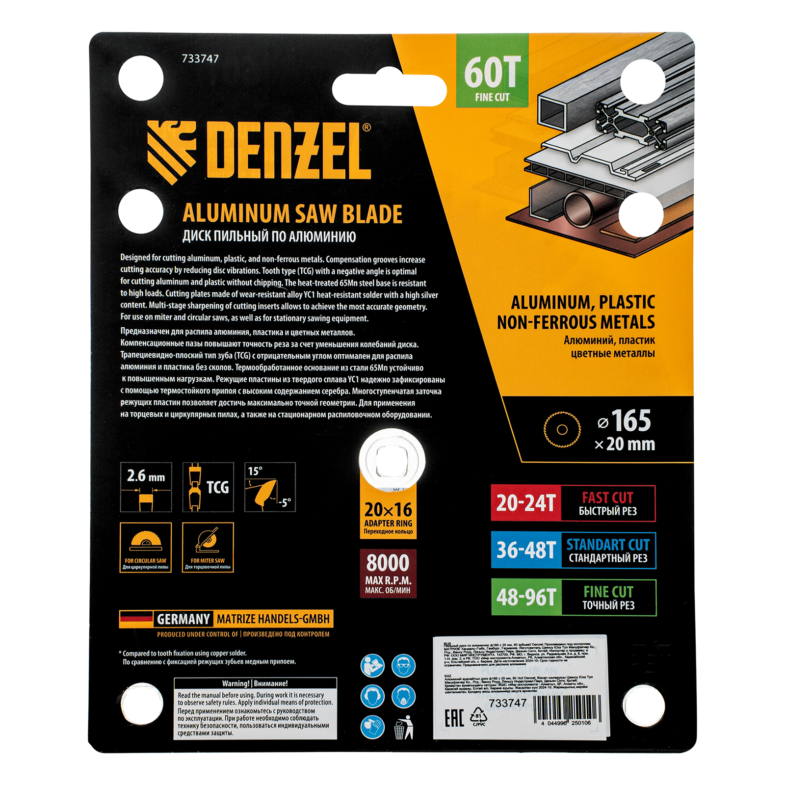 Пильный диск по алюминию ф165 х 20 мм, 60 зубьев Denzel