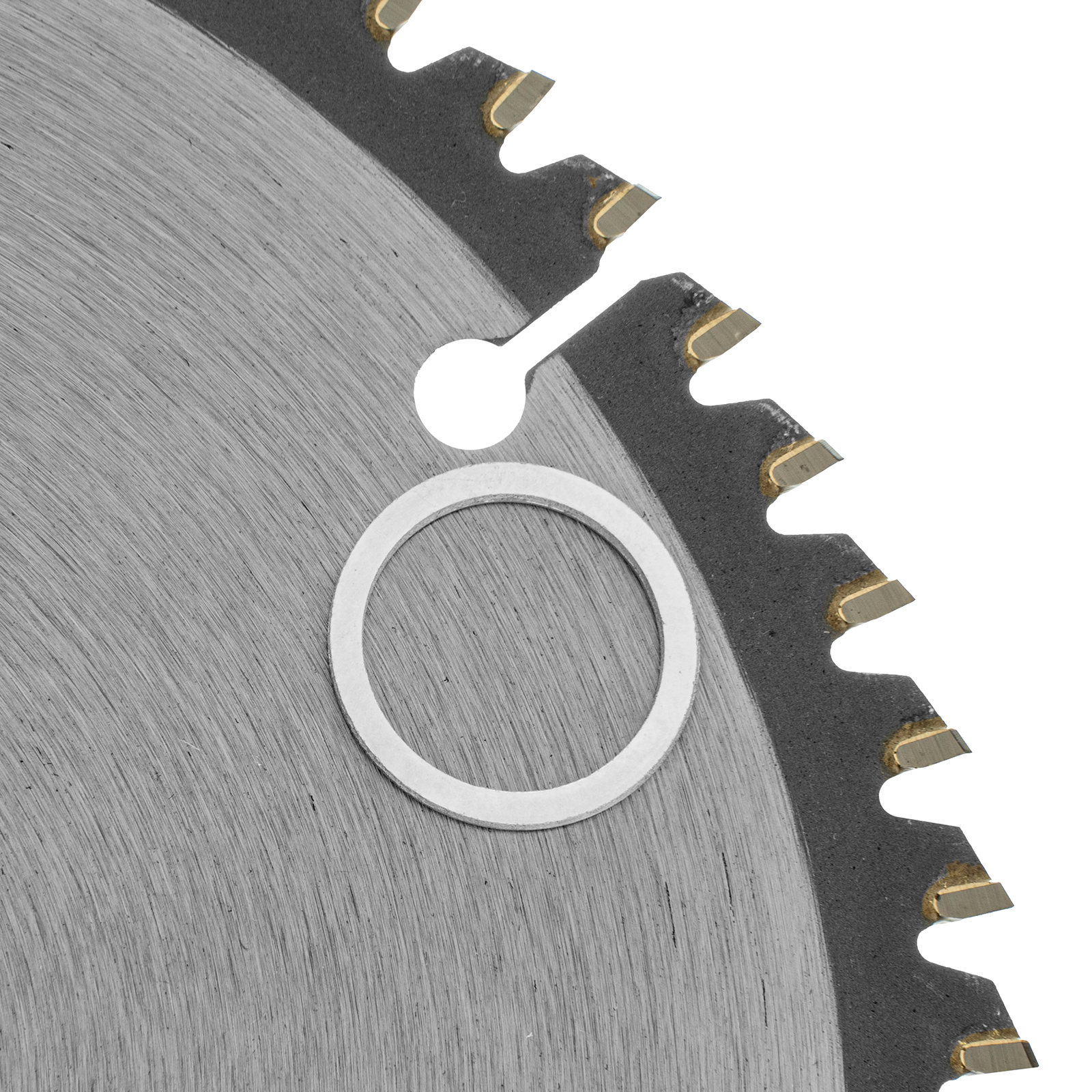 Пильный диск Denzel 733747 диаметром 165 x 20 мм, с 60 зубьями, предназначен для распиливания заготовок из алюминия, пластика, цветных металлов. Устанавливается на циркулярную или торцовочную пилу, поддерживающую максимальную частоту вращения 12000 об/мин, также возможно использование с распиловочным станком. Зубья трапециевидно-плоского типа (TCG) с отрицательным углом заточки обеспечивают ровный рез без сколов. В комплект поставки входит переходное кольцо 20/16 мм, позволяющее изменить посадочный диаметр при необходимости.