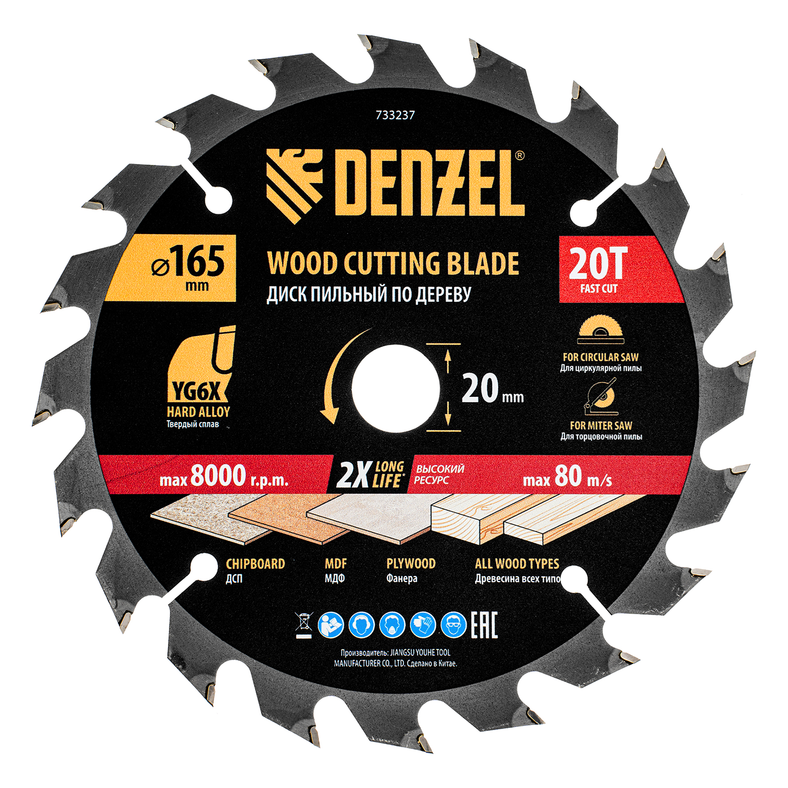 Пильный диск по дереву ф165 х 20 мм, 20 зубьев Denzel