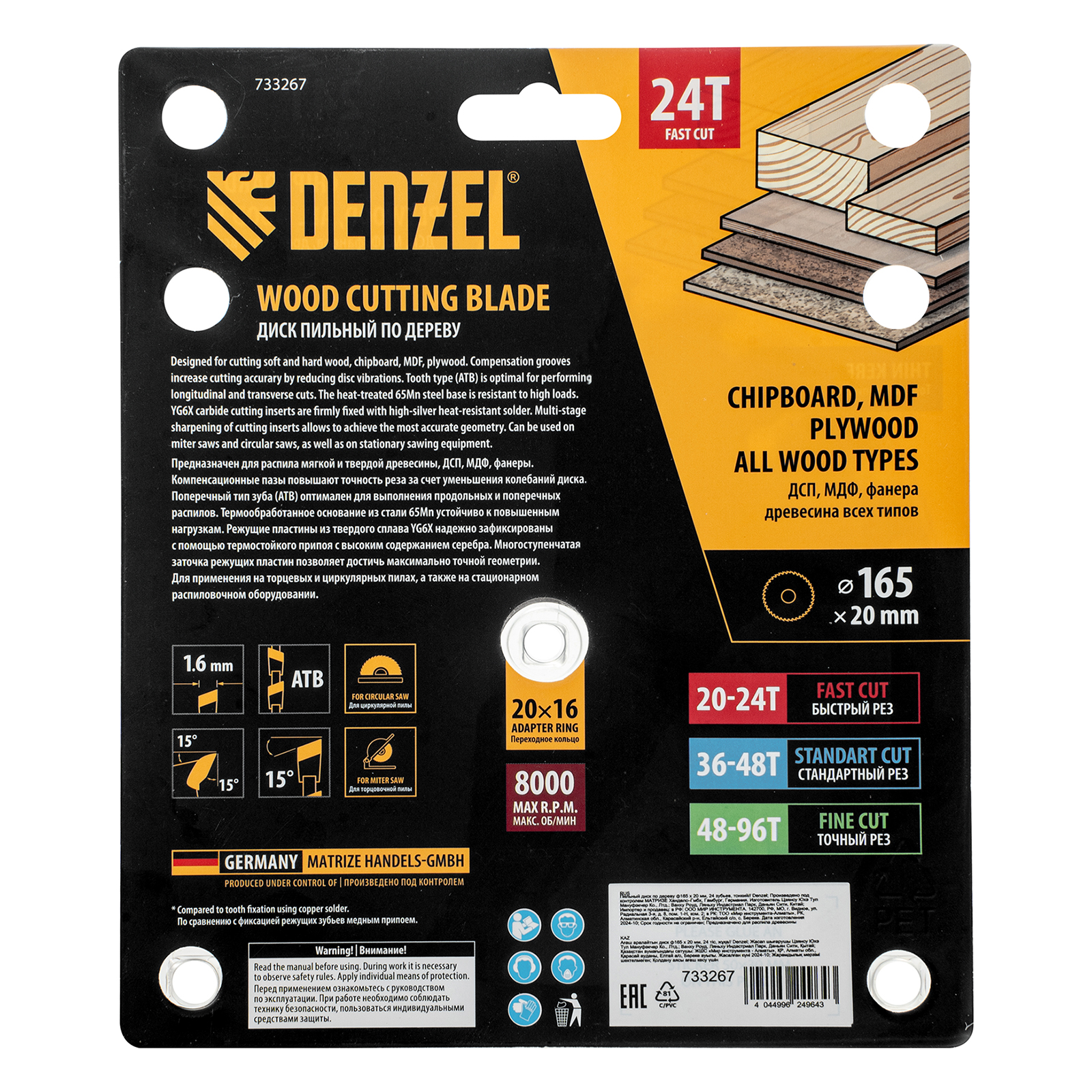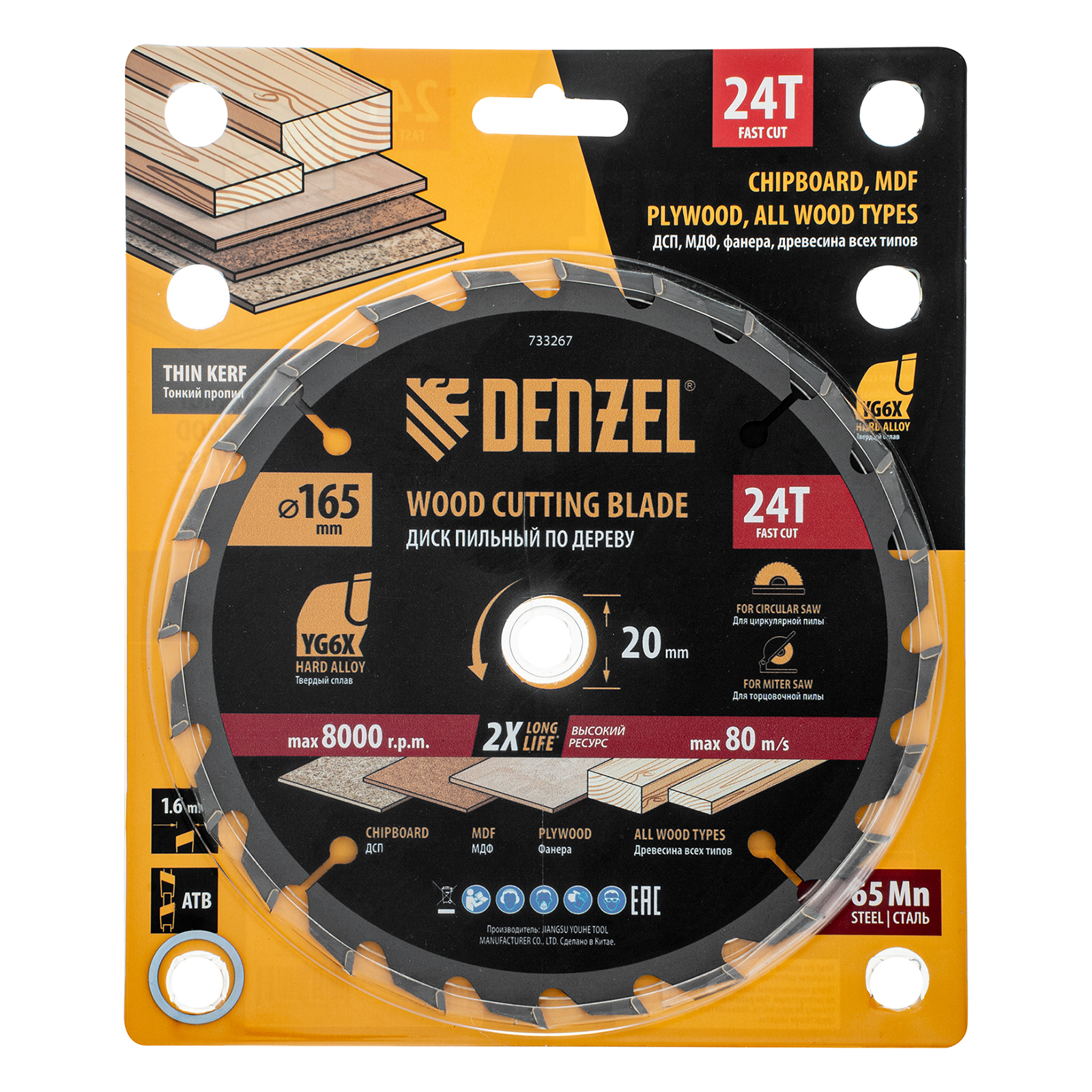 Пильный диск по дереву ф165 х 20 мм, 24 зубьев, тонкий Denzel