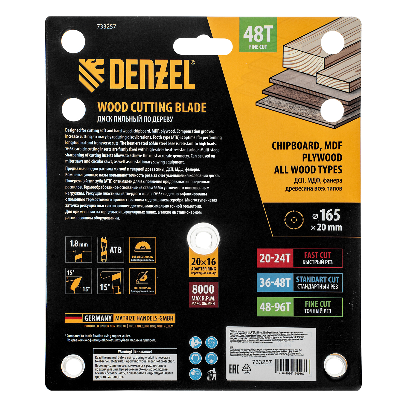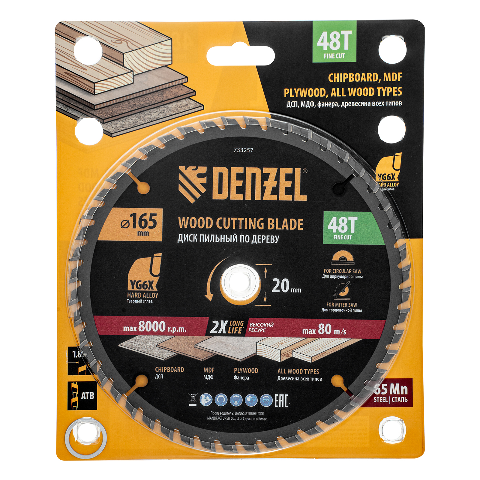 Пильный диск по дереву ф165 х 20 мм, 48 зубьев Denzel