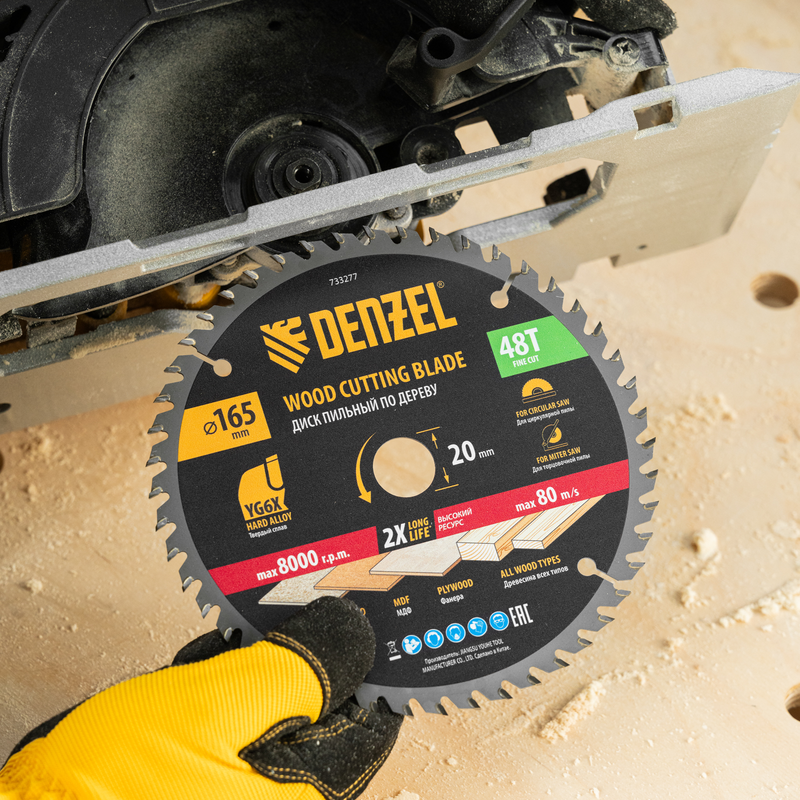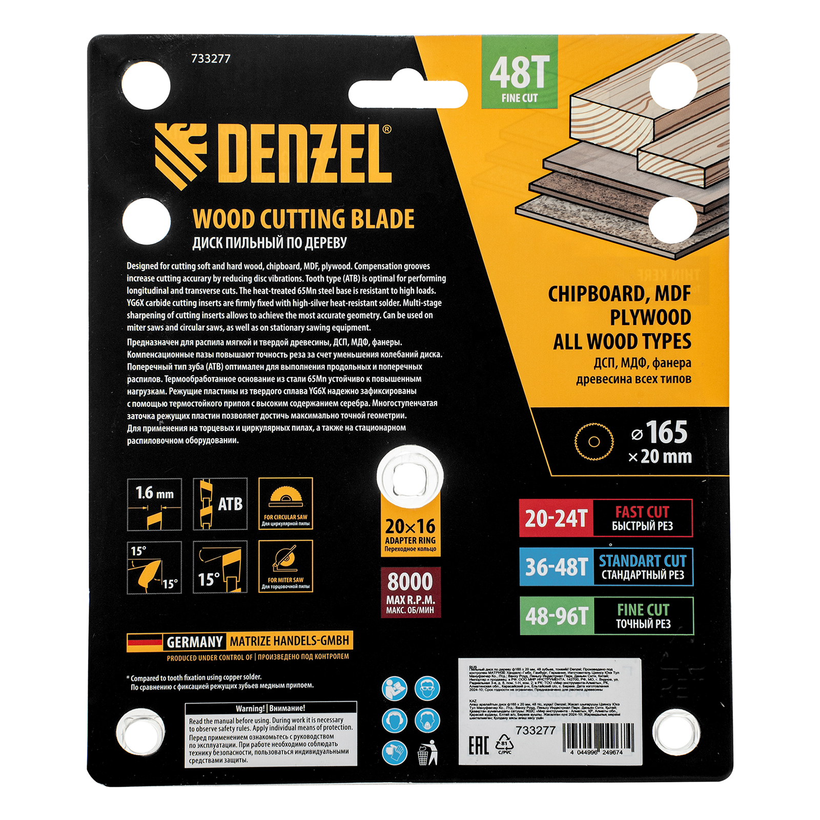 Пильный диск по дереву ф165 х 20 мм, 48 зубьев, тонкий Denzel