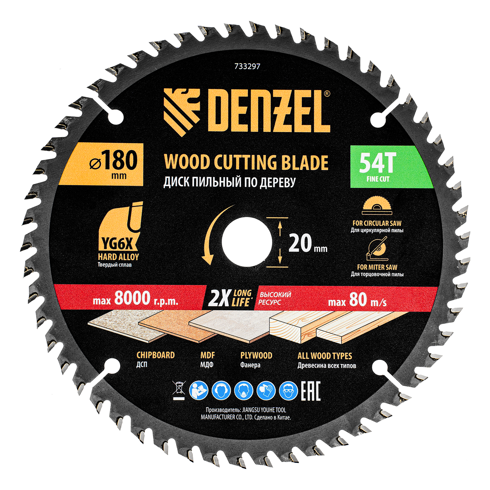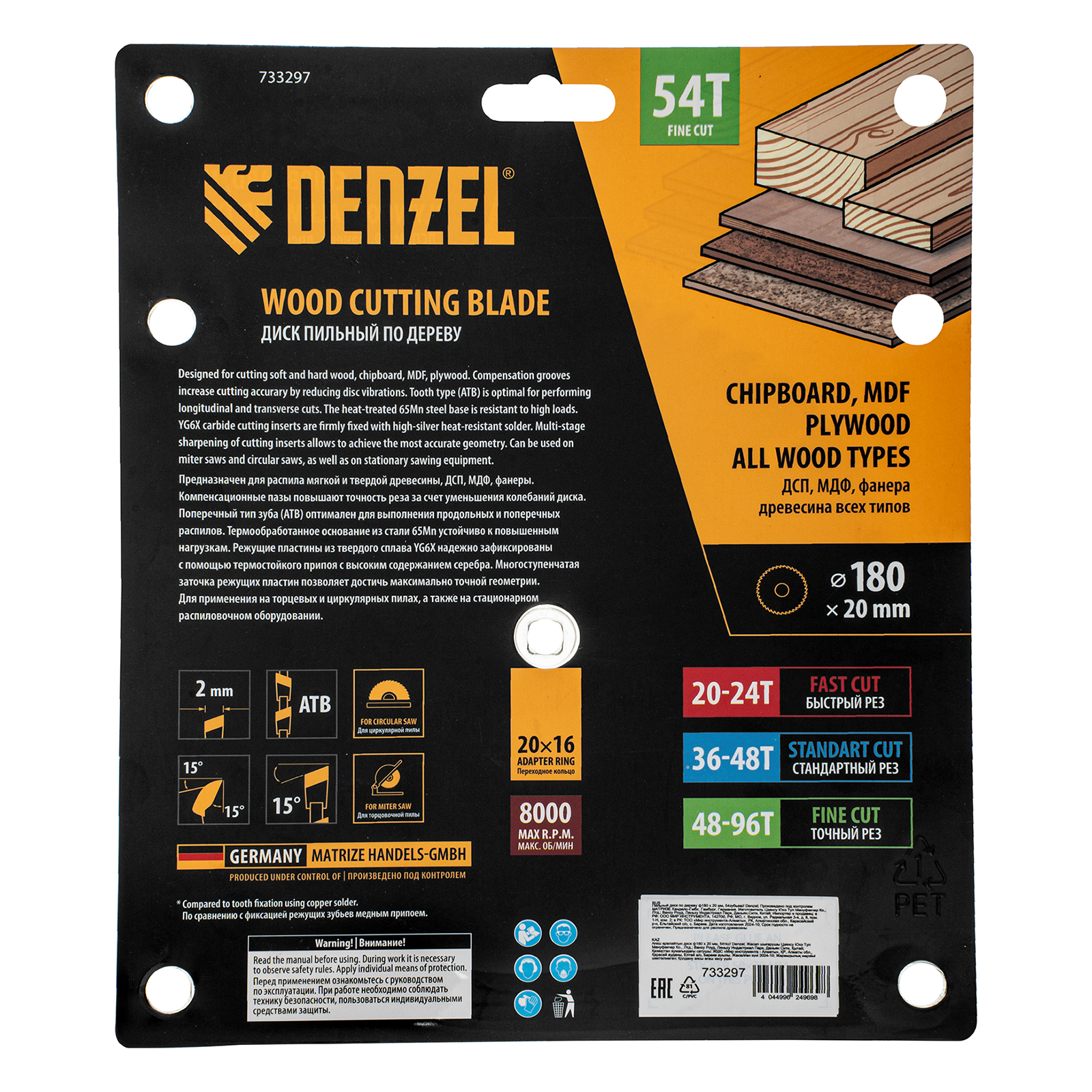 Пильный диск по дереву ф180 х 20 мм, 54зубьев Denzel