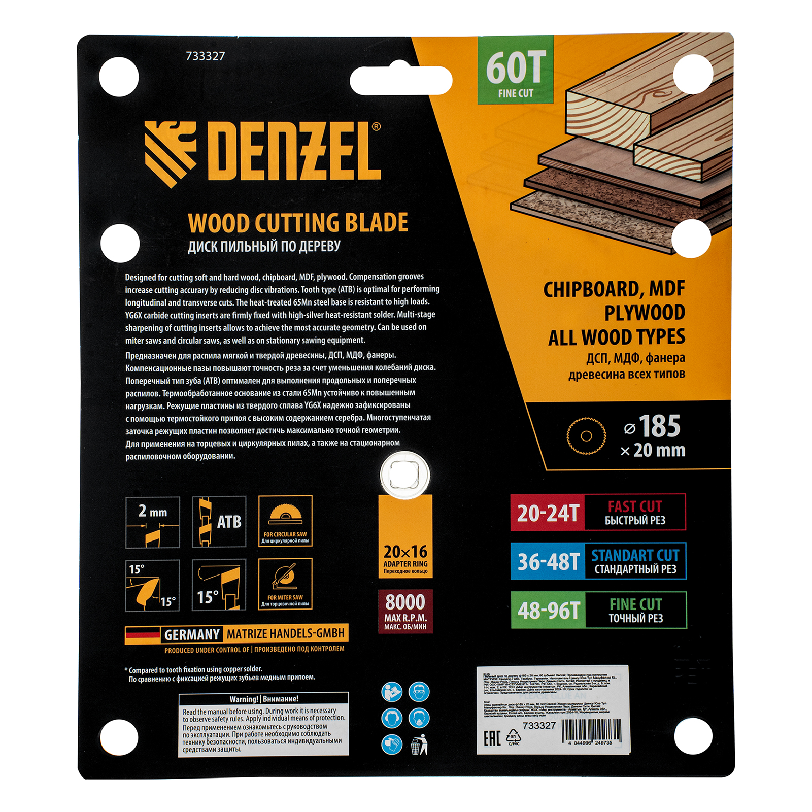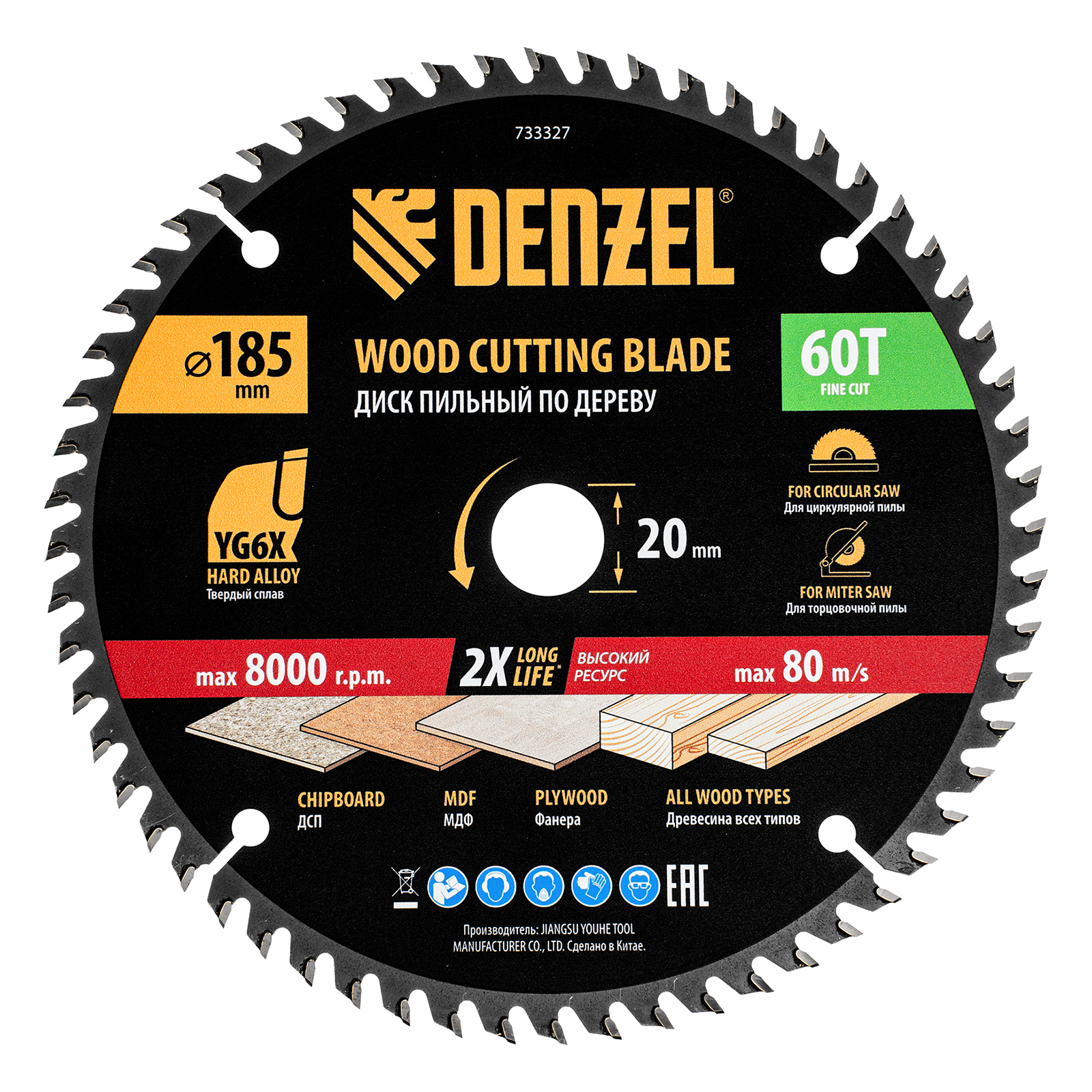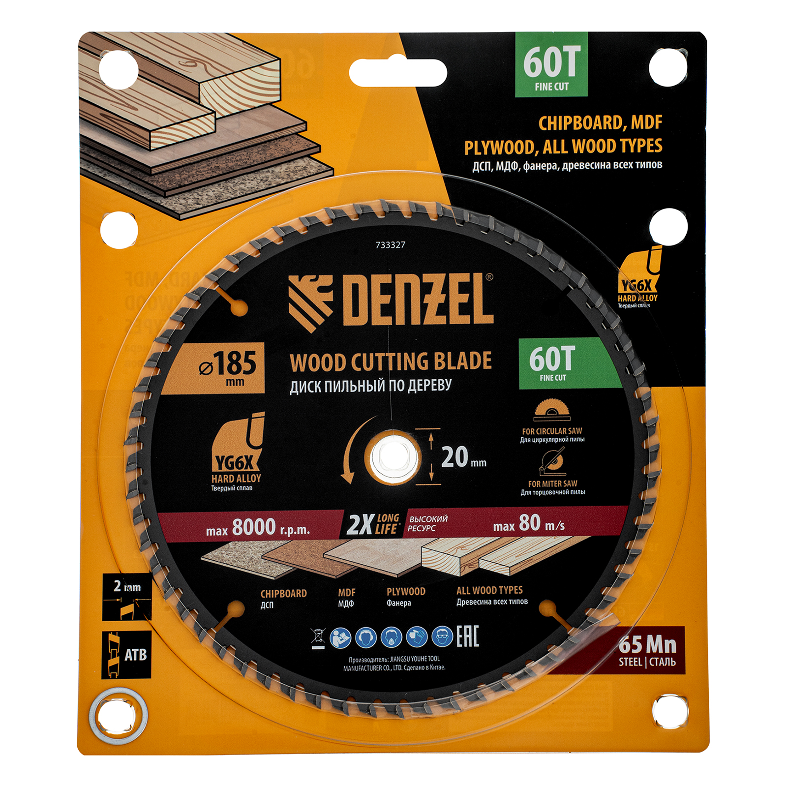 Пильный диск по дереву ф185 х 20 мм, 60 зубьев Denzel