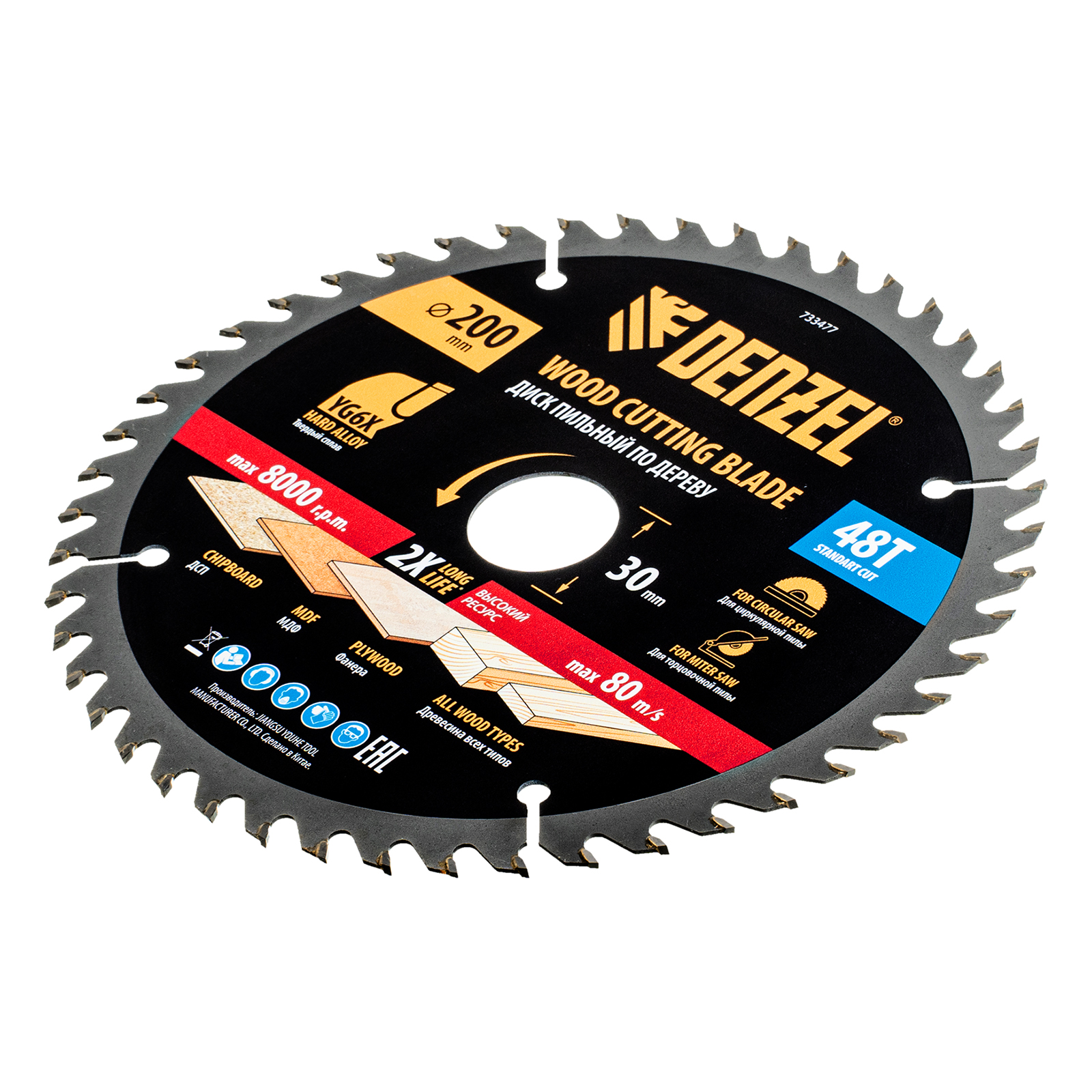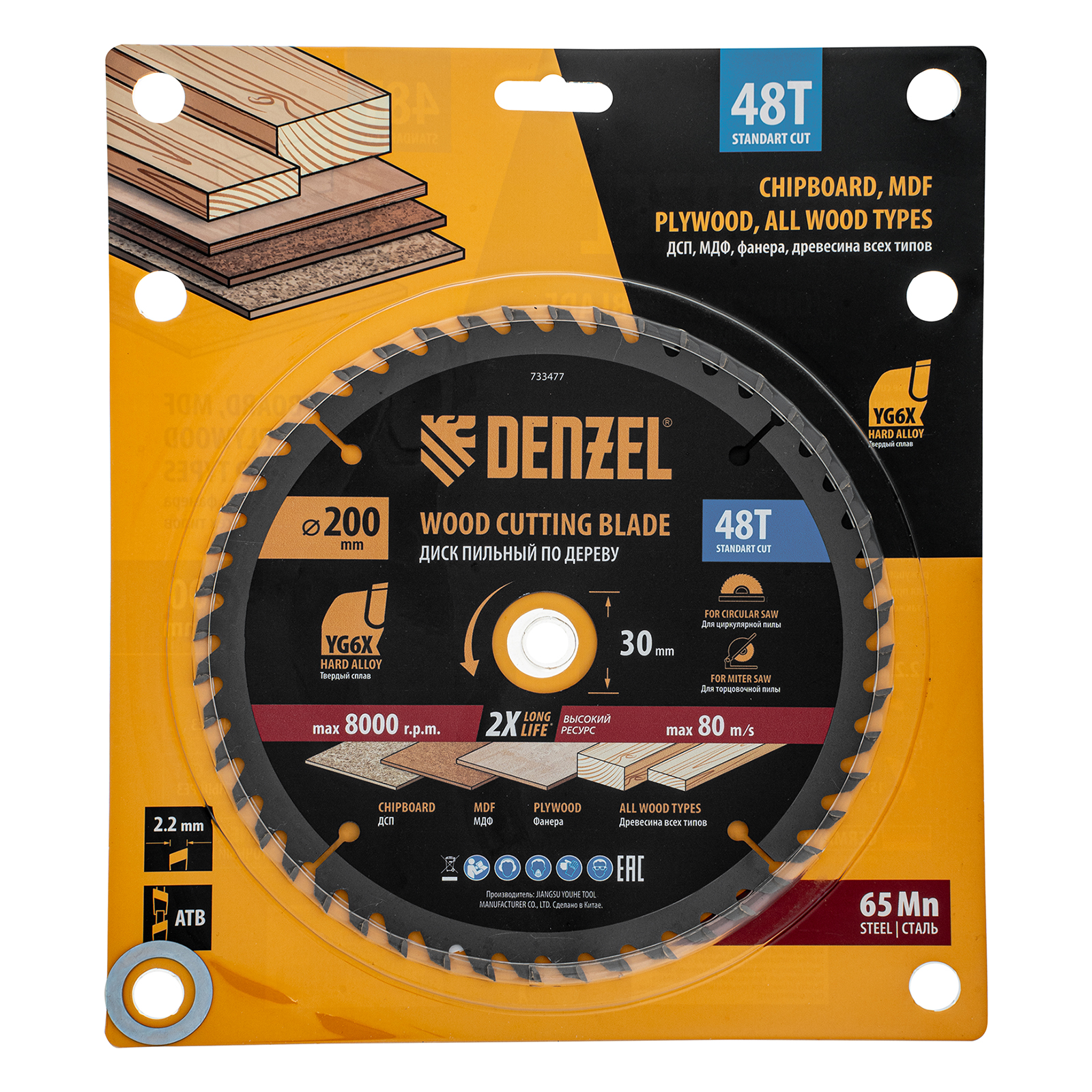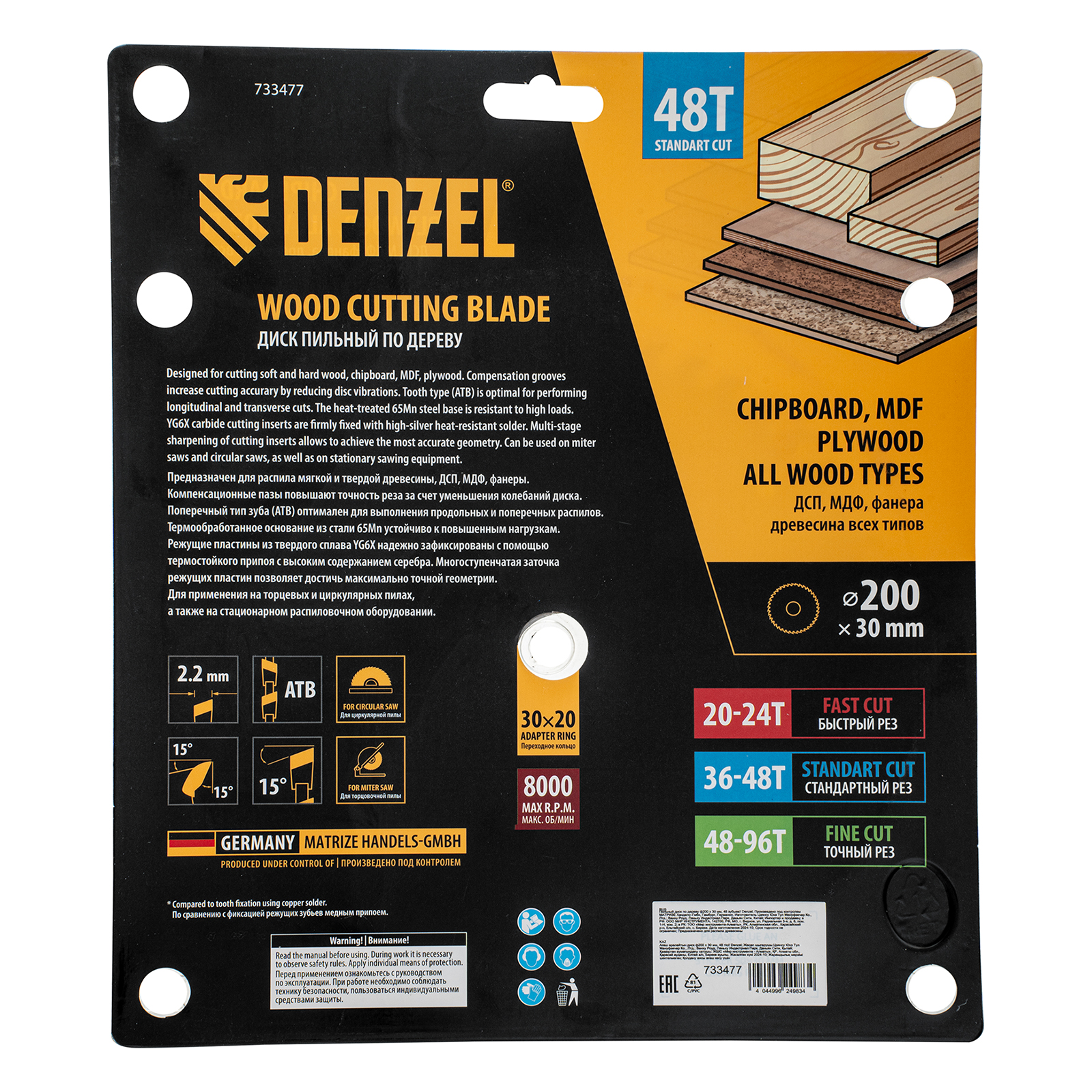 Пильный диск по дереву ф200 х 30 мм, 48 зубьев Denzel