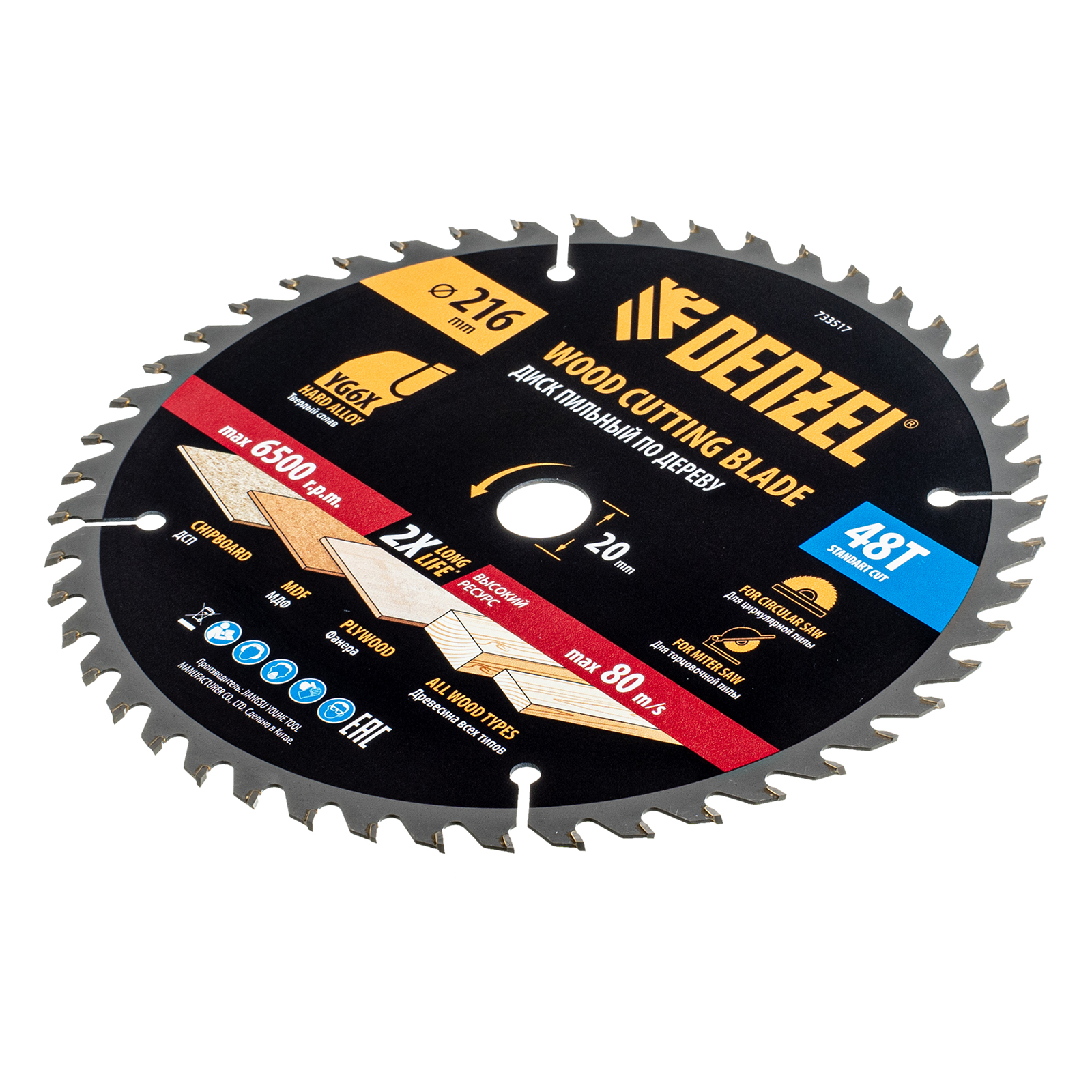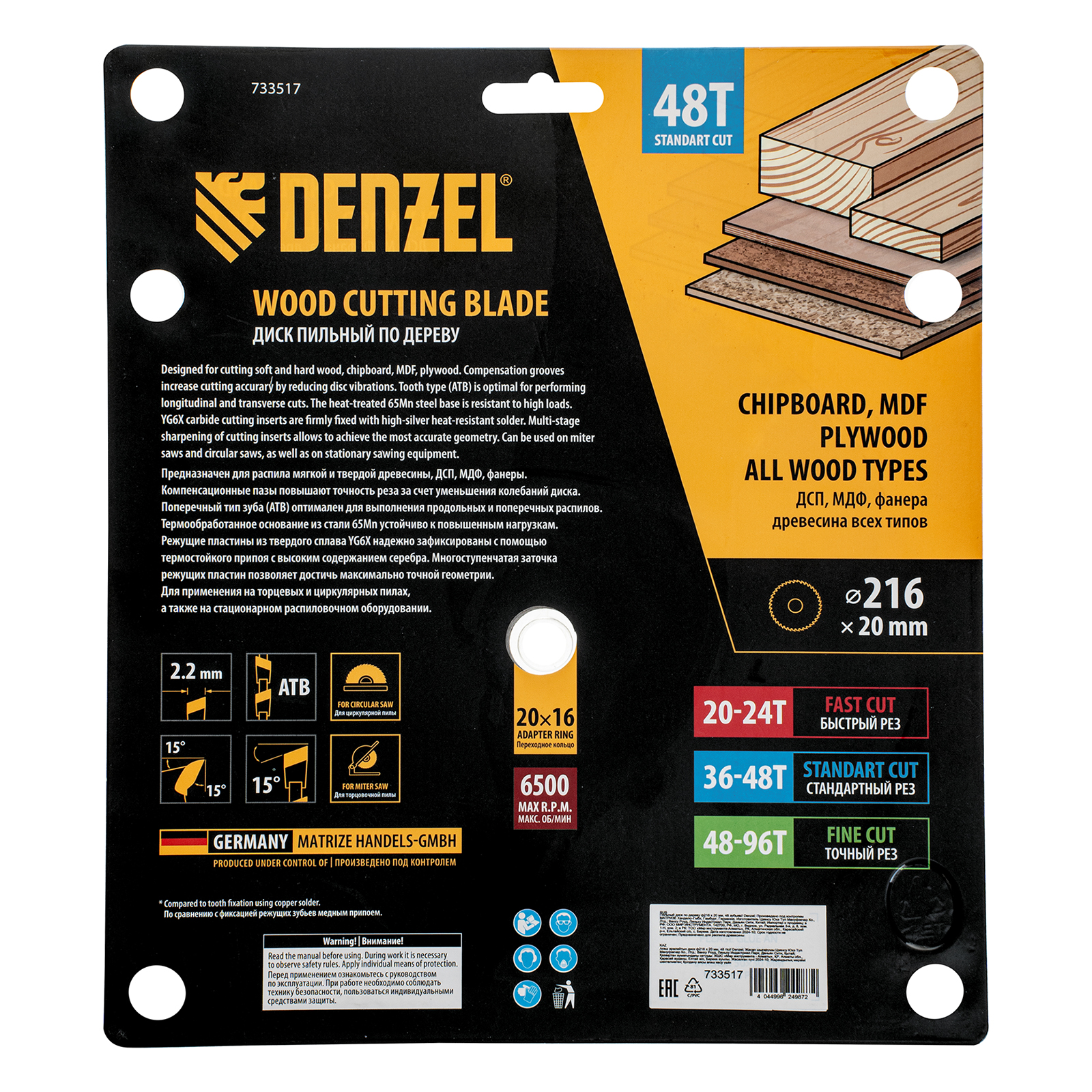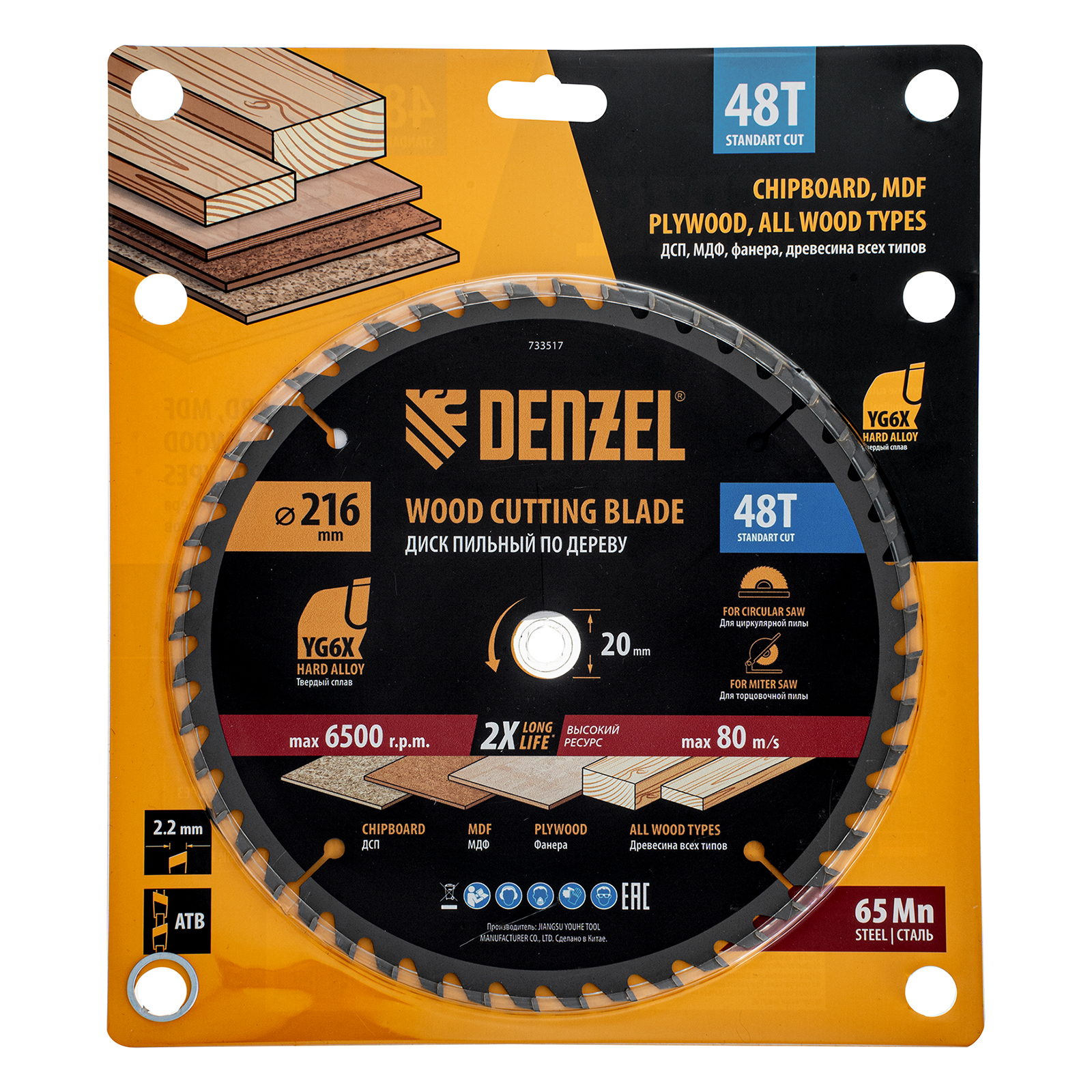 Пильный диск по дереву ф216 х 20 мм, 48 зубьев Denzel