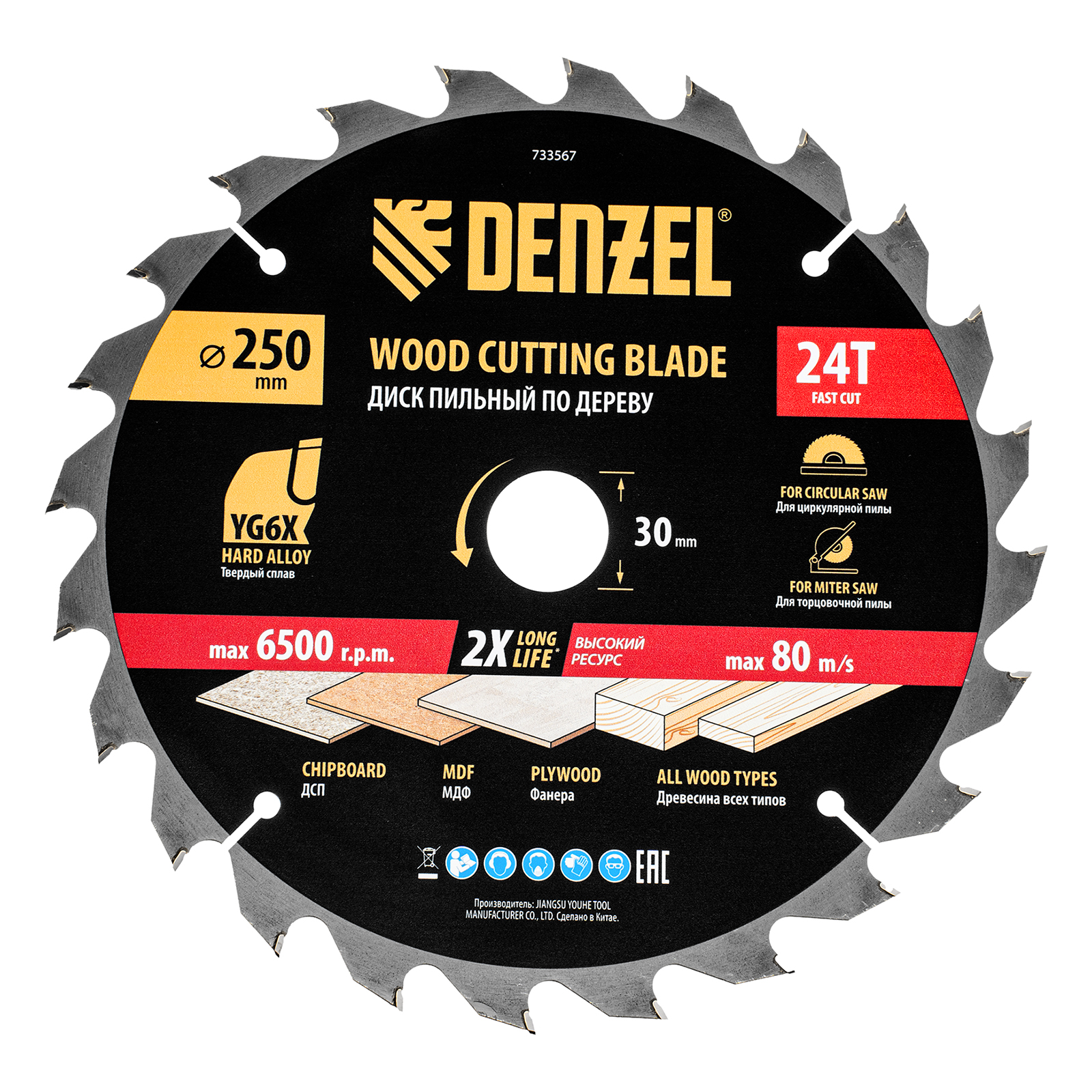 Пильный диск по дереву ф250 х 30 мм, 24 зубьев Denzel