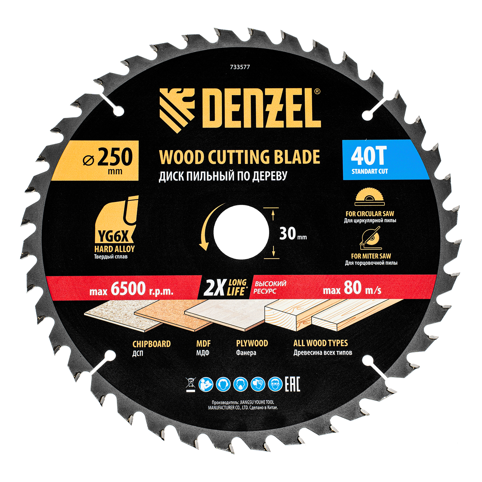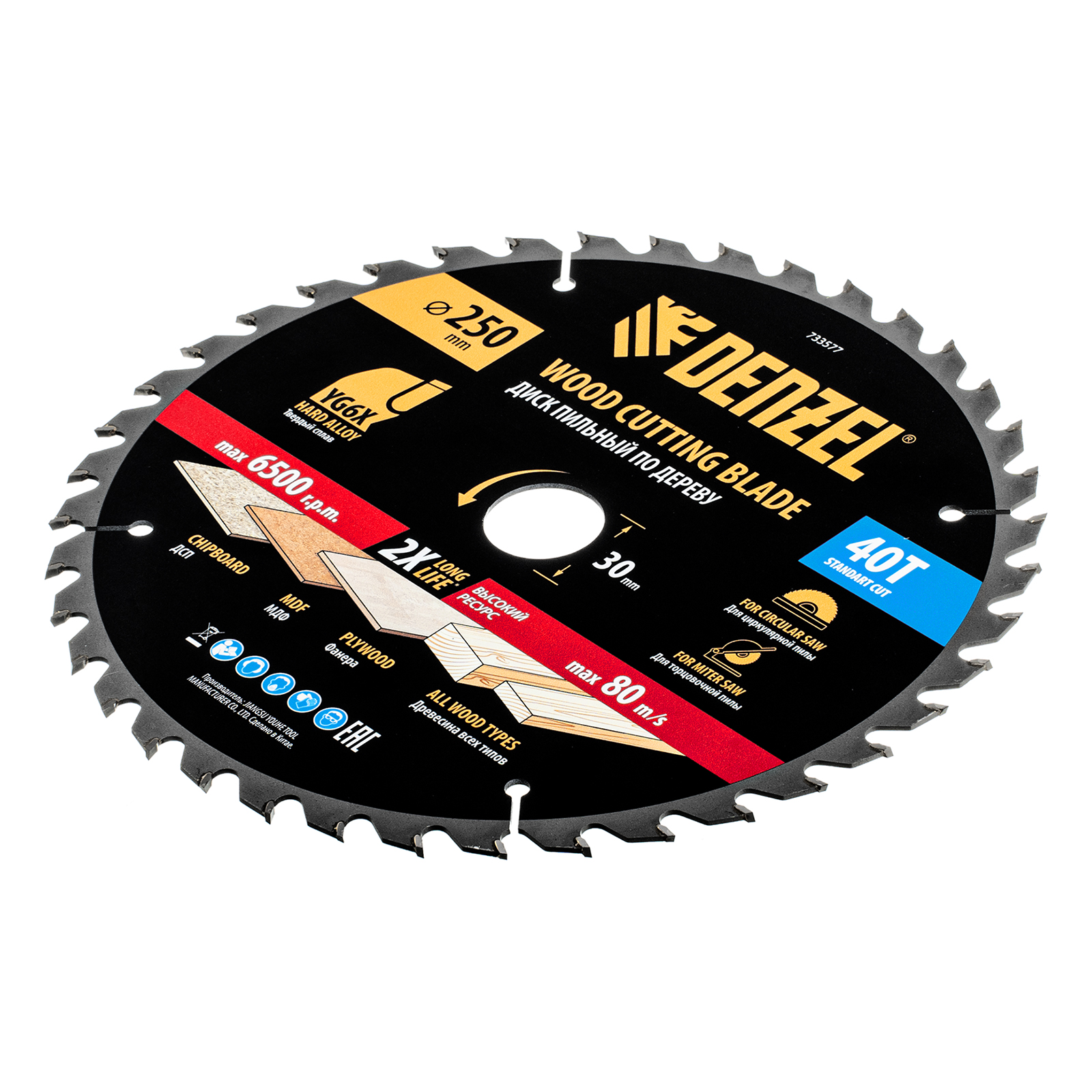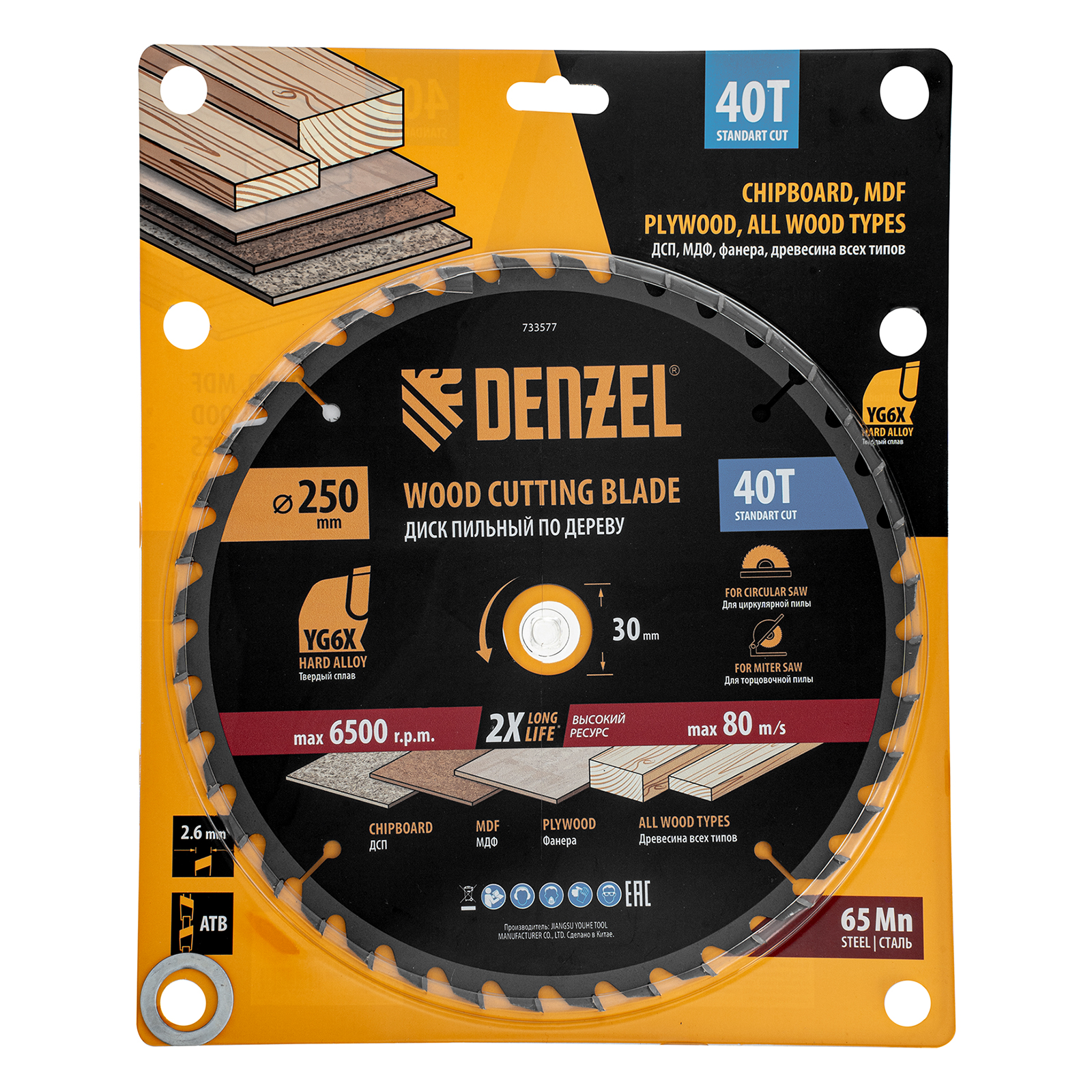 Пильный диск по дереву ф250 х 30 мм, 40 зубьев Denzel