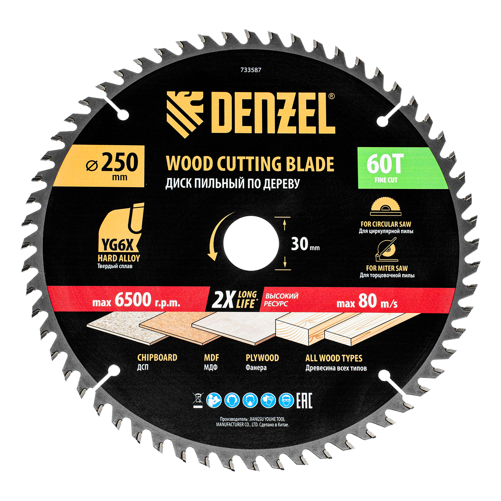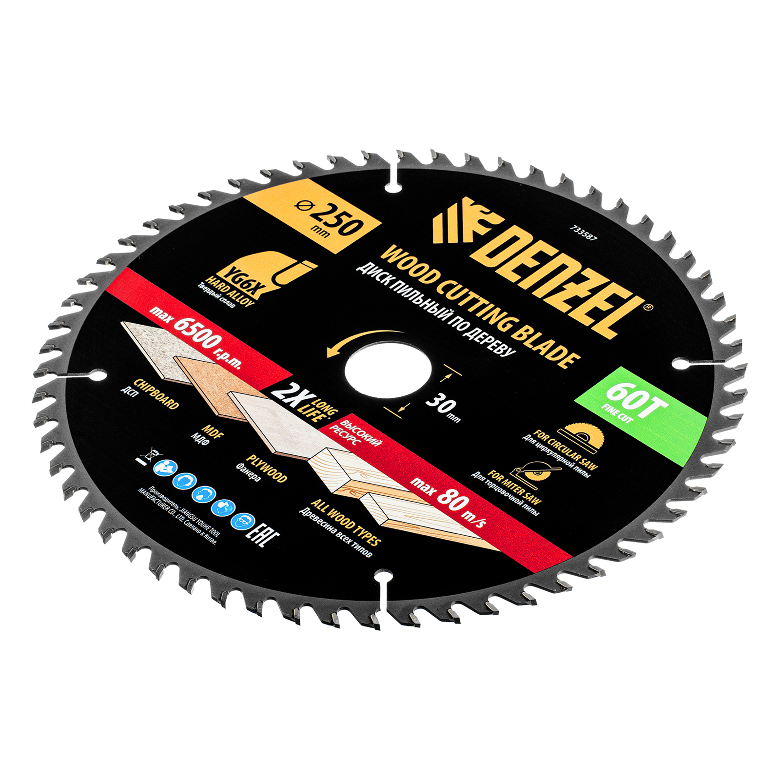 Пильный диск по дереву ф250 х 30 мм, 60 зубьев Denzel