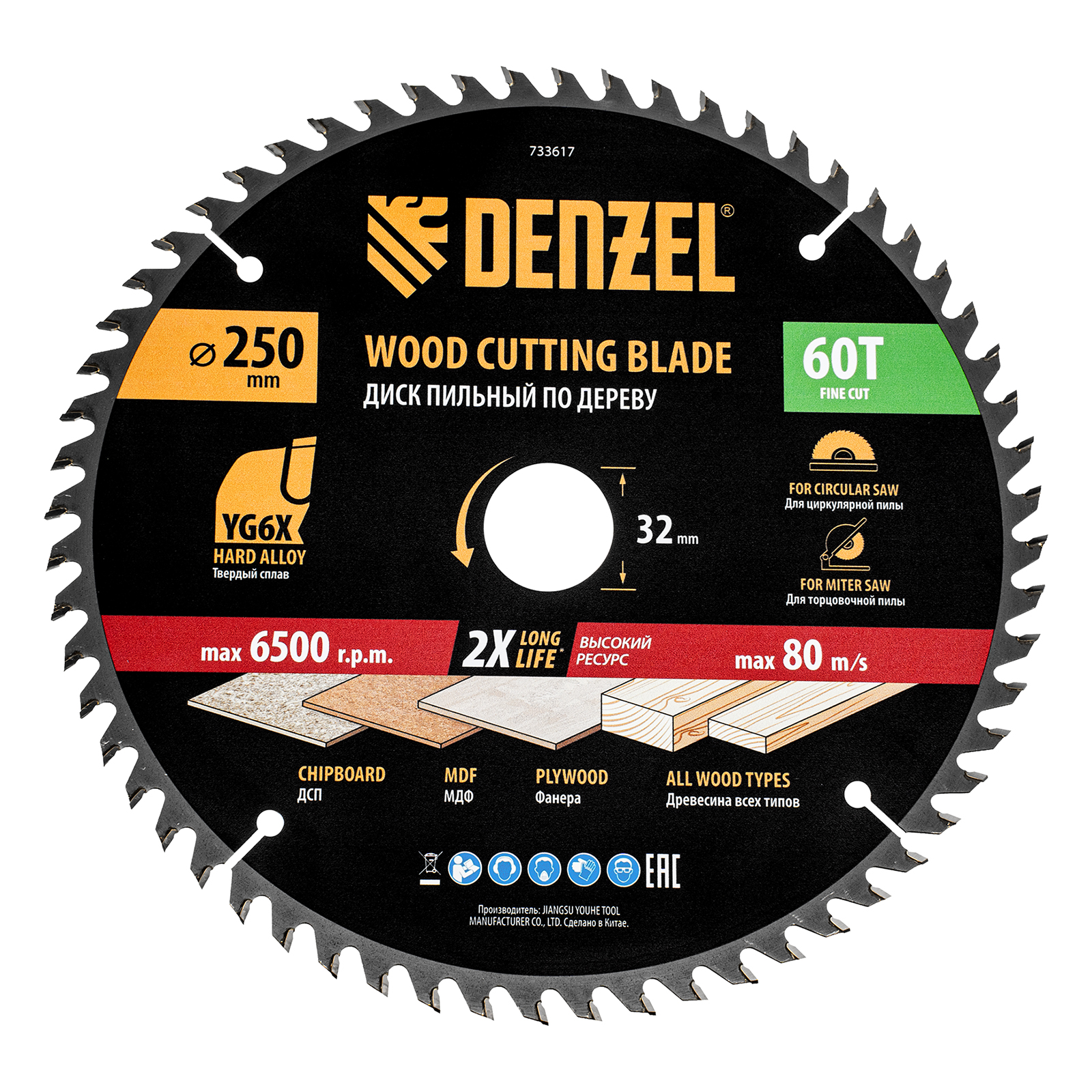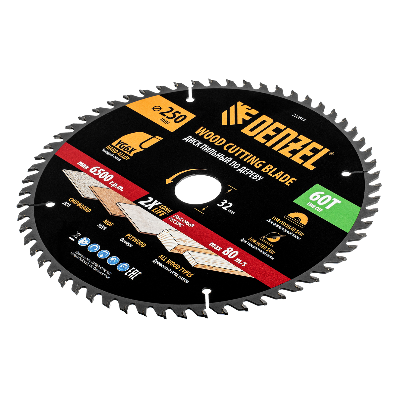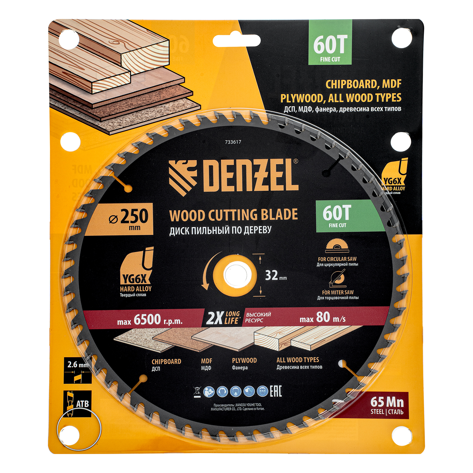Пильный диск по дереву ф250 х 32 мм, 60 зубьев Denzel