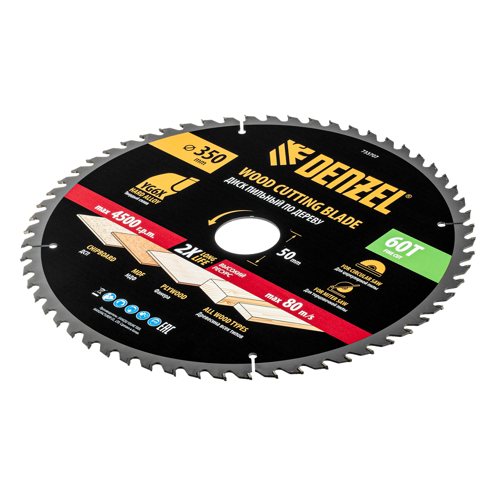 Пильный диск по дереву ф350 х 50 мм, 60 зубьев Denzel
