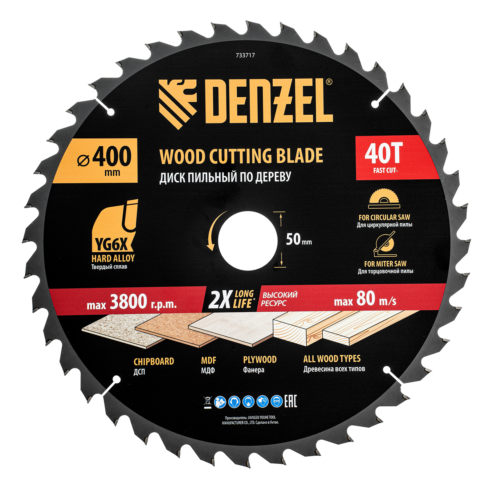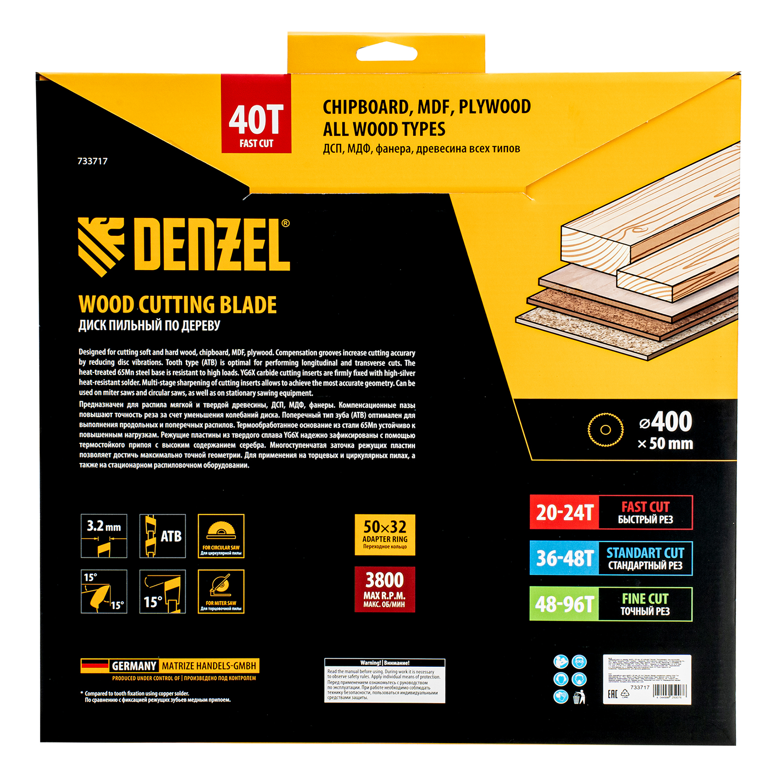 Пильный диск по дереву ф400 х 50 мм, 40 зубьев Denzel
