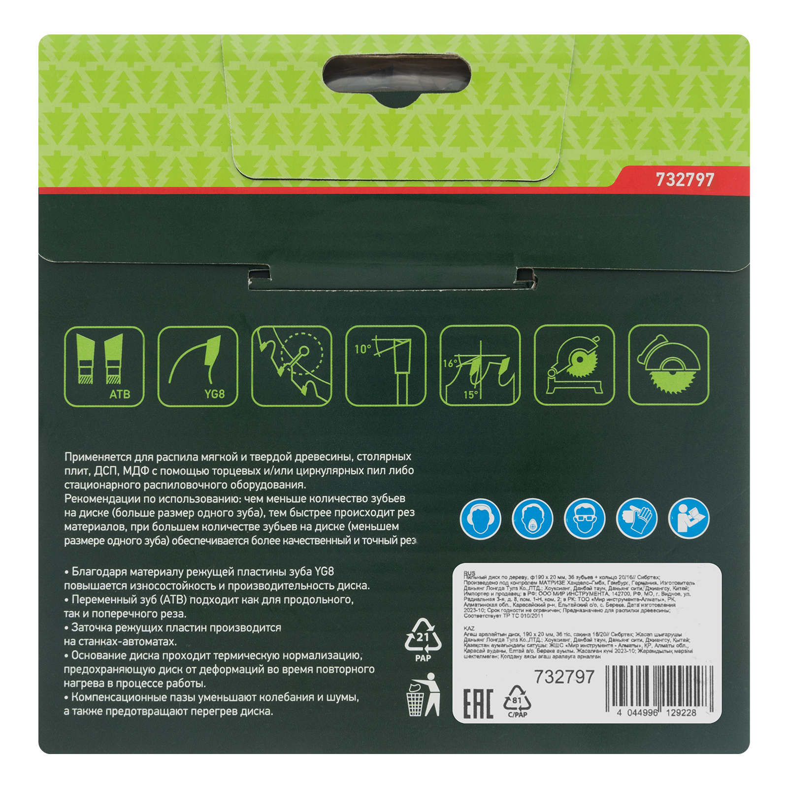 - Прочность и высокая производительность — основание диска изготовлено из стали 50, режущие пластины выполнены из твердого сплава YG8 и заточены с использованием алмазного абразива.
