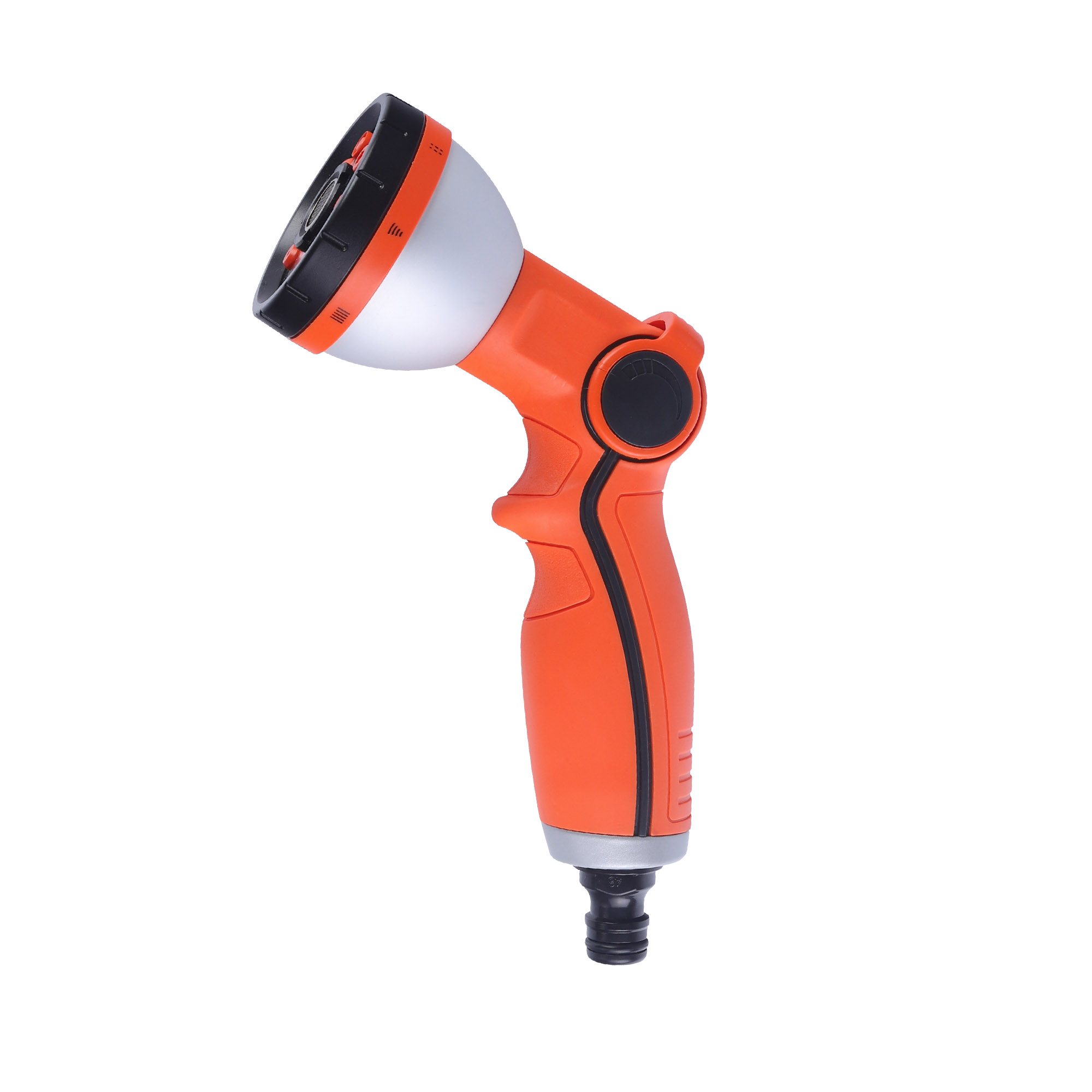 Восемь режимов работы — мягкая струя, водяной конус, аэрирование, жесткая струя, душ, вертикальный полив и плоская струя.