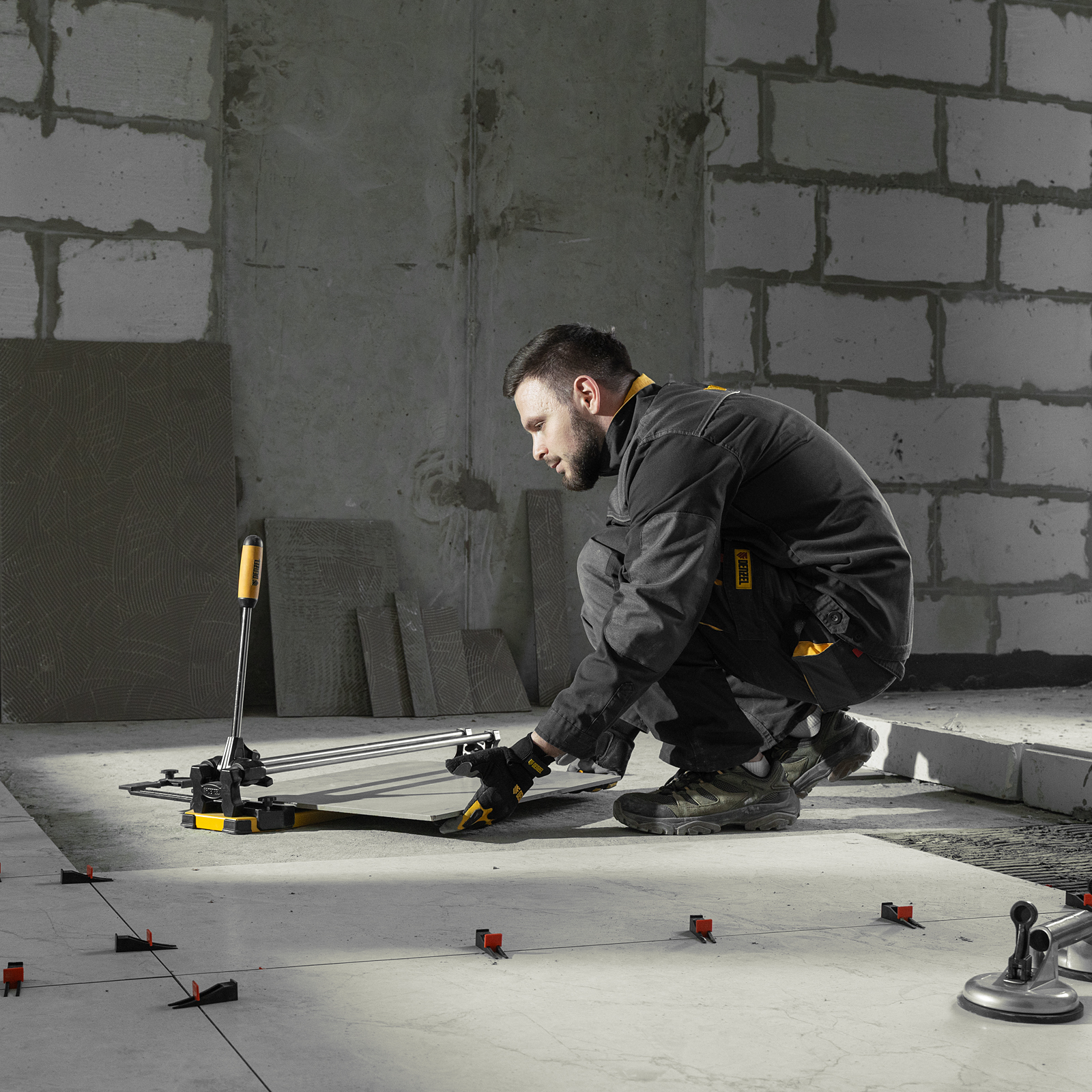 - Эргономичность — плитколом с магнитным держателем не создает помех во время резки.
