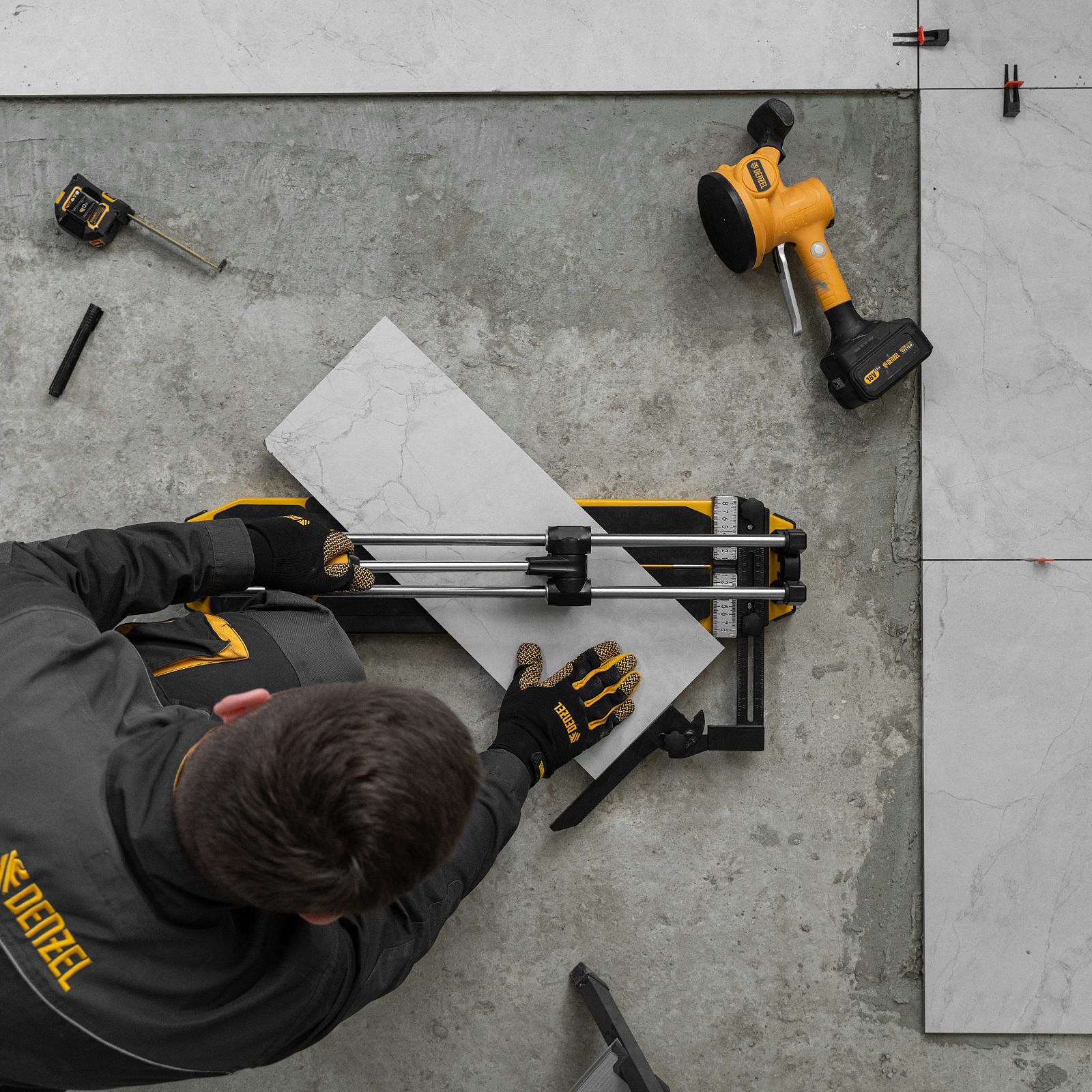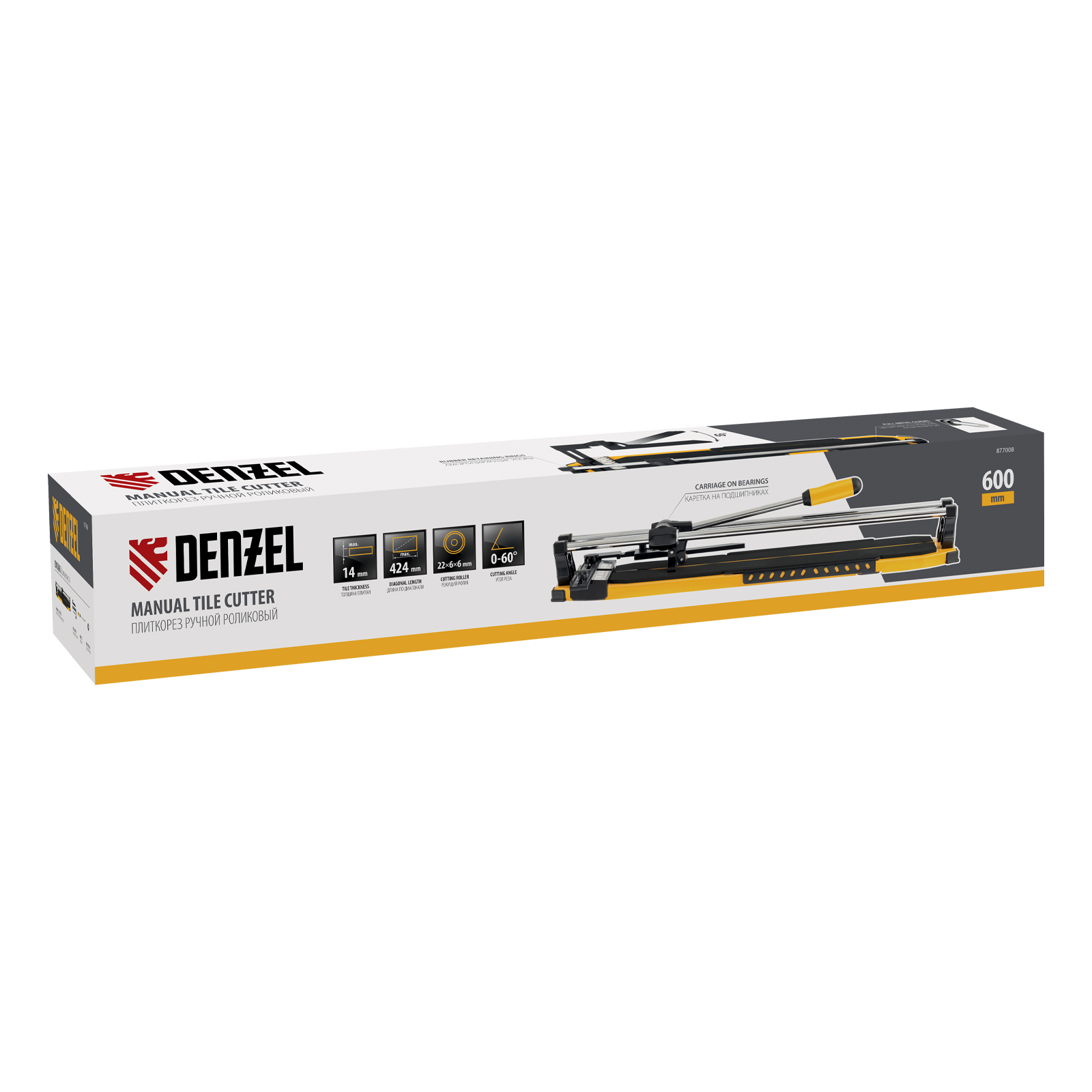 Плиткорез 600х14мм, цельнометал. напр., каретка на подш., стальная станина, рукоятка-пенал Denzel