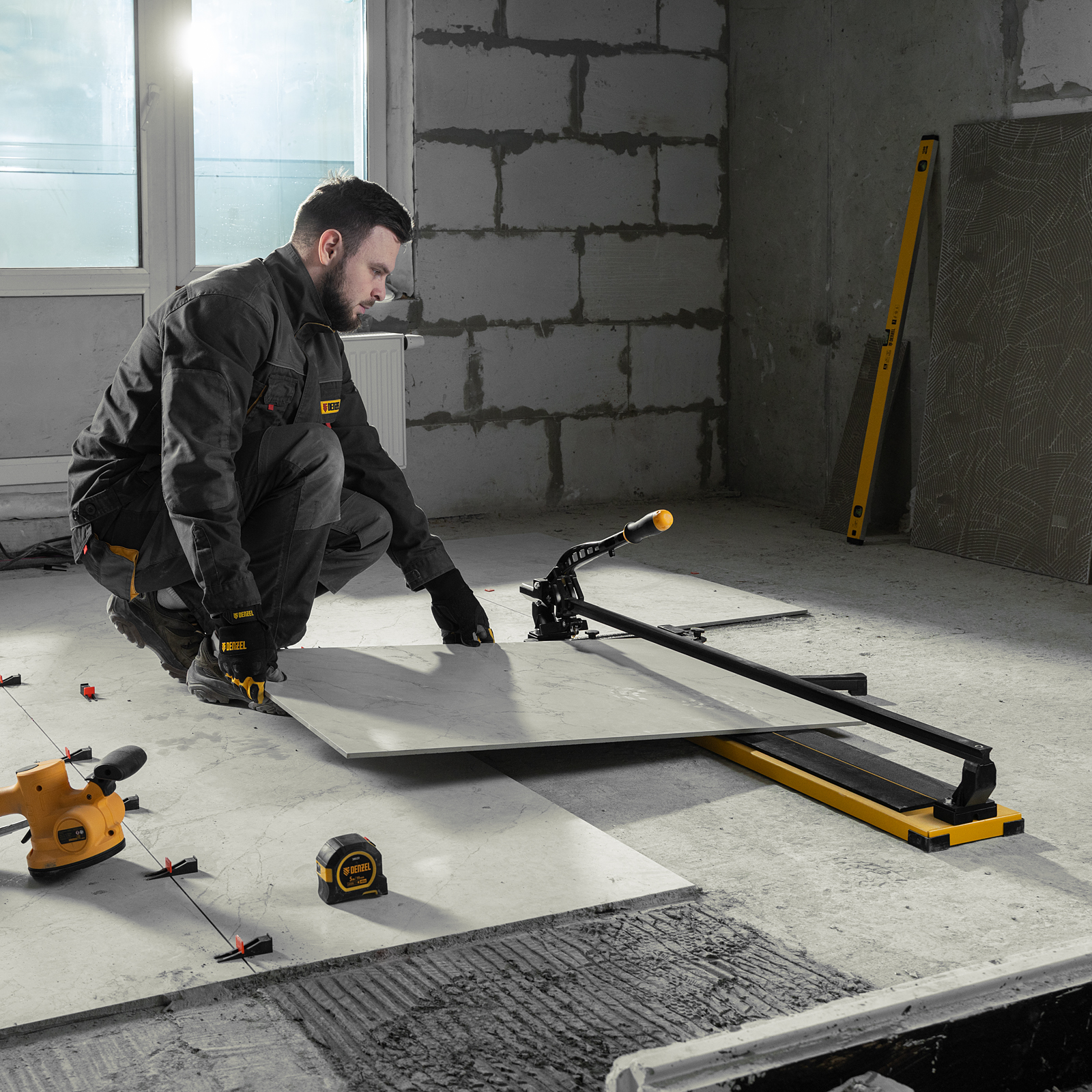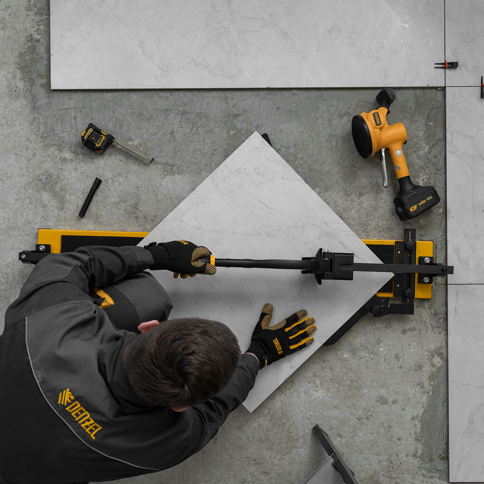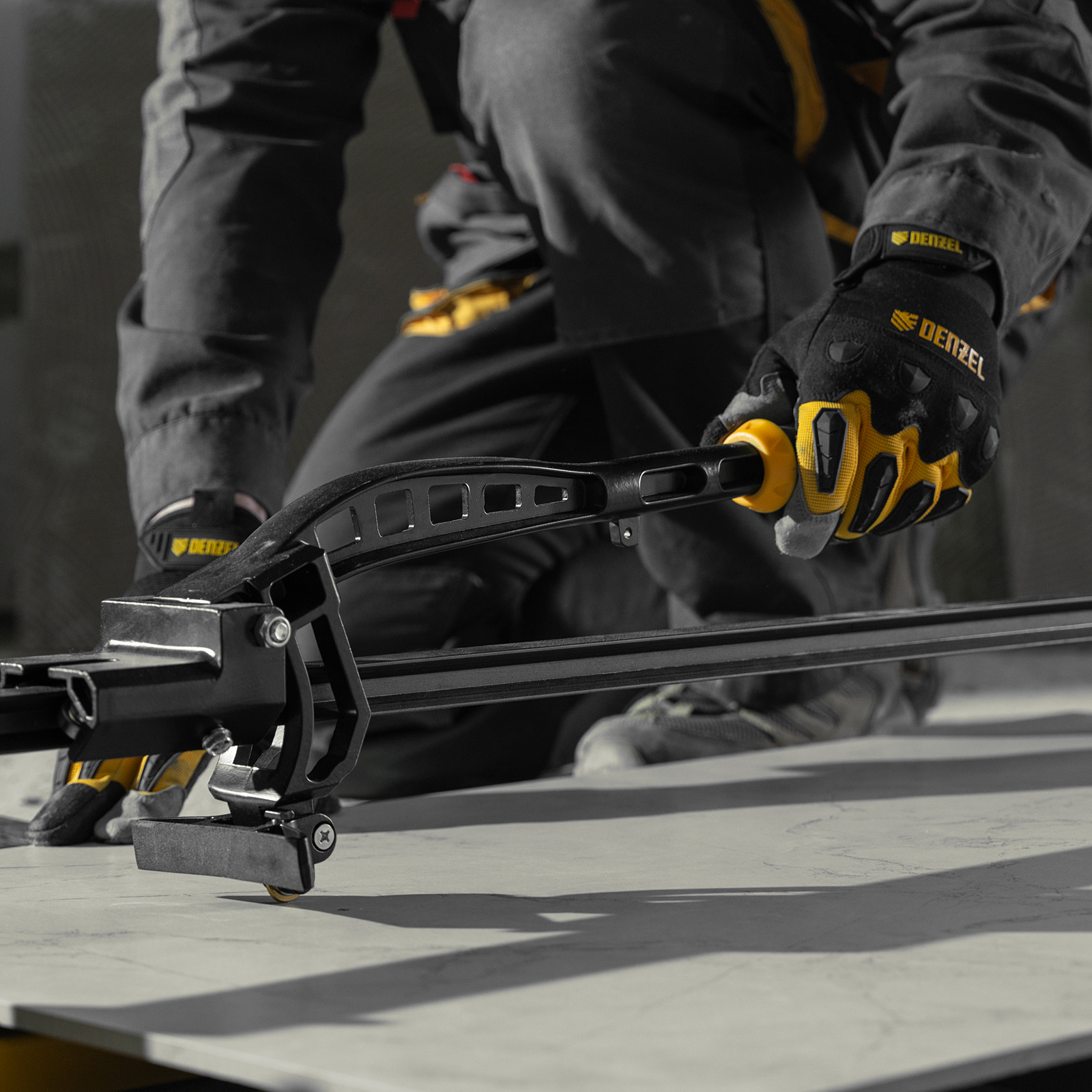 Плиткорез рельсовый 1000х16мм, каретка на подш., стальная станина, усил. рукоятка-пенал Denzel