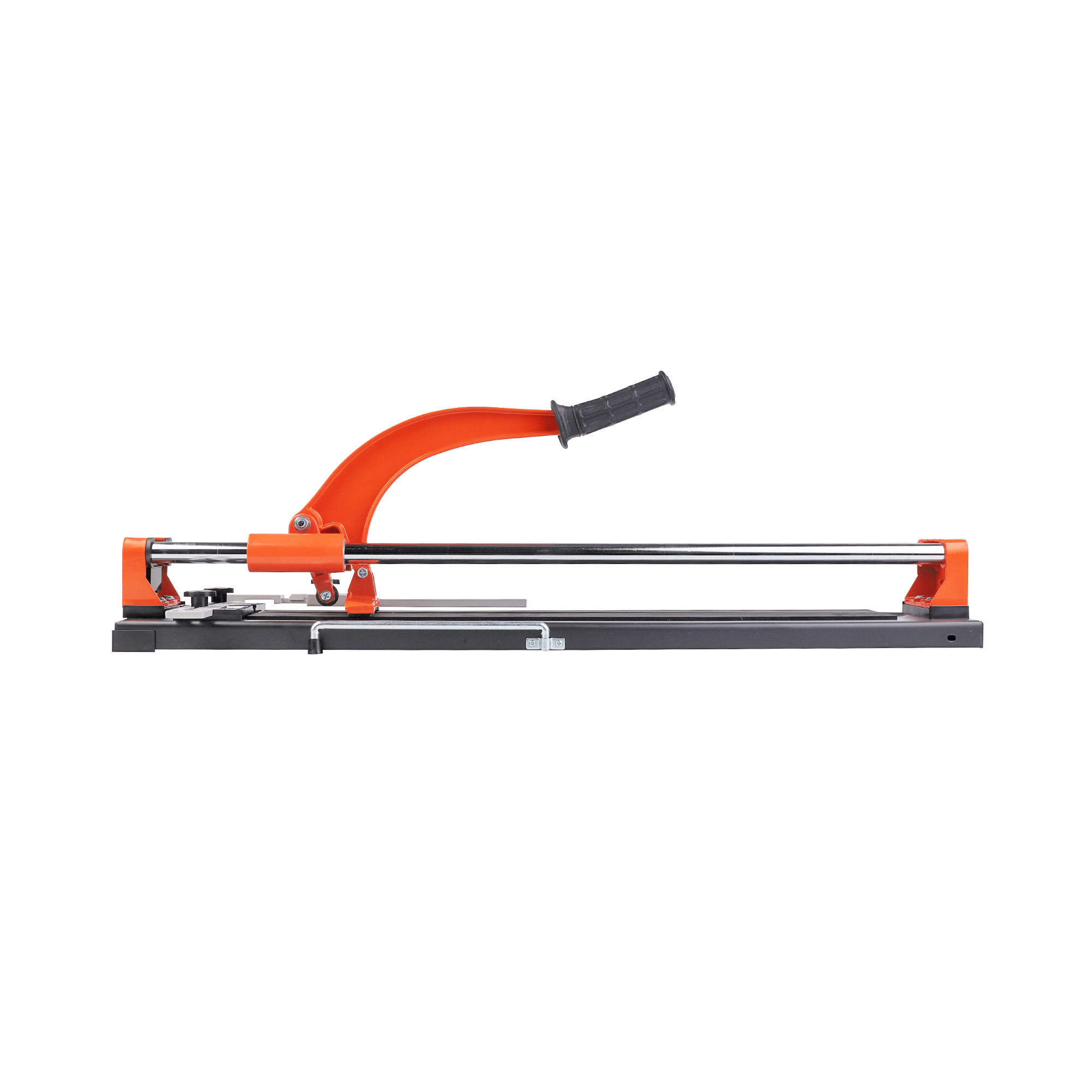 Модель имеет линейку-угольник для резки плитки под углом 30-45-60°, регулировки размера, дополнительной фиксации отрезаемой заготовки и точного положения плитки.