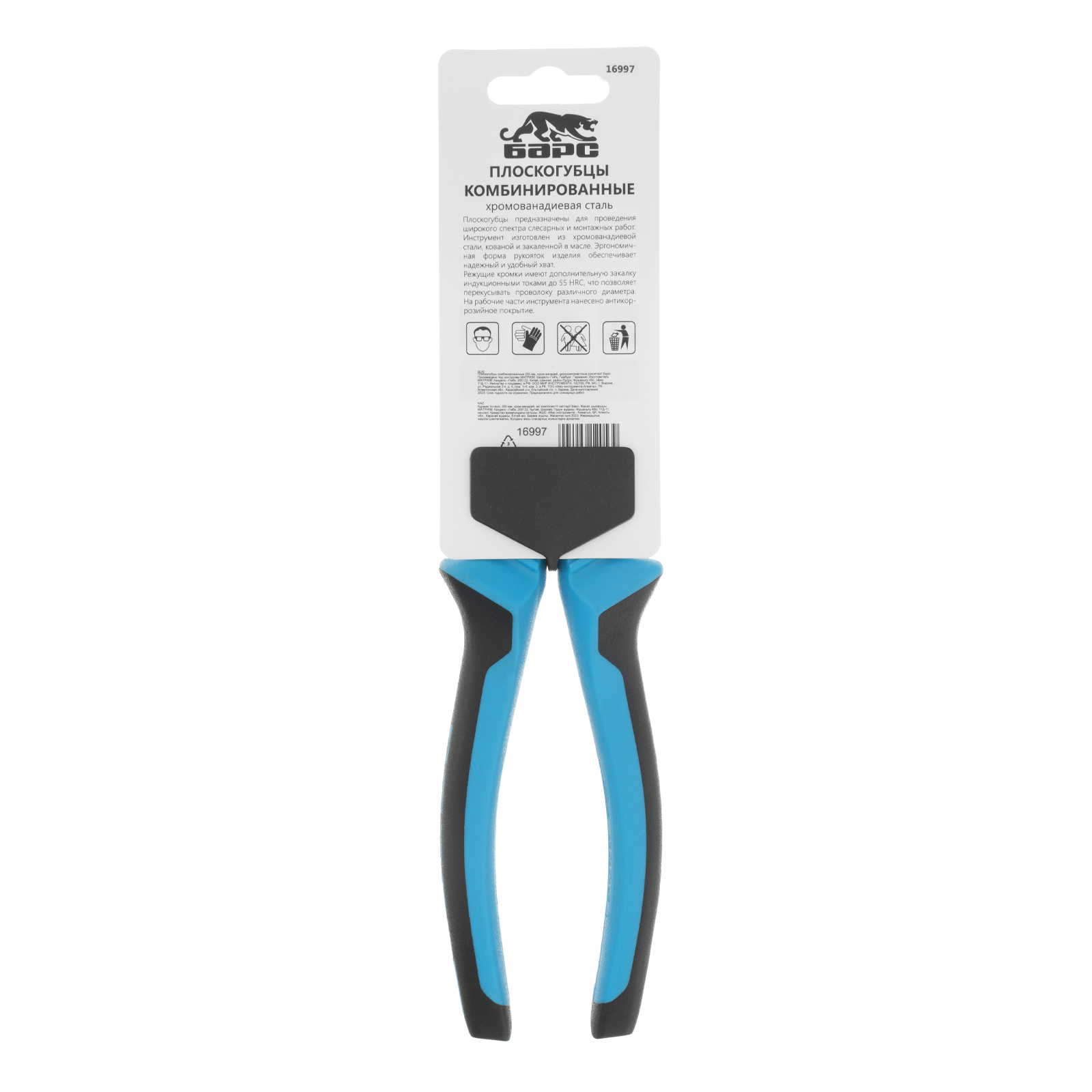 Плоскогубцы комбинированные 180 мм, хром-ванадий, двухкомпонентные рукоятки Барс