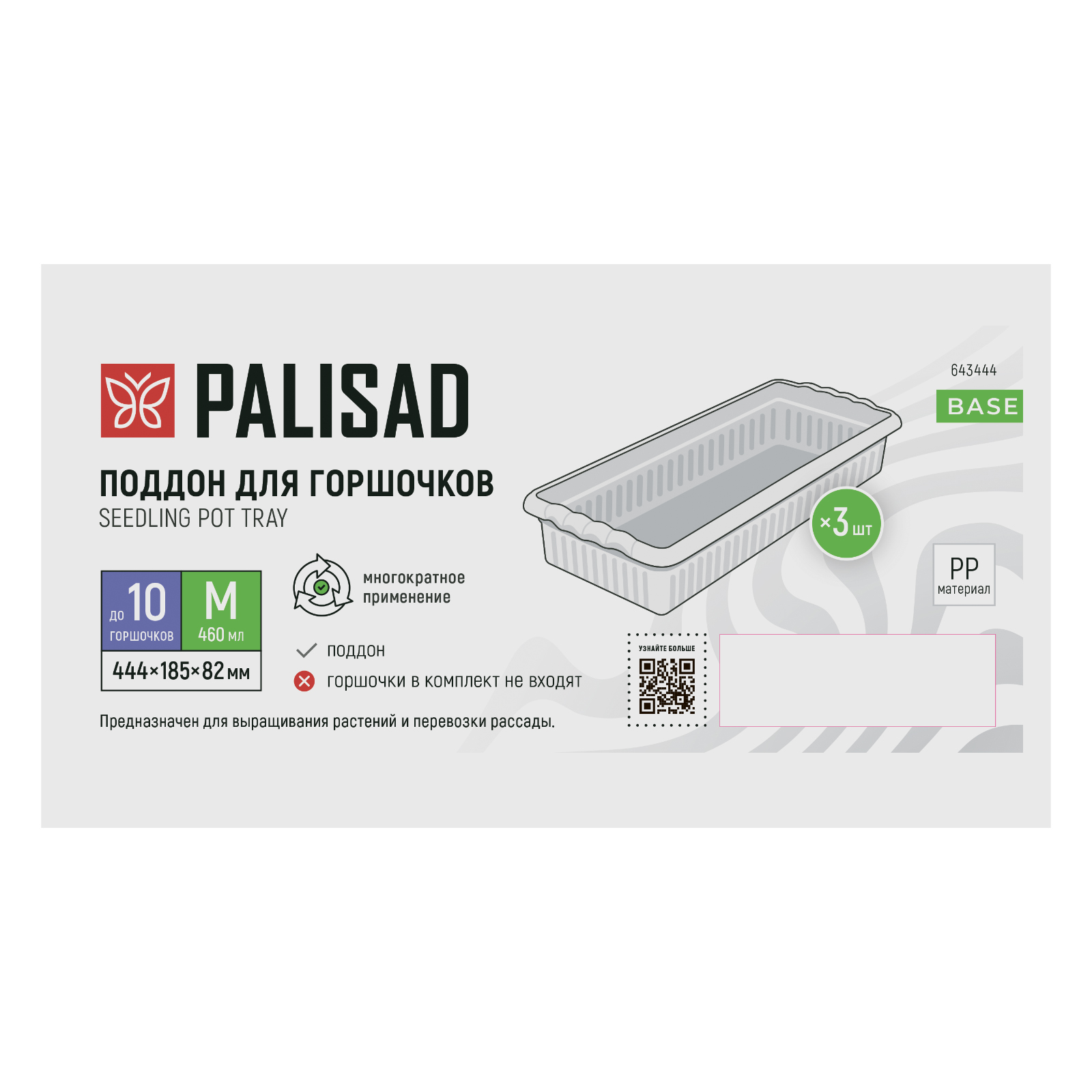 Поддон для рассады 444х185х82 мм, пластиковый, 3 шт, под 10 горшочков 460 мл. Palisad