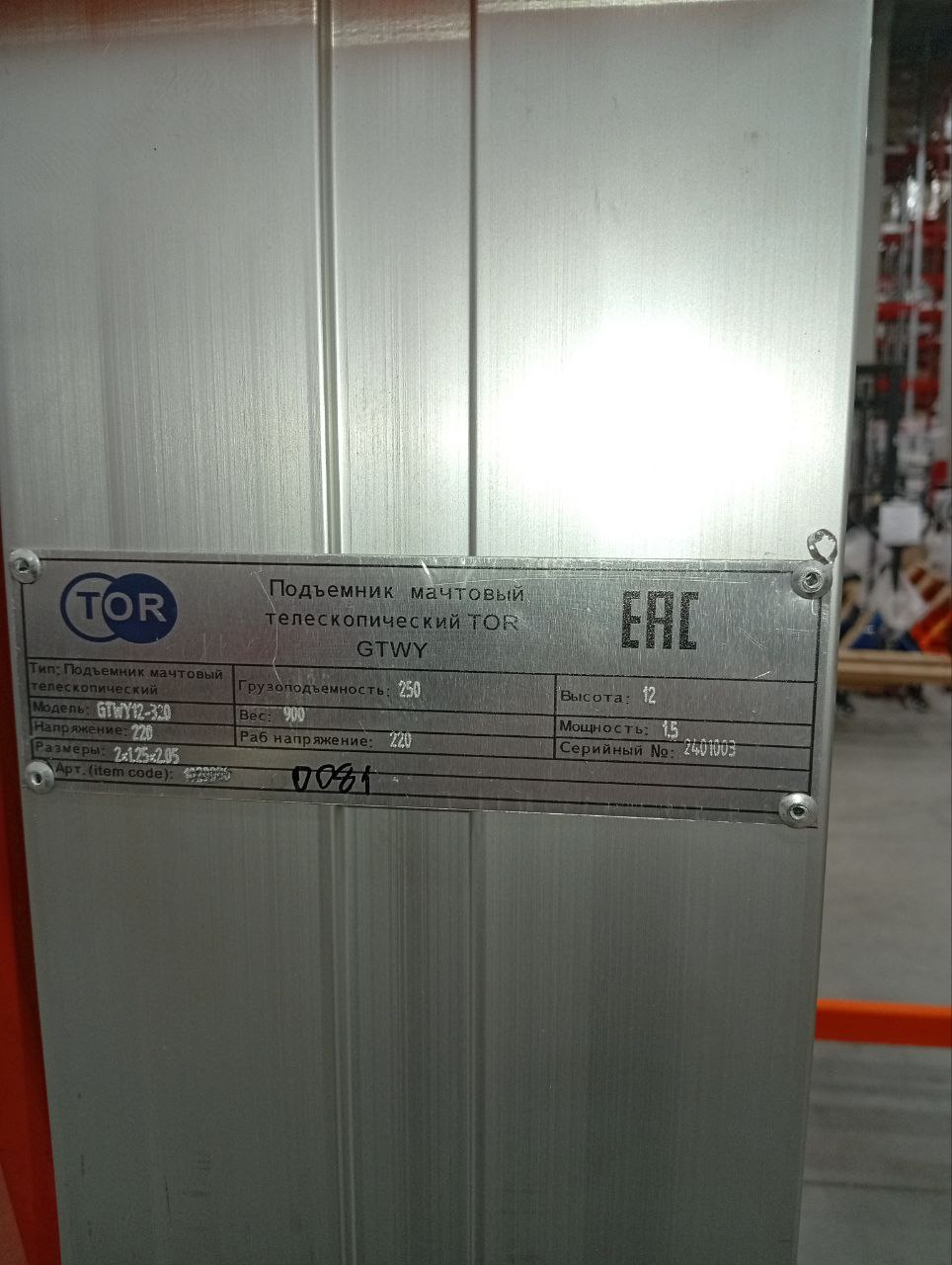Подъемник мачтовый аккумуляторный 250 кг 12/14 м TOR GTWY12-320 DC 3-мачтовый