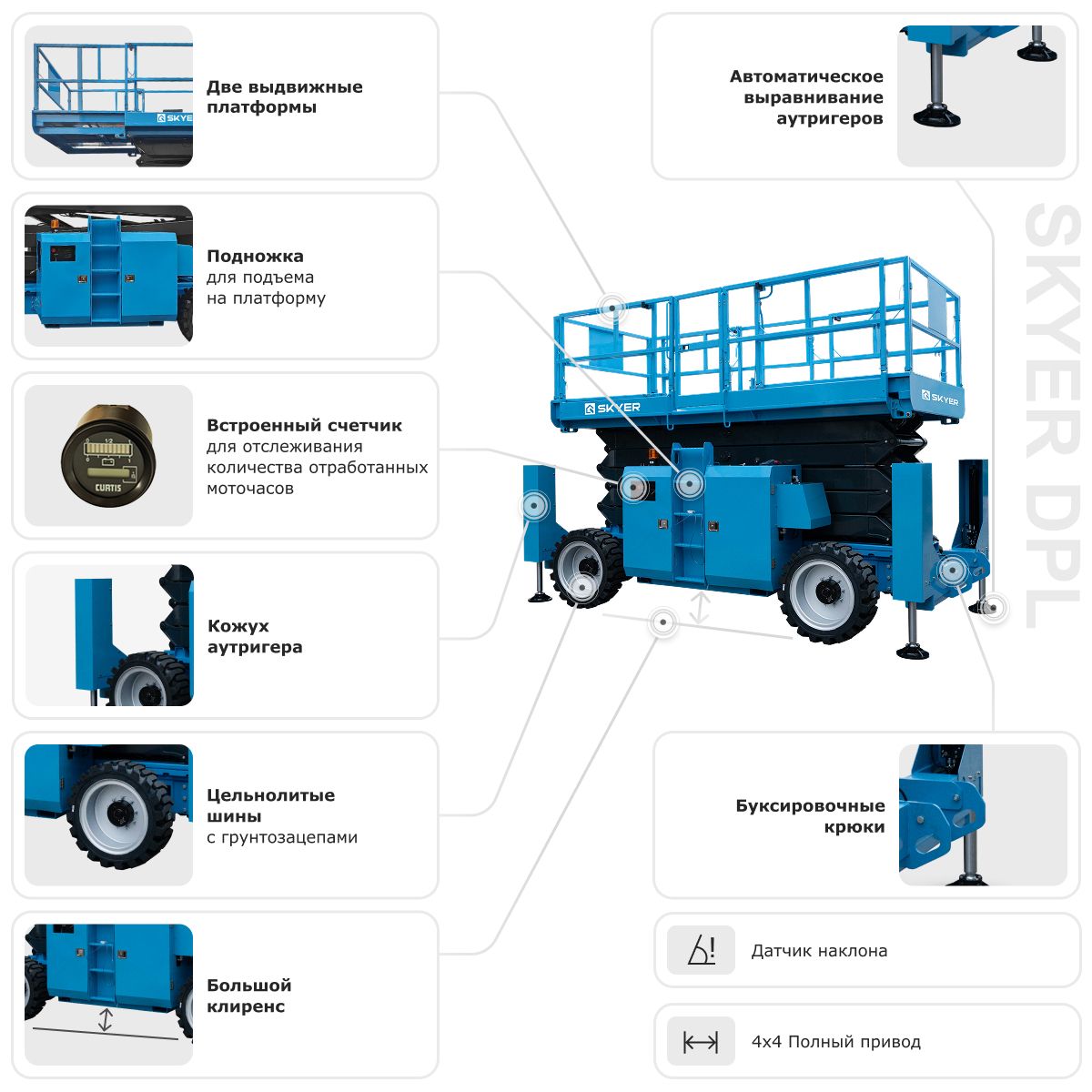 SKYER DPL1568 — профессиональное решение для самых сложных и масштабных высотных работ, где нужны максимальная грузоподъемность и автономность.