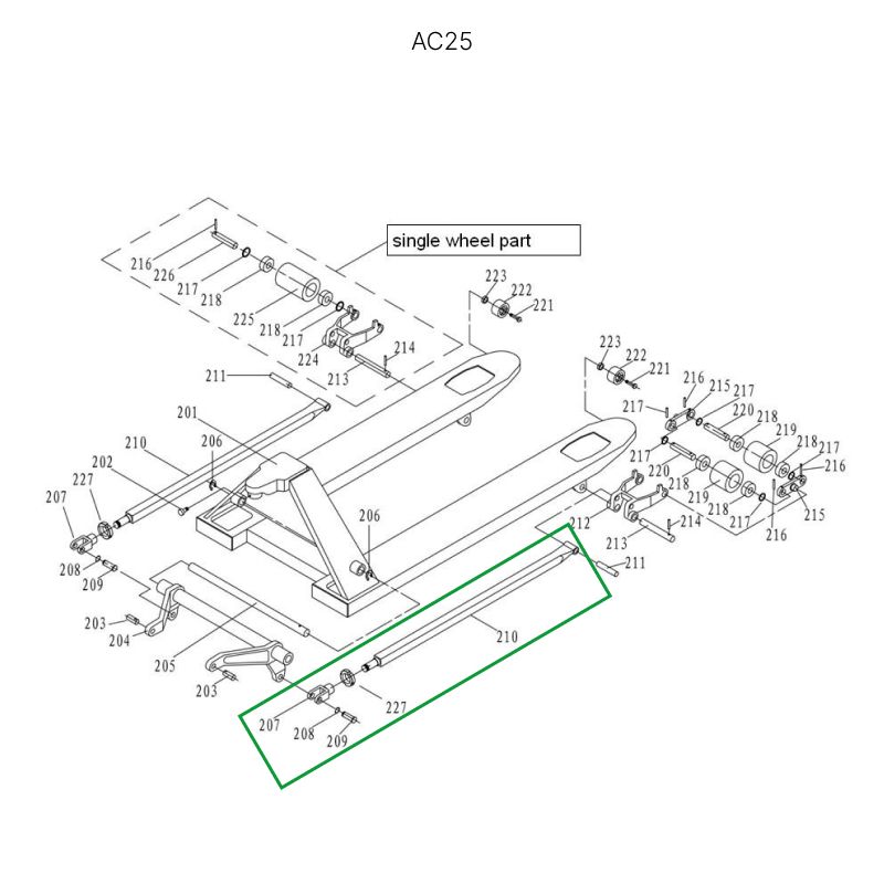 Подвильная тяга для гидравлических тележек DF25. Длина 905 мм.