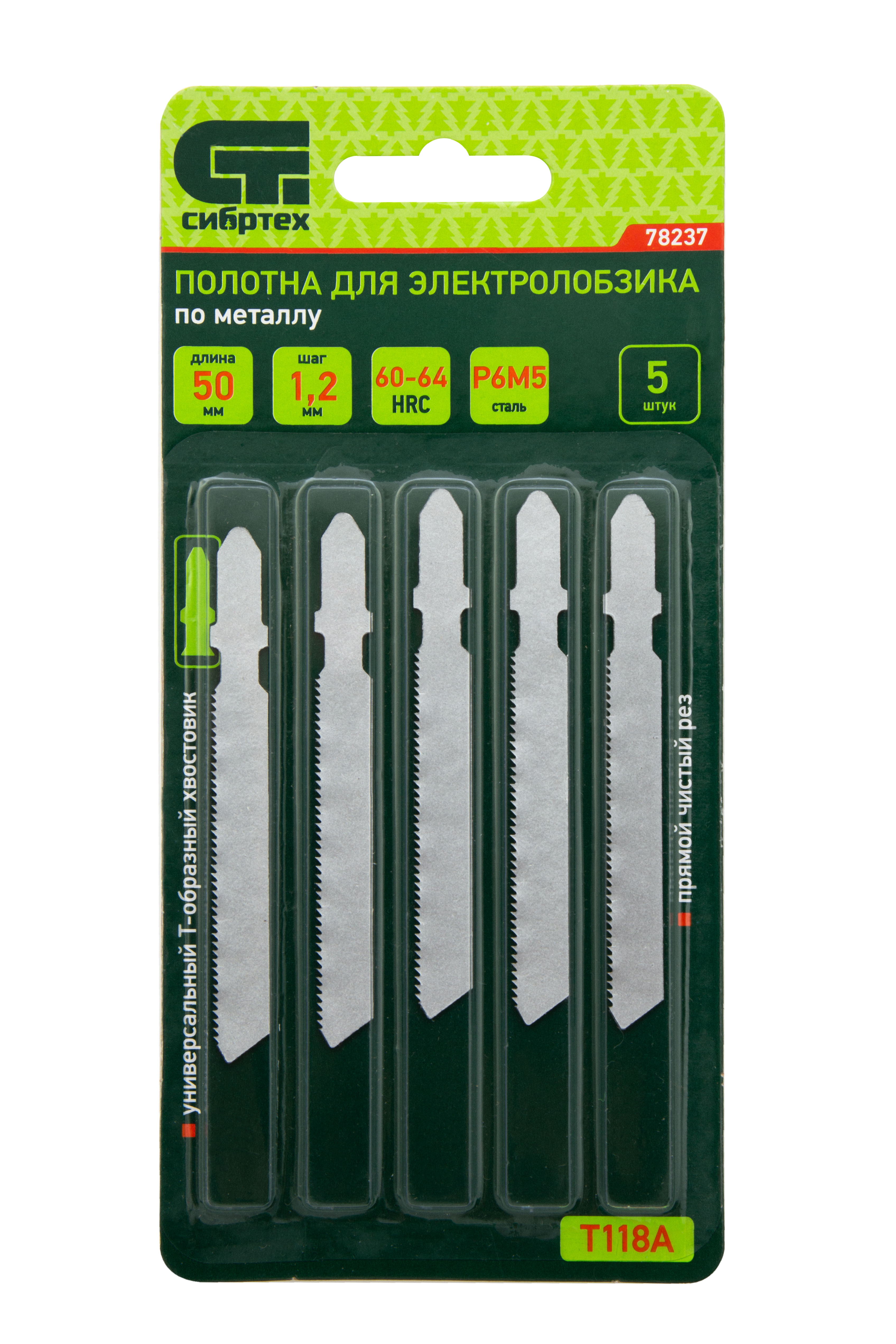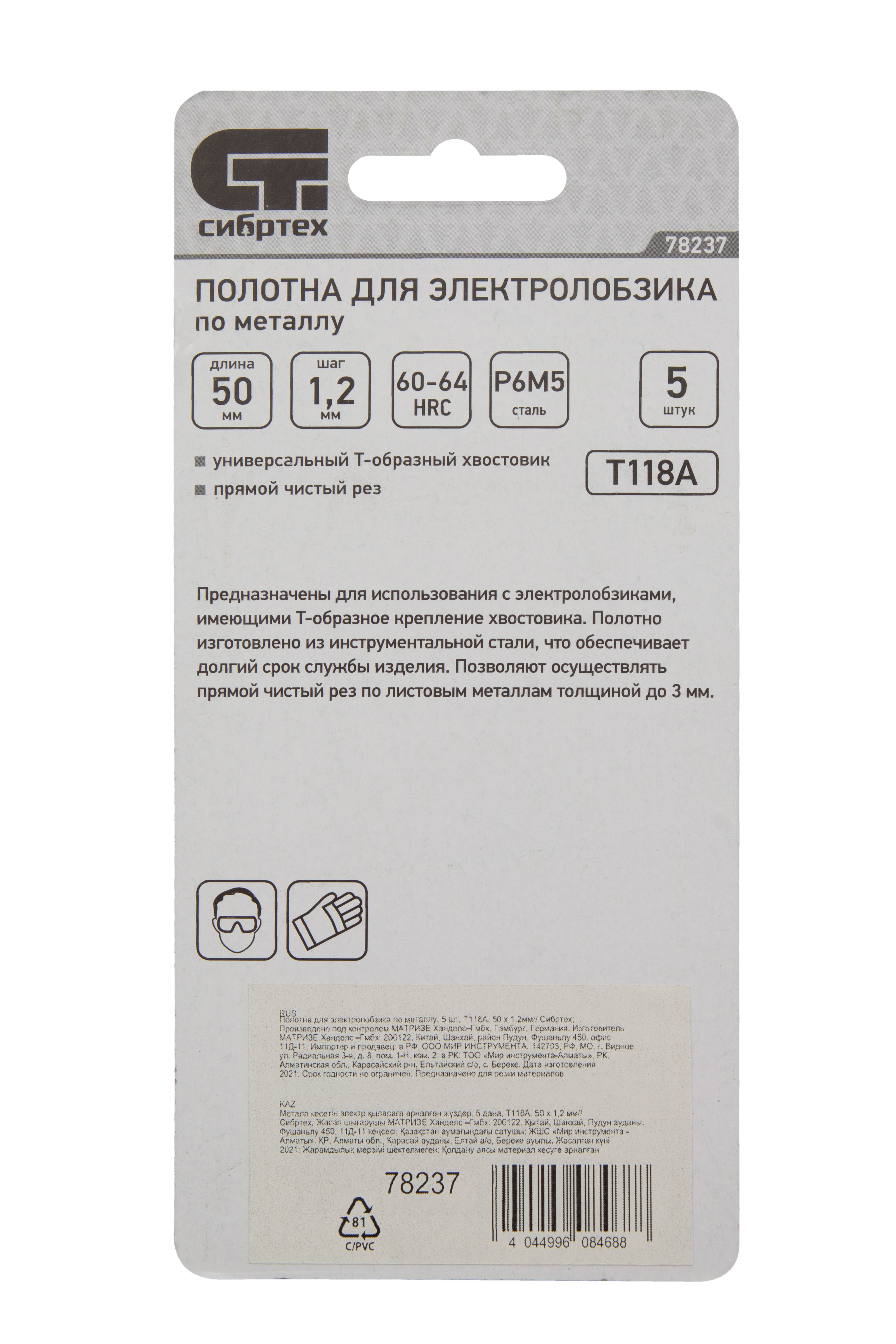 Полотна для электролобзика по металлу, 5 шт, T118A, 50 х 1.2 мм Сибртех