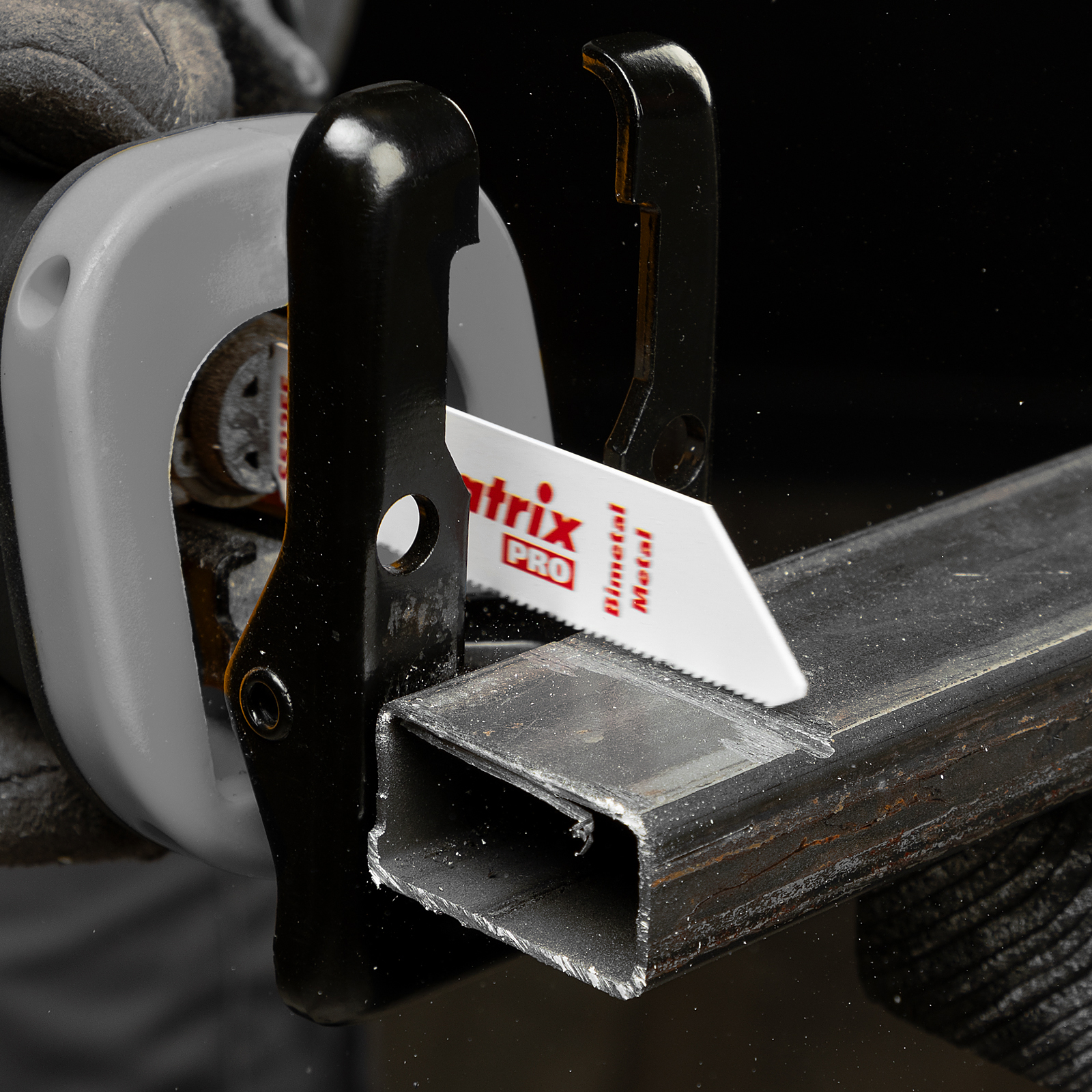 Полотна по металлу для сабельной пилы S522EF Matrix PRO 782008 с рабочей длиной 75 мм и шагом зубьев 1,4 мм, биметаллические (Bimetal), — комплект из 2 шт., предназначенных для распила профилированного алюминия и листового металла толщиной от 1,5 до 4 мм. Полотна имеют универсальные хвостовики и совместимы с большинством моделей сабельных пил. Обеспечивают гладкий и точный рез. Будут полезны на строительной площадке, в слесарной мастерской, а также в быту.