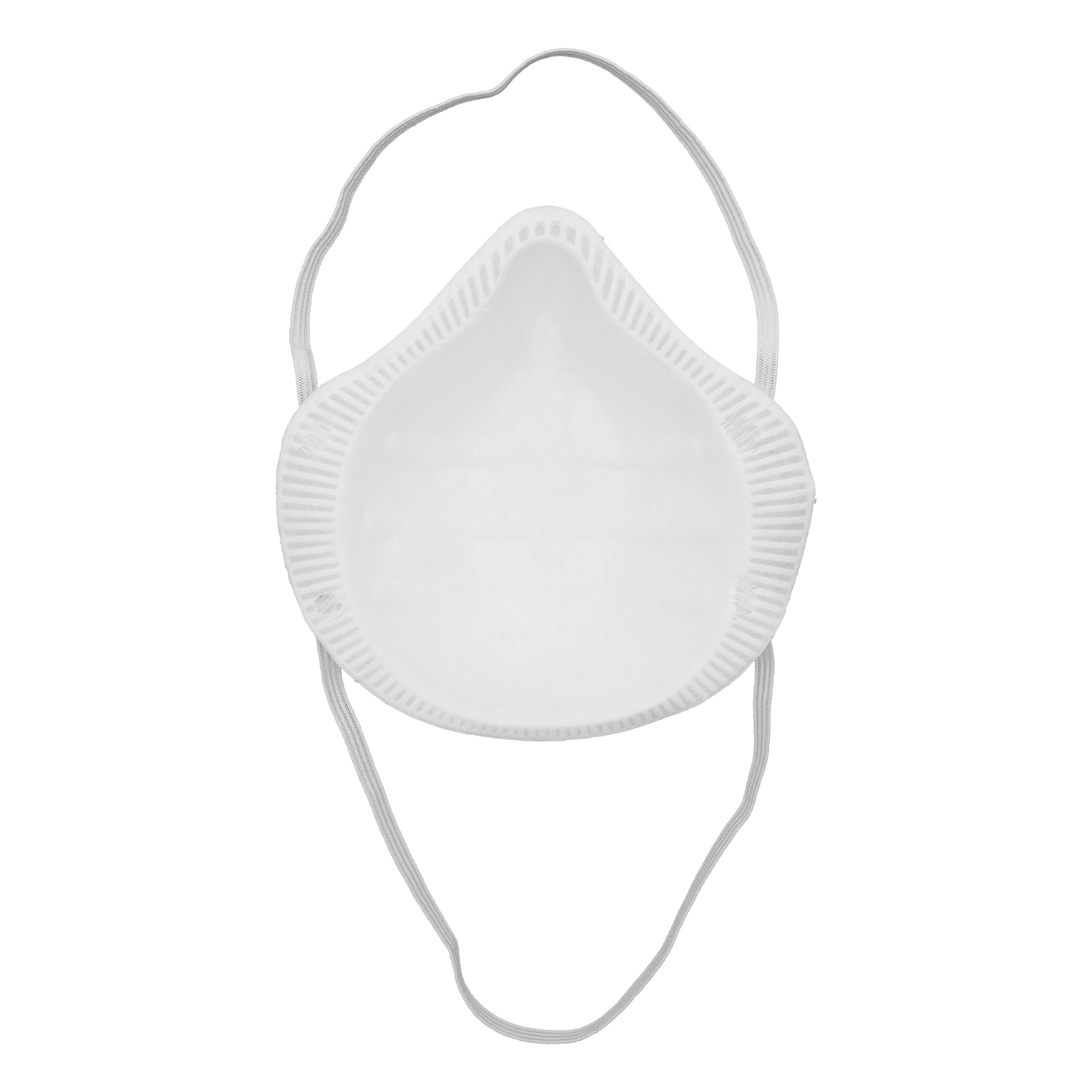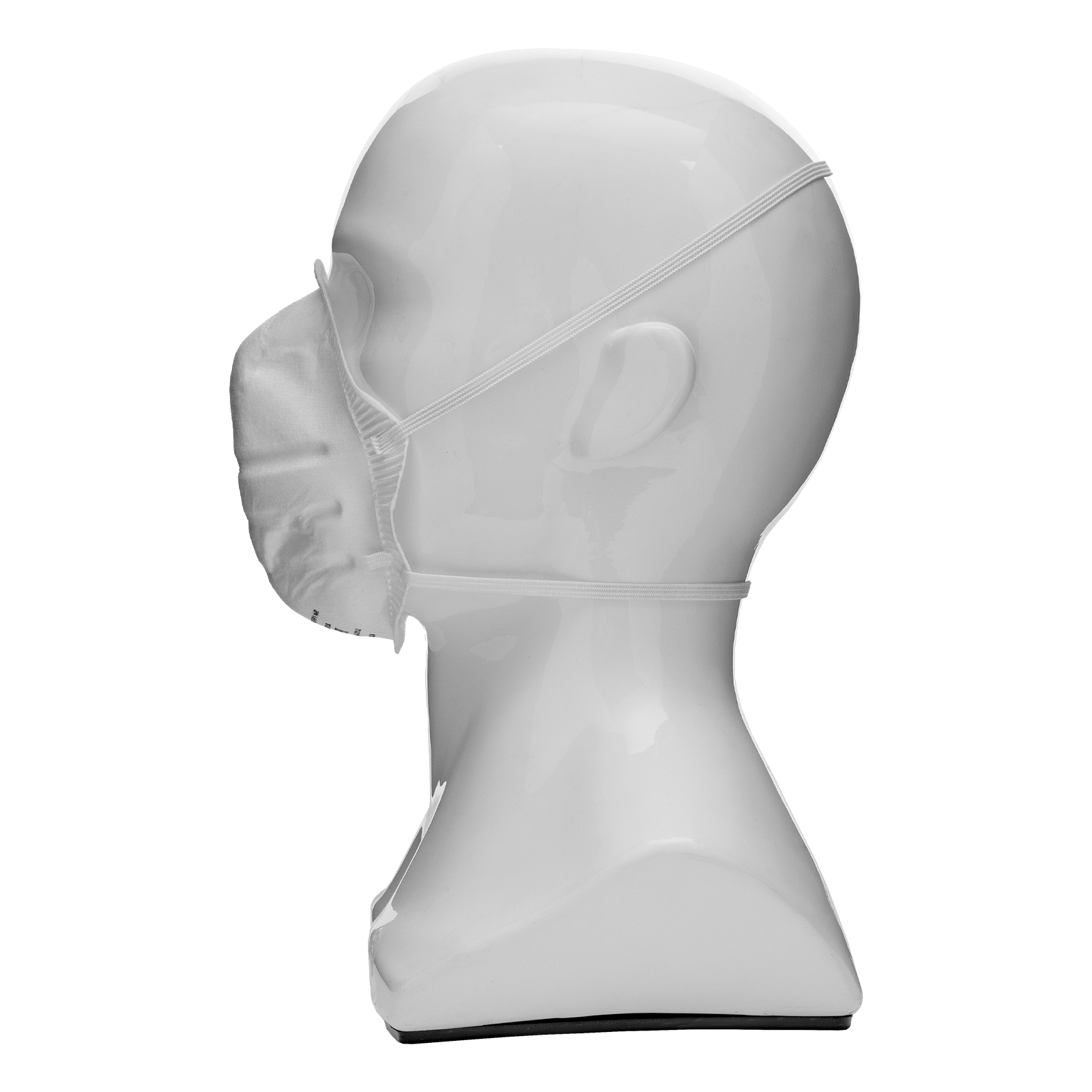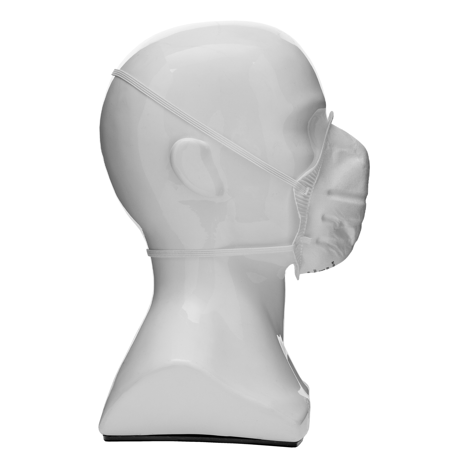 - Полумаска не спадает во время работы, т.к. имеет чашеобразную форму и эластичные резинки оголовья для надежной посадке на любом лице.