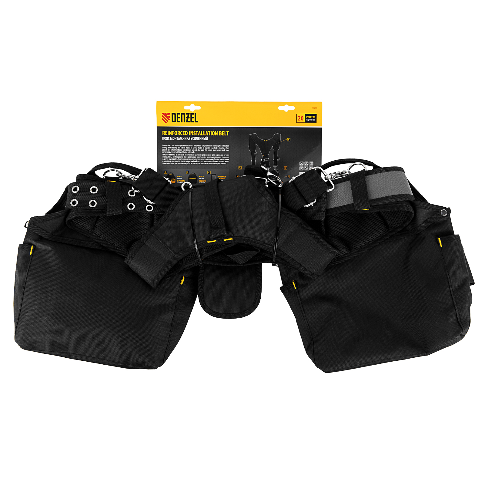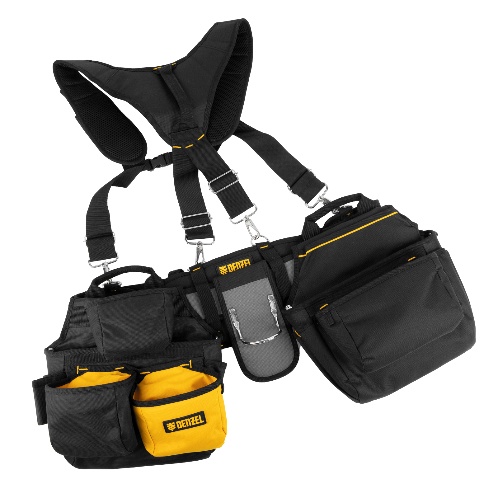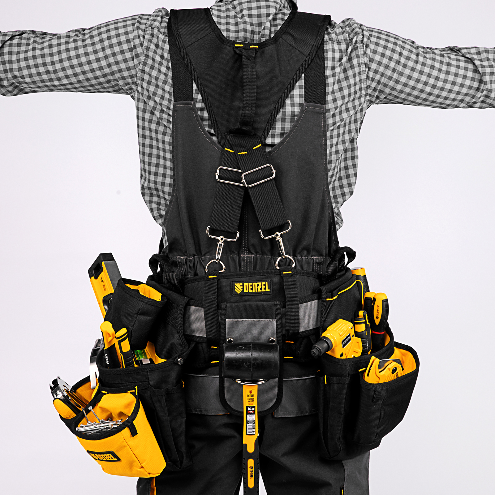 Пояс монтажника усиленный, с лямками, сумки поясные, держатель для молотка Denzel
