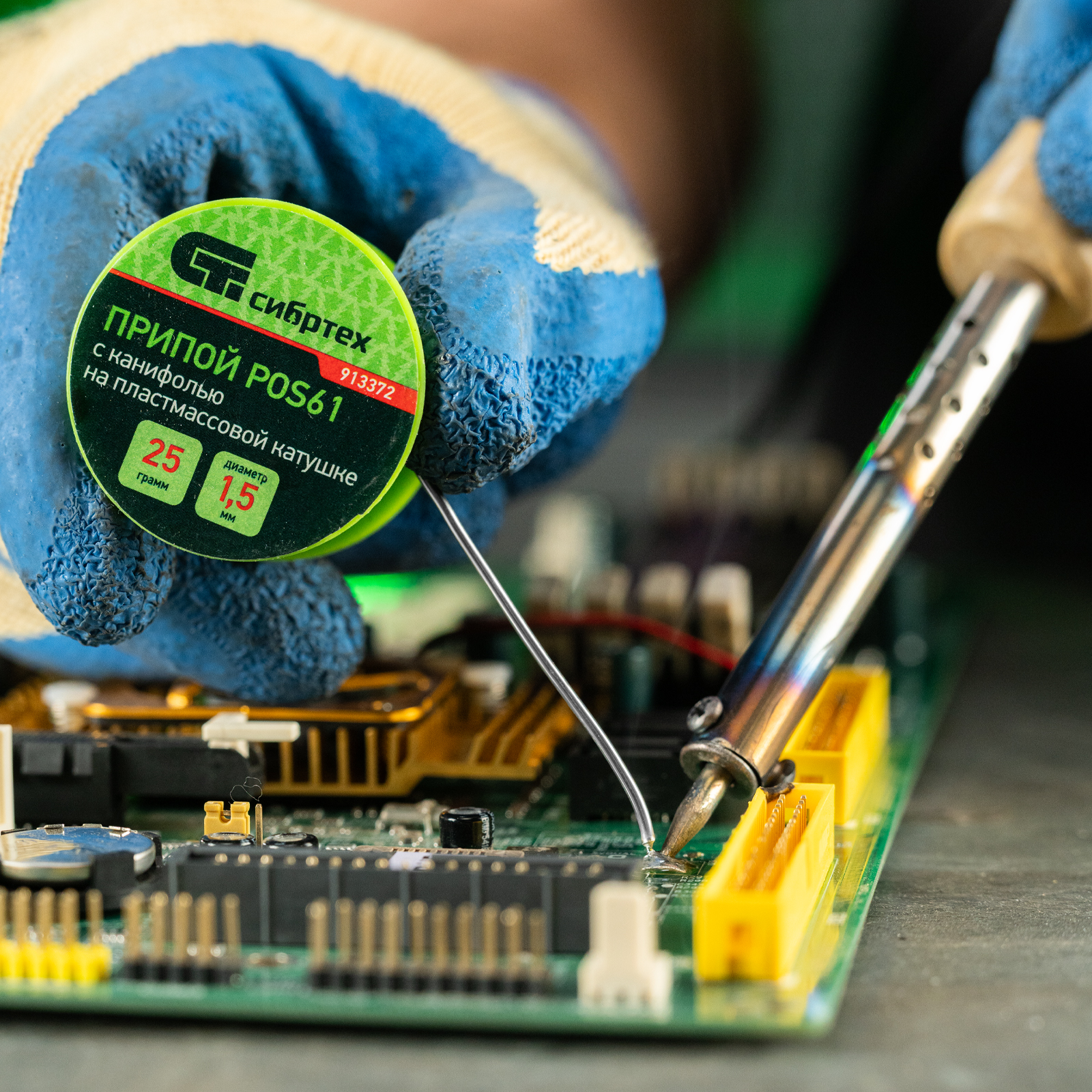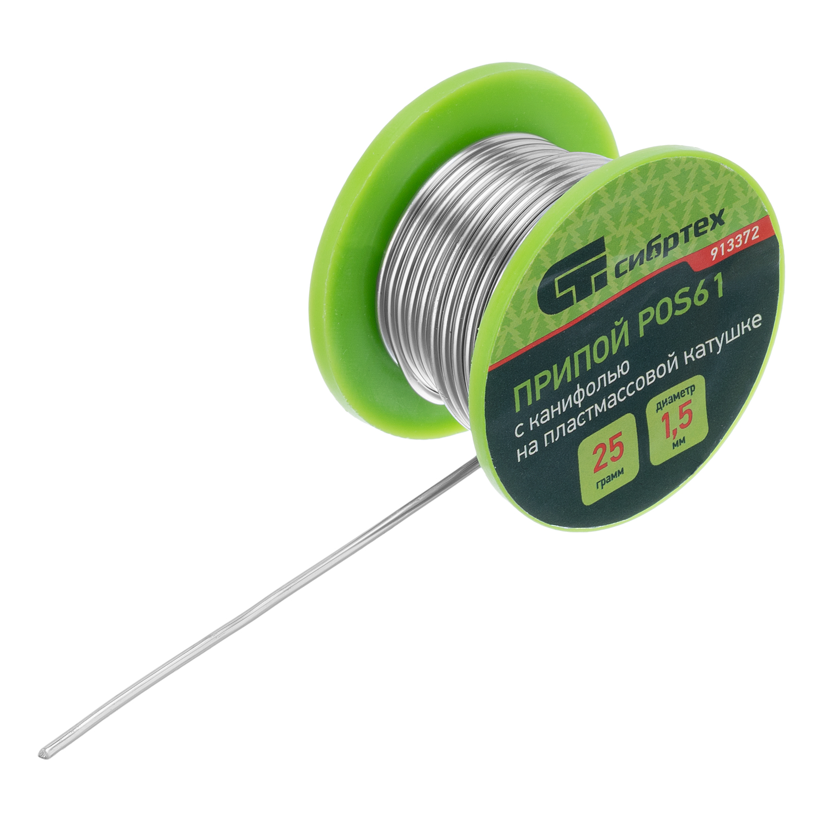 Припой с канифолью, D 1.5 мм, 25 г, POS61, на пластмассовой катушке Сибртех