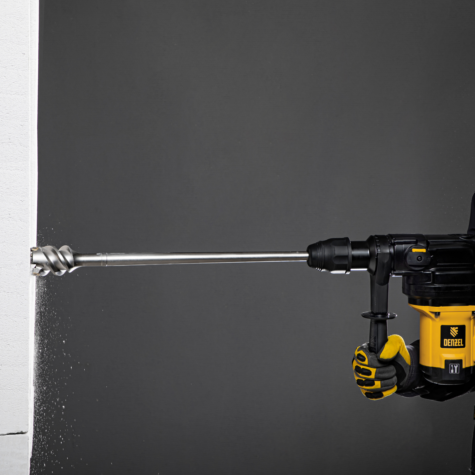 - Эффективная работа — особая конструкция рабочей головки позволяет проходить армированный бетон без риска деформации бура.