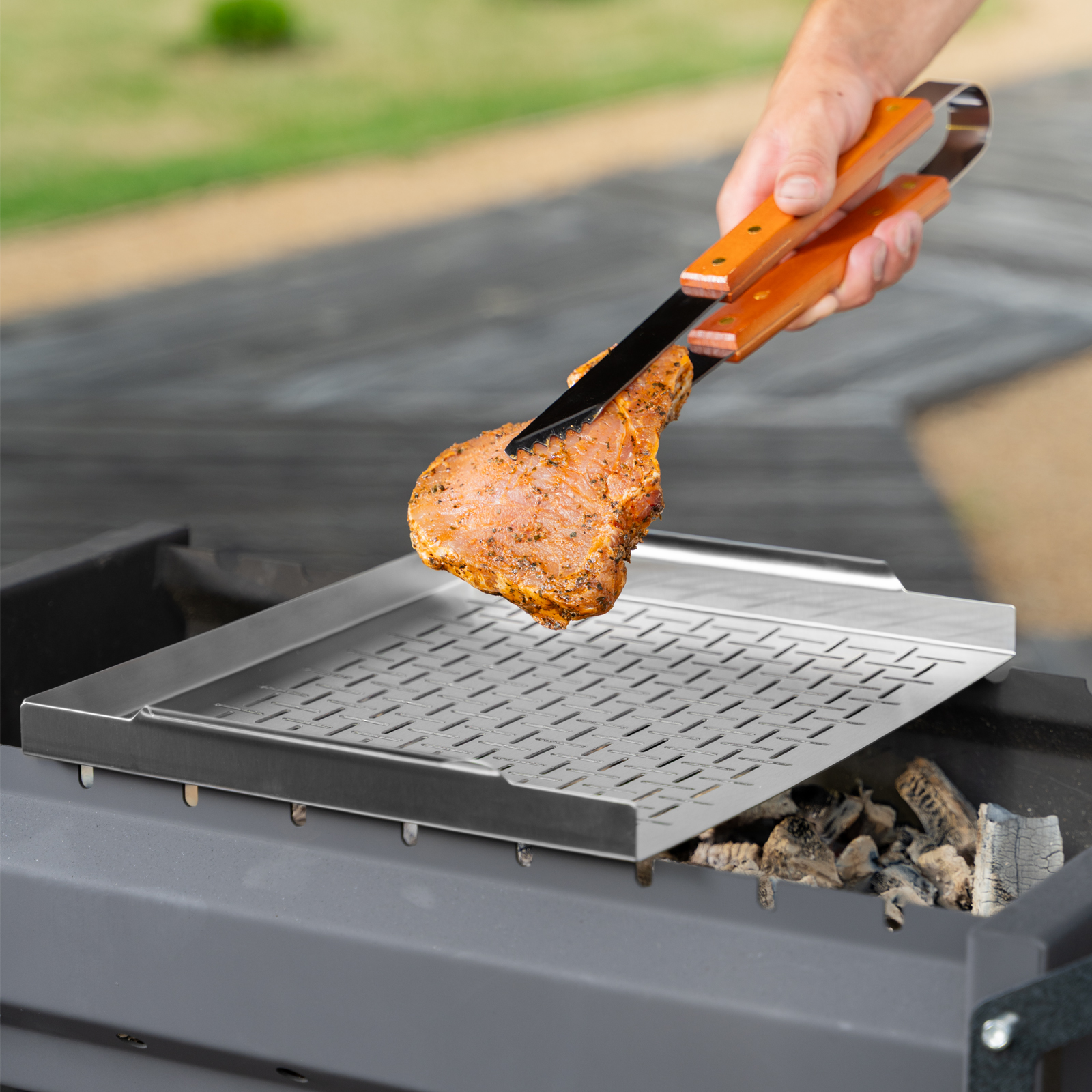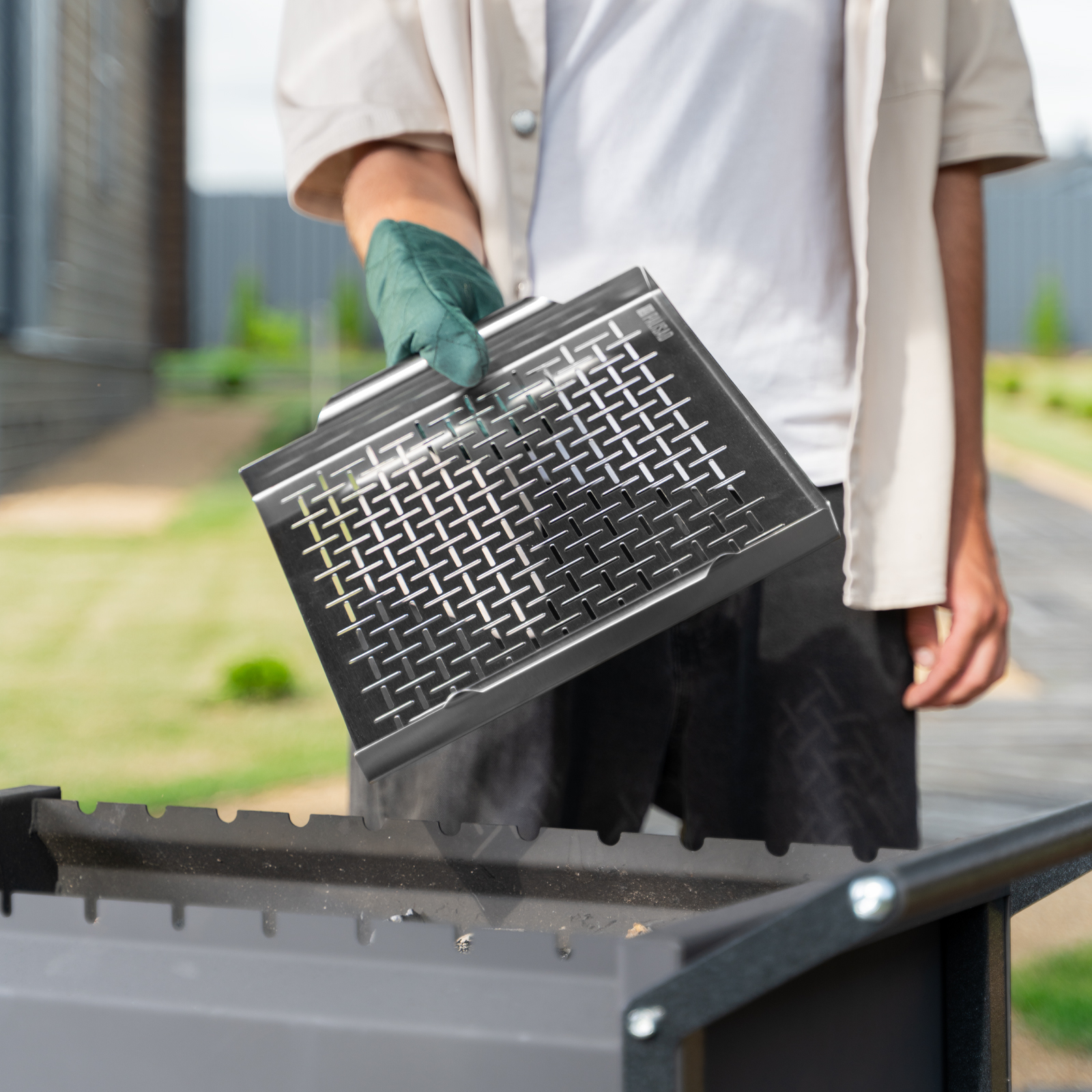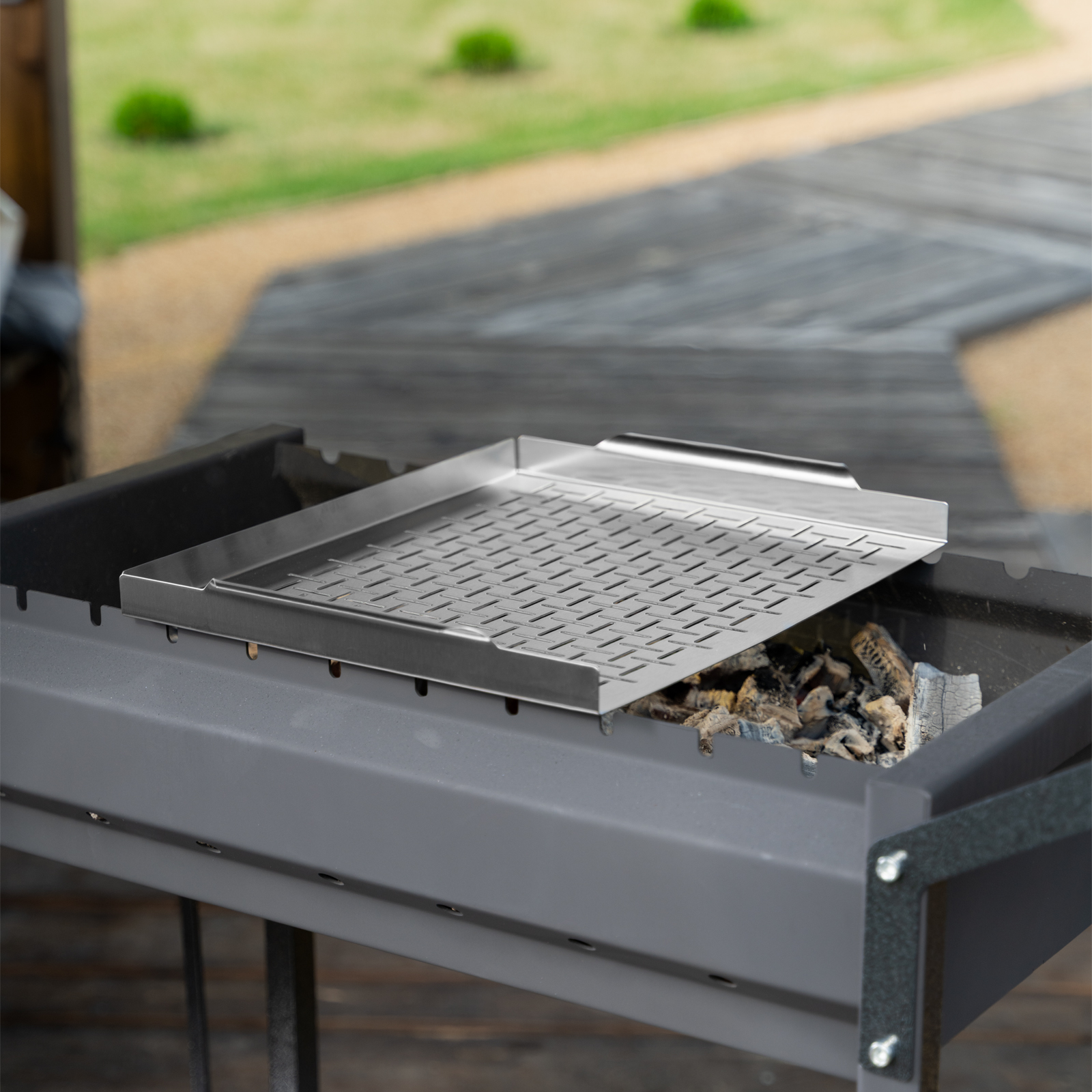 - Универсальность — противень подходит для всех типов грилей и барбекю, что позволяет использовать его на открытом воздухе и в домашних условиях.