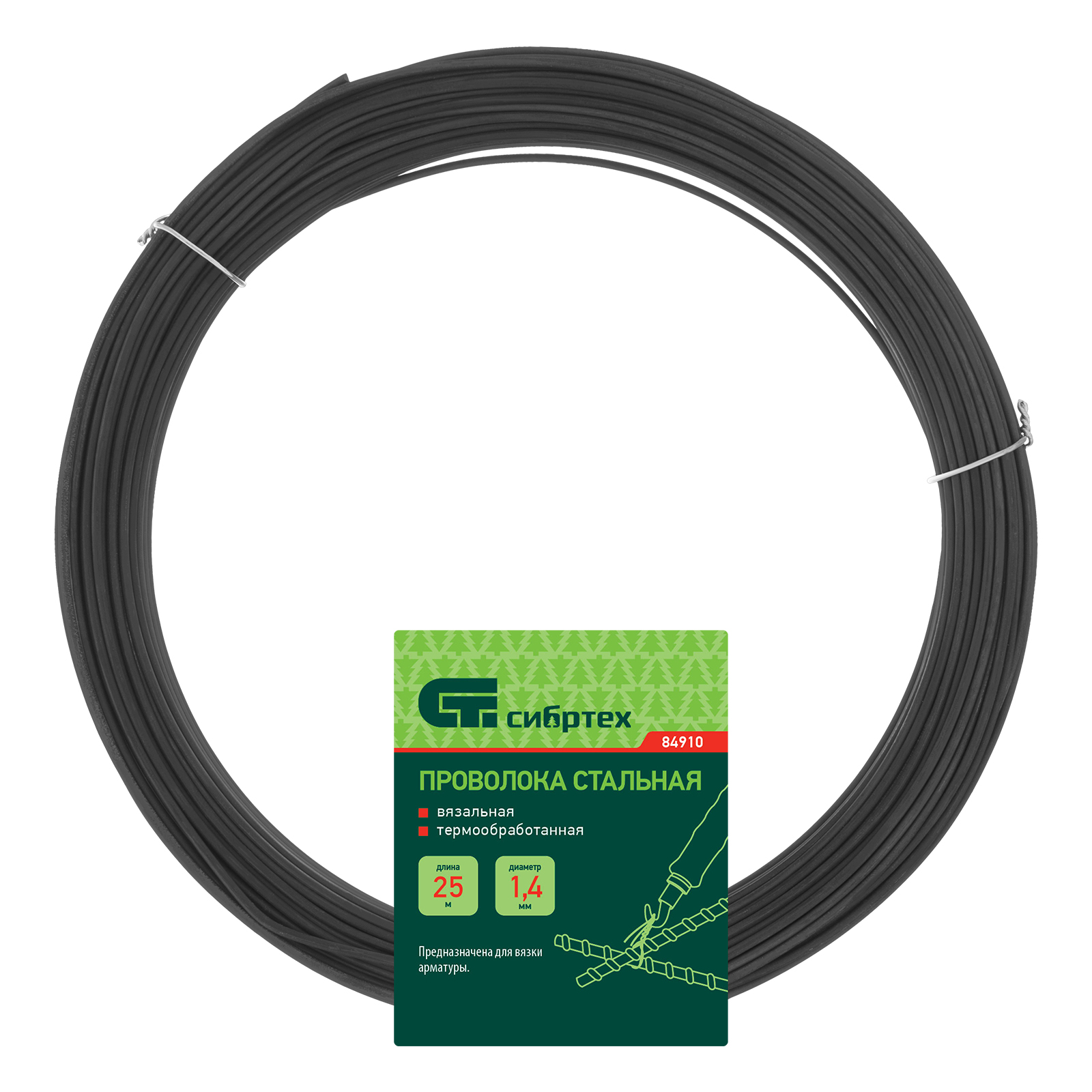 Проволока стальная 25 м, вязальная, термообработанная 1.4 мм Сибртех в Москве