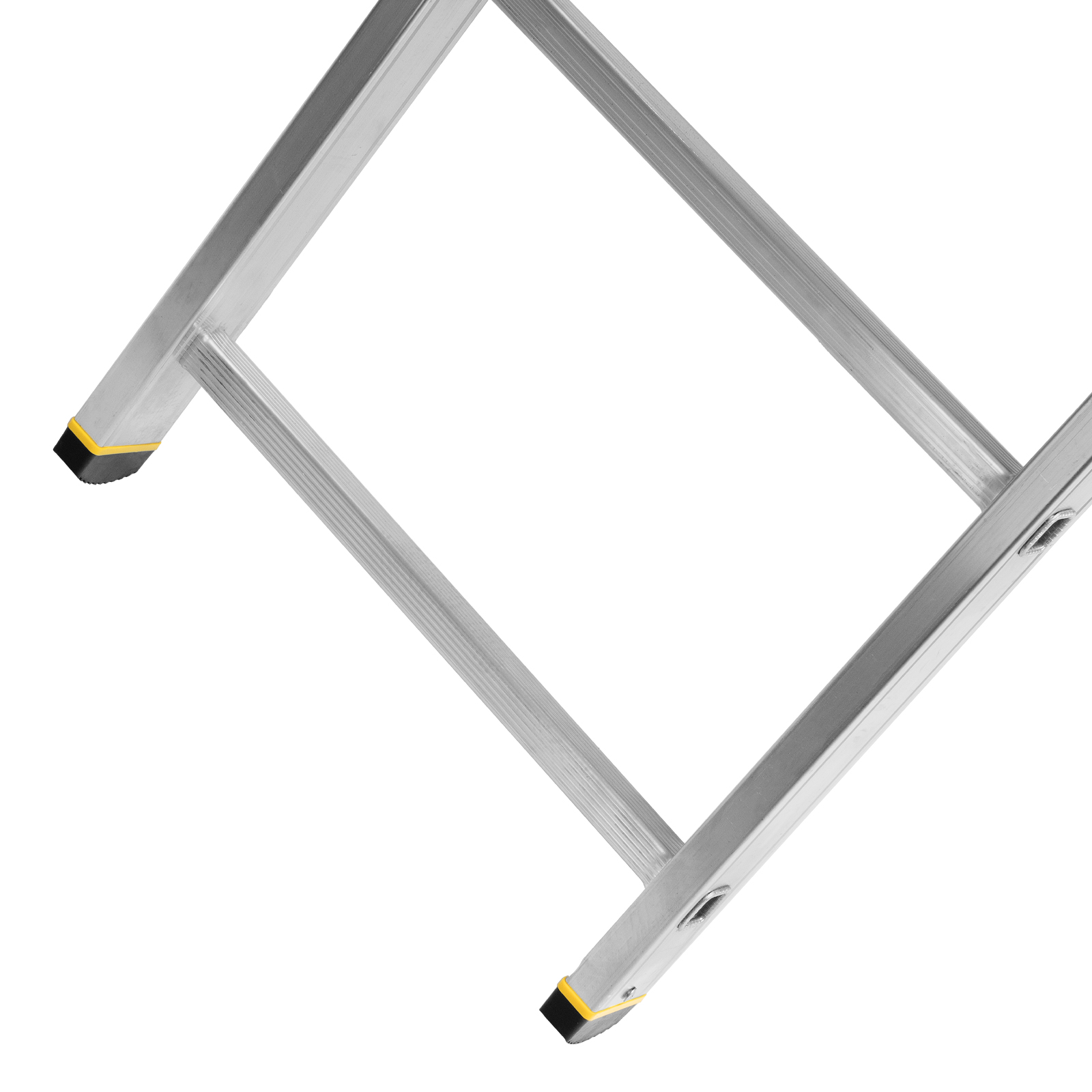 - Увеличенная прочность — стойки усилены в местах наибольшей нагрузки, многократная развальцовка обеспечивает надежное соединение ступеней со стойками.
