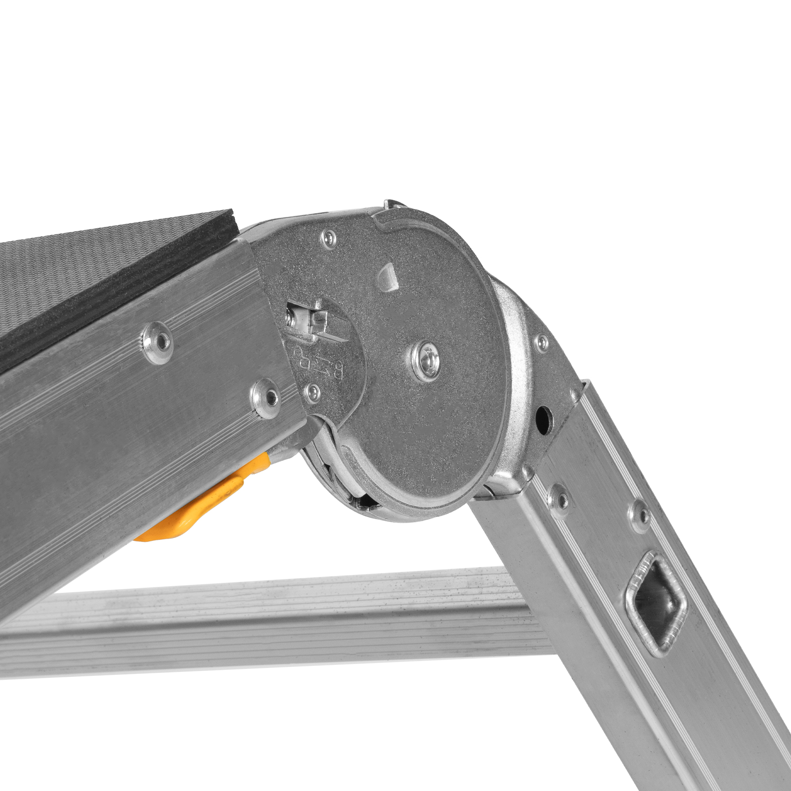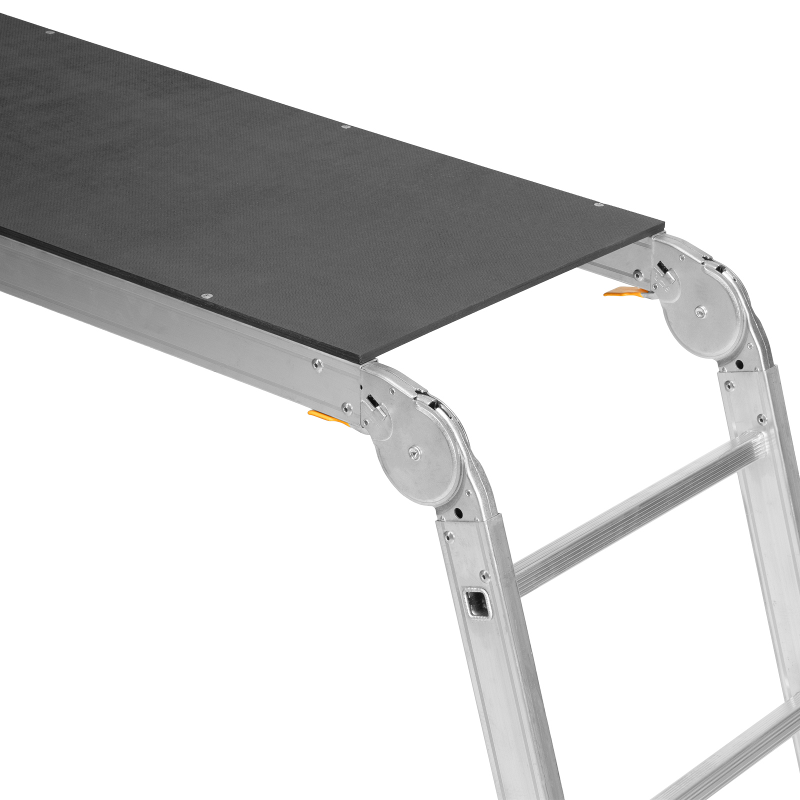 - Простая установка — подмости быстро устанавливаются и складываются, шарнирные замки легко регулируются и автоматически фиксируются.