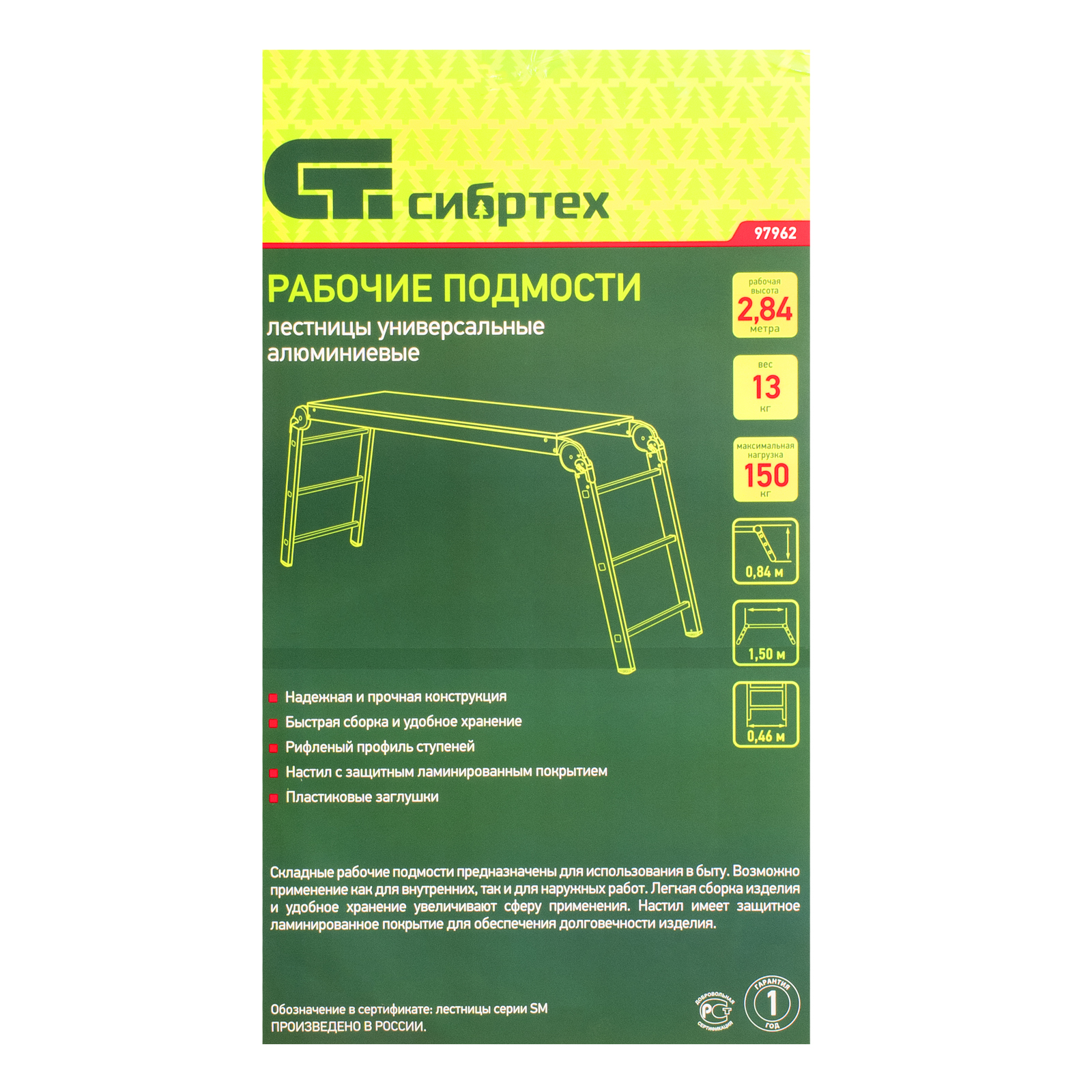 Рабочие подмости 97962, количество ступеней 3 х 6 х 3, используют для размещения инструментов и материалов, а также для работы на высоте. Рассчитаны на нагрузку до 150 кг, используются во время строительства и ремонта.