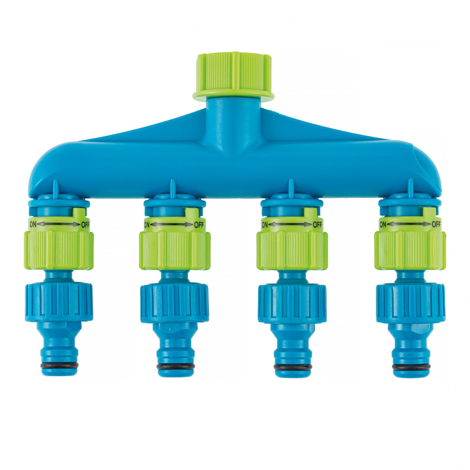 Четырехканальный пластиковый разветвитель Palisad LUXE 66428 позволяет разделить водоразборную магистраль на 4 линии, значительно увеличив площадь полива. Монтируется на кран или отвод с внешней резьбой 3/4 дюйма. Пригодится для организации системы полива на дачном участке.