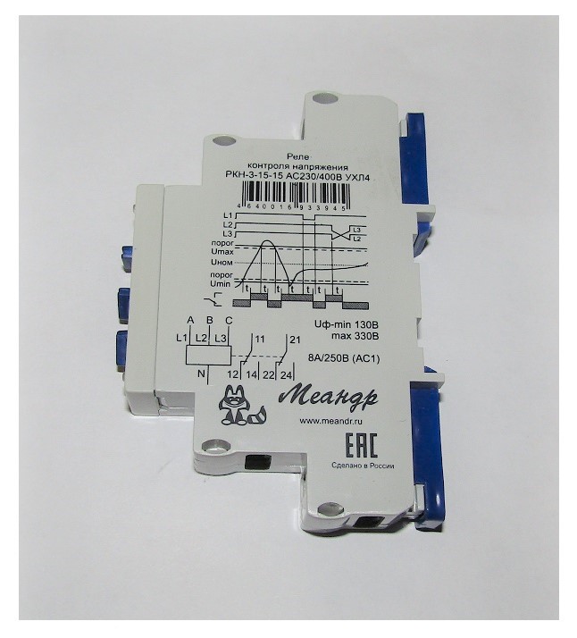 Реле контроля напряжения РКН-3-15-15 220В АС 3Р+N5A 2п
