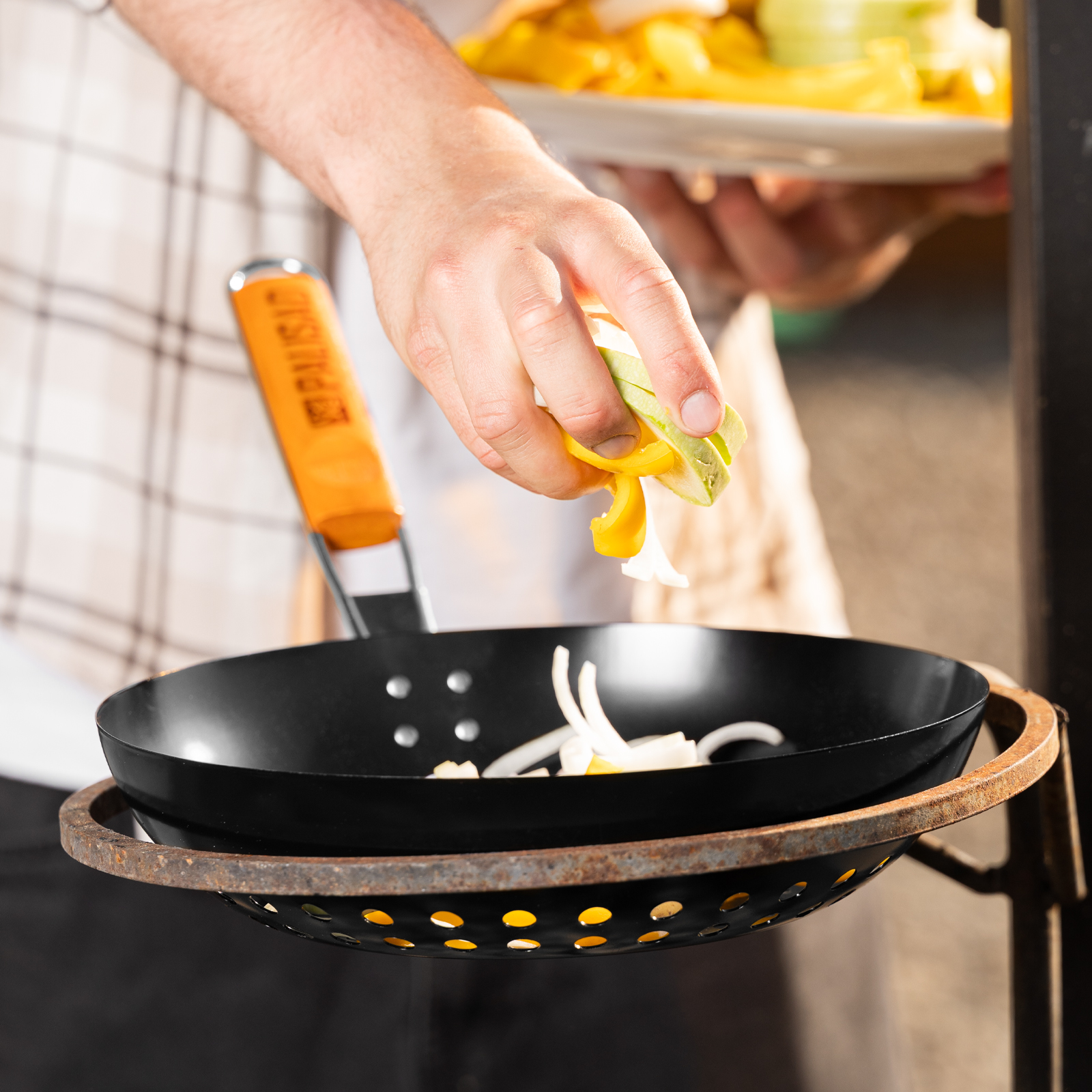 Решетка-жаровня Palisad Camping 69705 размером 490 x 280 x 65 мм позволяет приготовить на углях мелко нарезанные овощи и кусочки мяса, а также морепродукты. В большой жаровне помещается несколько порций еды на целую компанию.