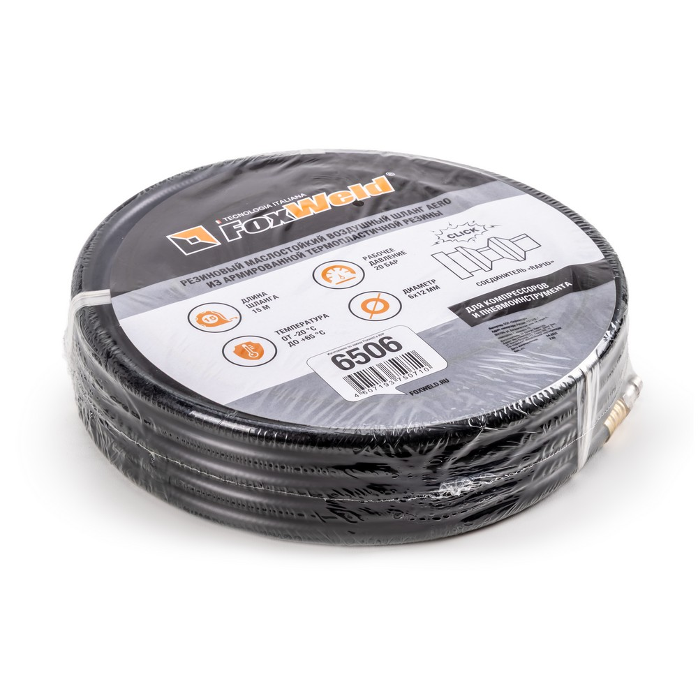 Резиновый маслостойкий воздушный шланг с фитингами Rapid, 20 бар, 12х6 мм, 15 м. AERO