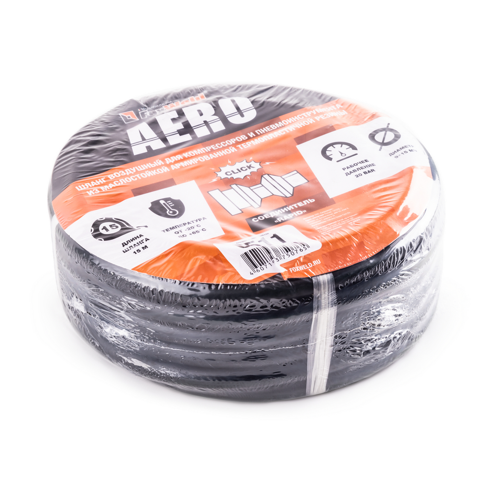 Резиновый маслостойкий воздушный шланг с фитингами Rapid, 20 бар, 15х9 мм, 15 м. AERO