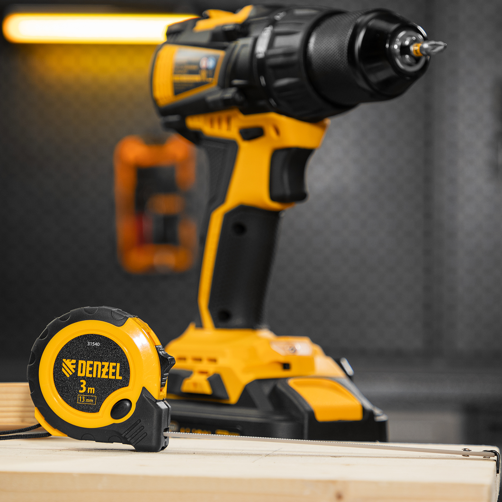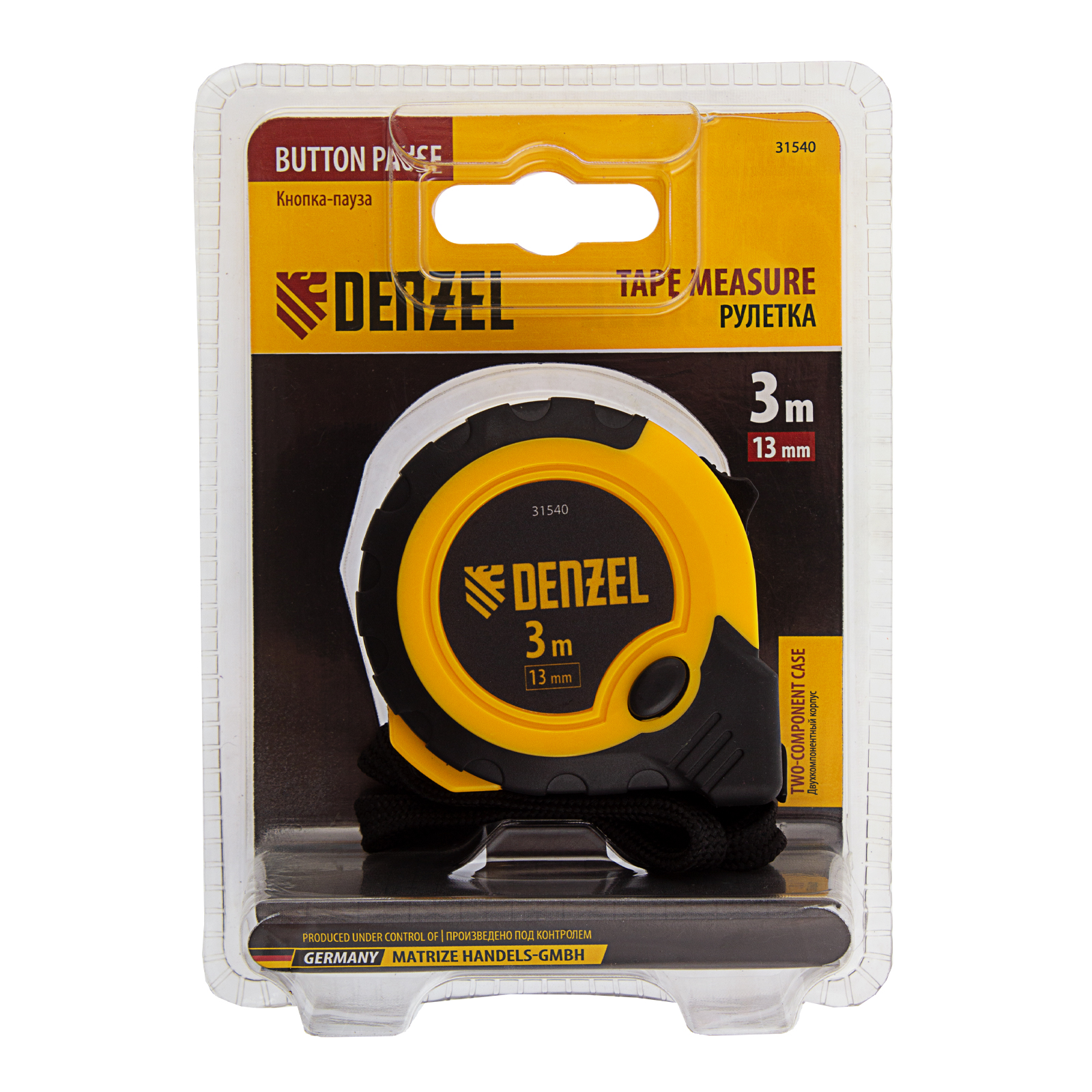 Рулетка 3м х 13мм, двухкомп. корпус, кнопка-пауза Denzel