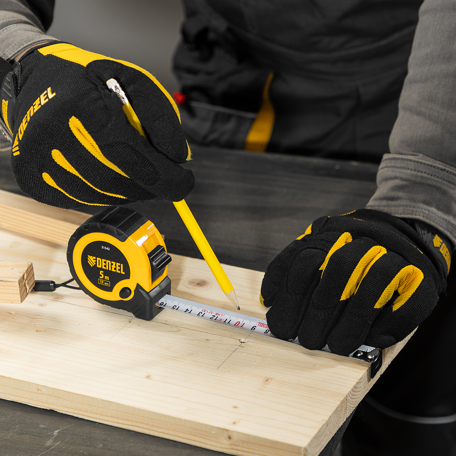Рулетка Denzel 31542 в двухкомпонентном корпусе, с кнопкой-паузой, с полотном шириной 19 мм и длиной 5 м, используется для измерения расстояний и размеров предметов. Стальная лента с эмалевым покрытием и защитной пластиной в месте крепления зацепа рассчитана на долгий срок службы. Рулетка будет полезна во время строительства и ремонта, а также пригодится в быту.