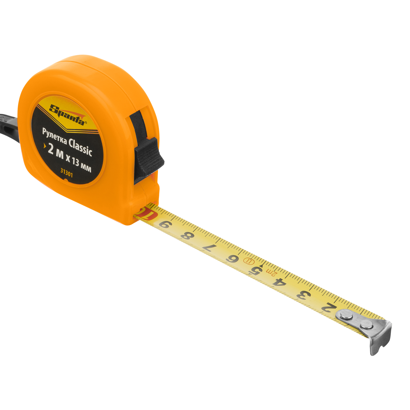 Рулетка Sparta «Classic» 31301 с полотном 2 м х 13 мм, в пластиковом корпусе, станет незаменимым помощником в хозяйстве при измерении длины и ширины деталей, заготовок, материалов, мебели и т.д. Она рассчитана на бытовое использование. За счет специального окошка на зацепе рулетка подходит для применения в качестве циркуля.
