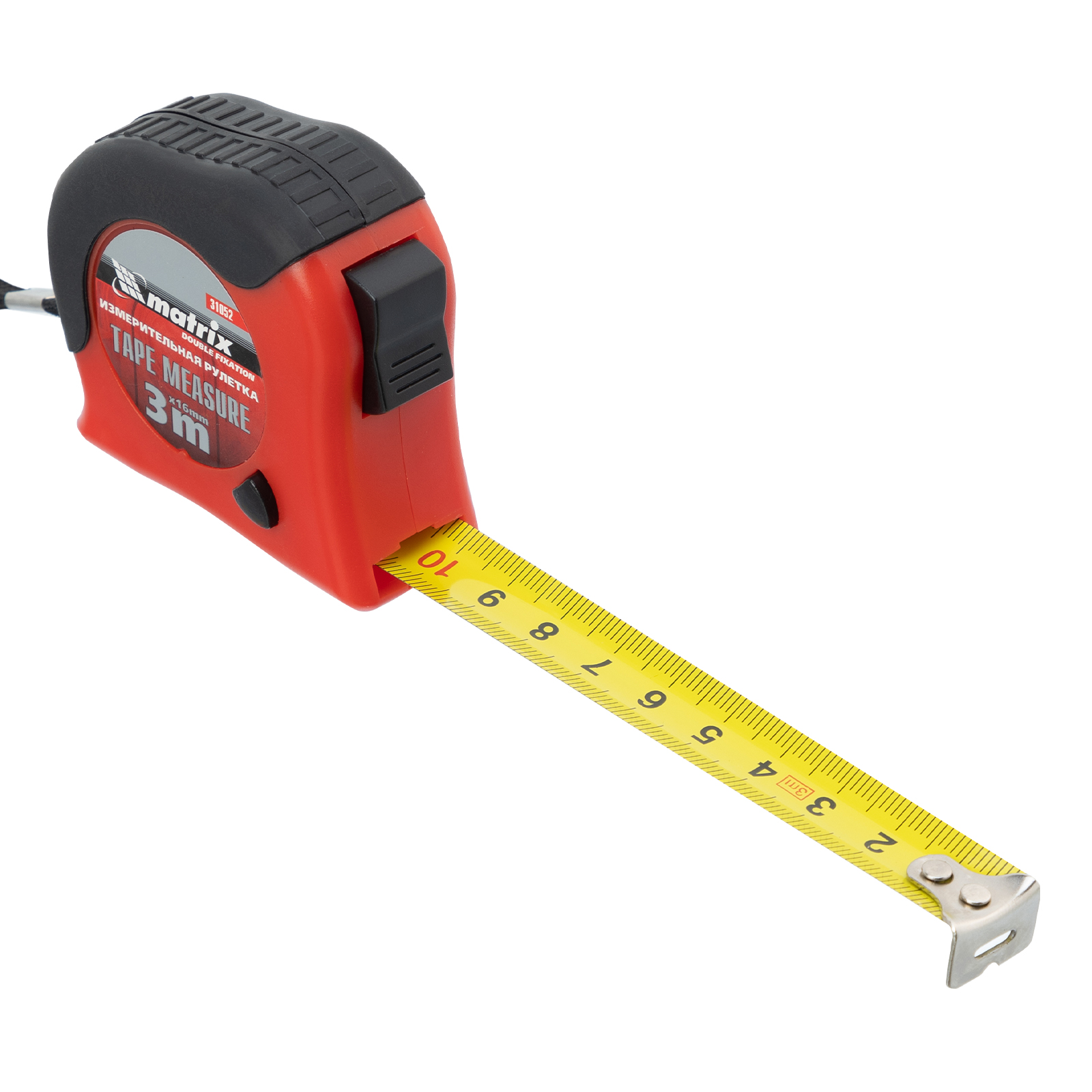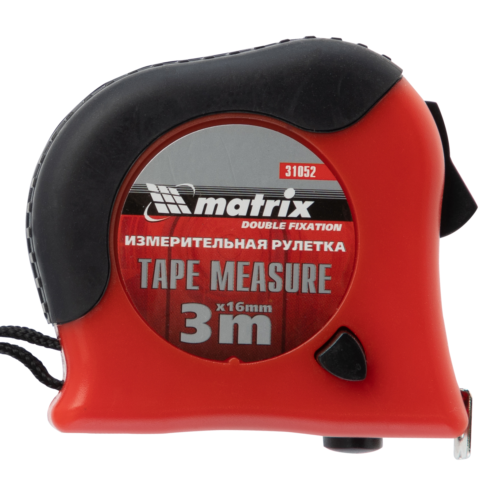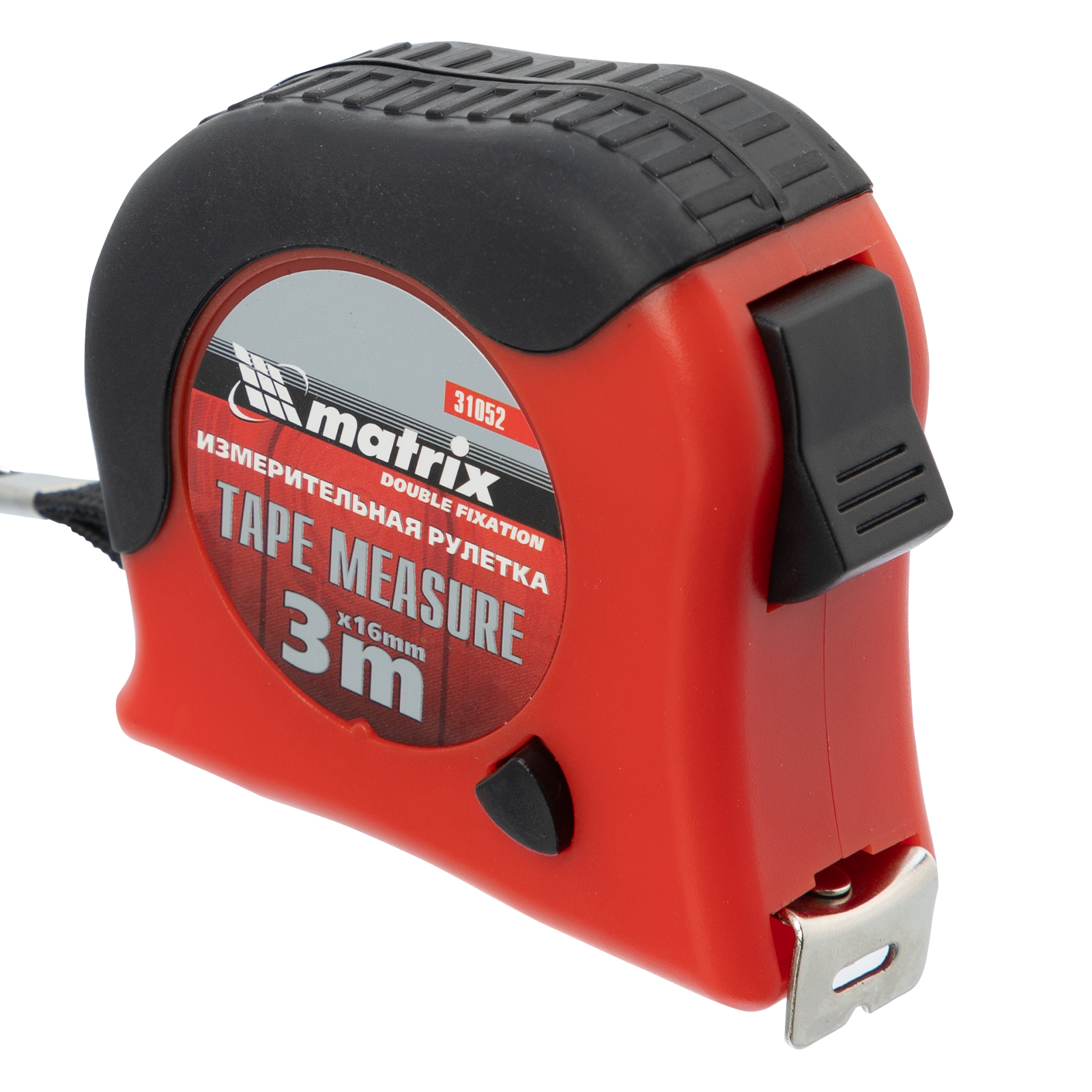 Рулетка Double fixation,3 м х 16 мм,обрезиненный корпус,двойная плавная фиксация Matrix