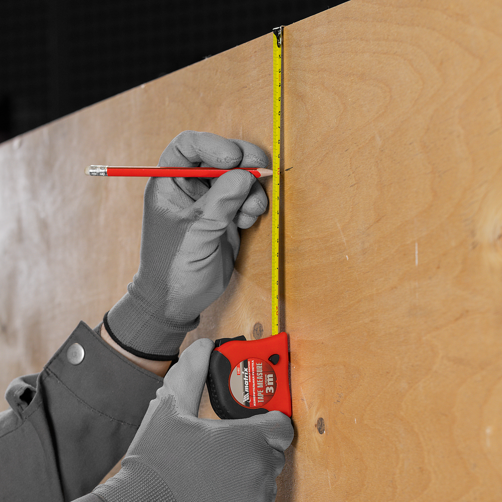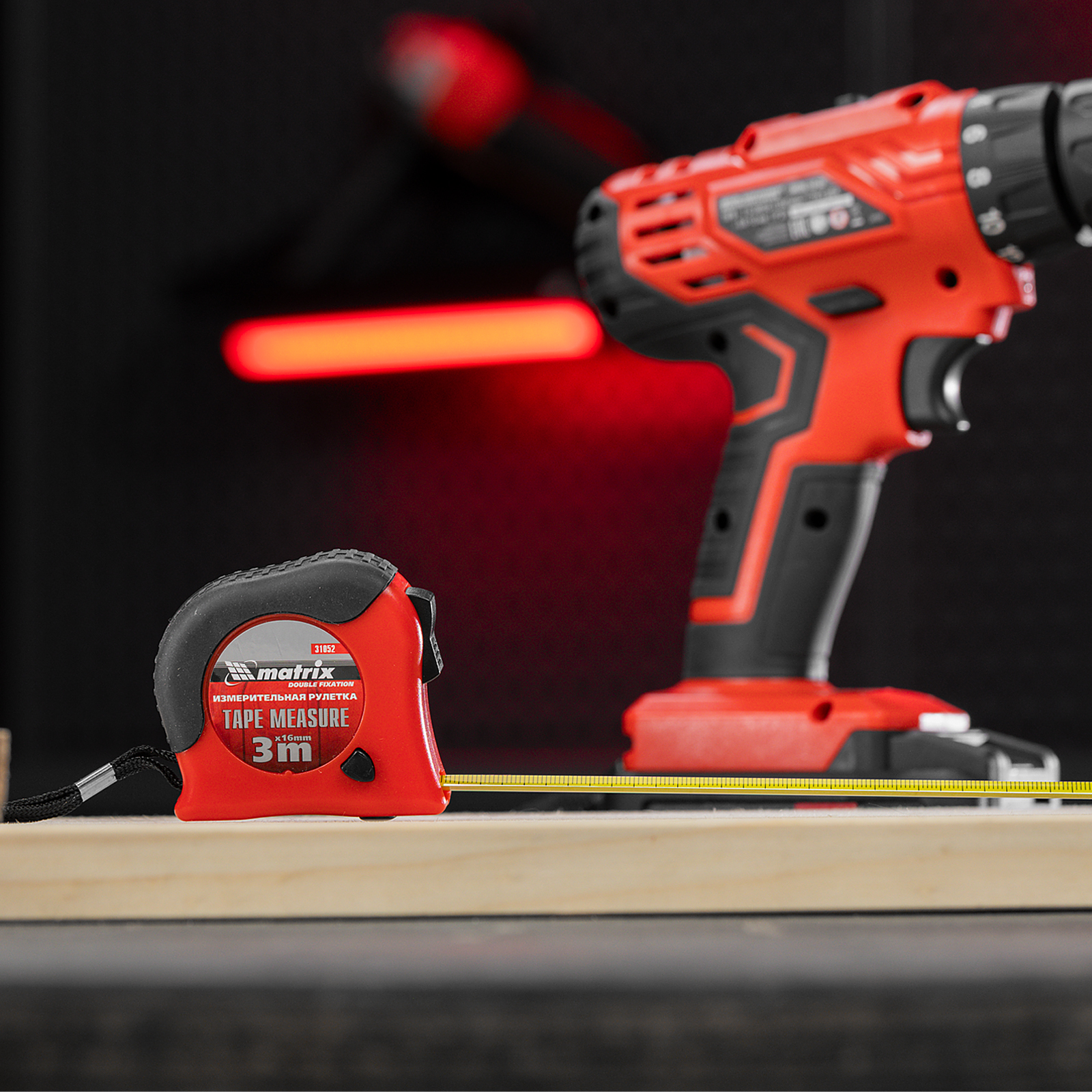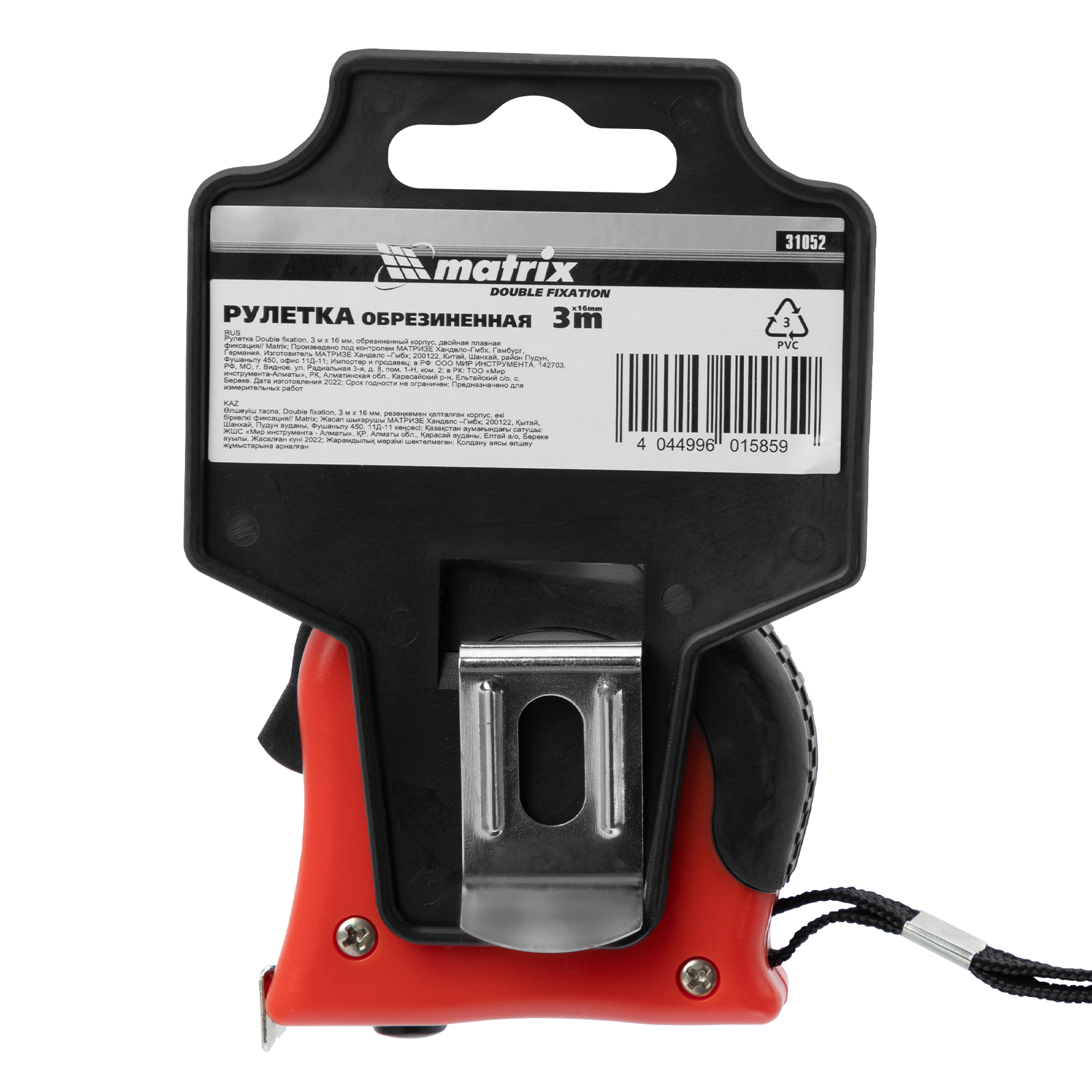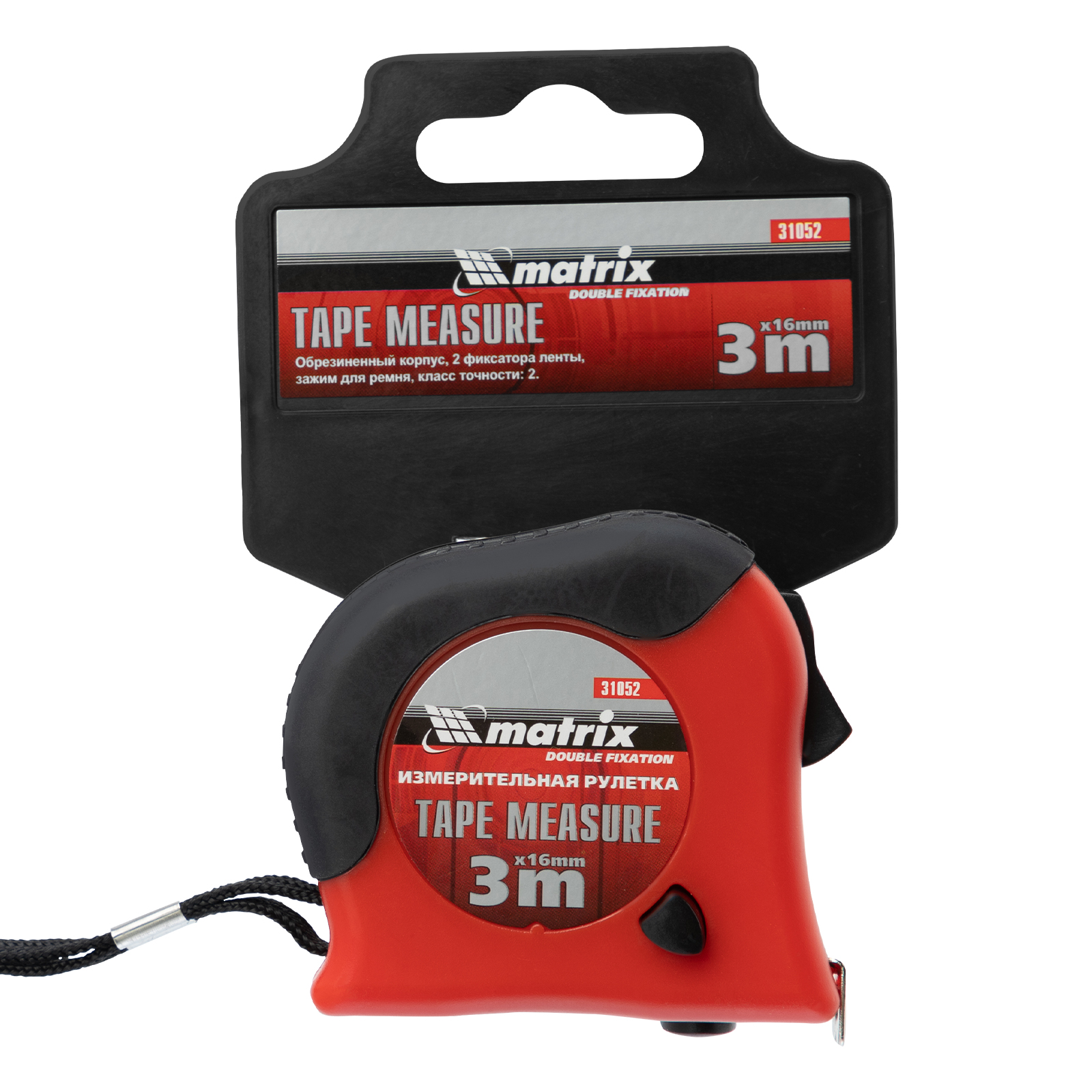 Рулетка Double fixation,3 м х 16 мм,обрезиненный корпус,двойная плавная фиксация Matrix