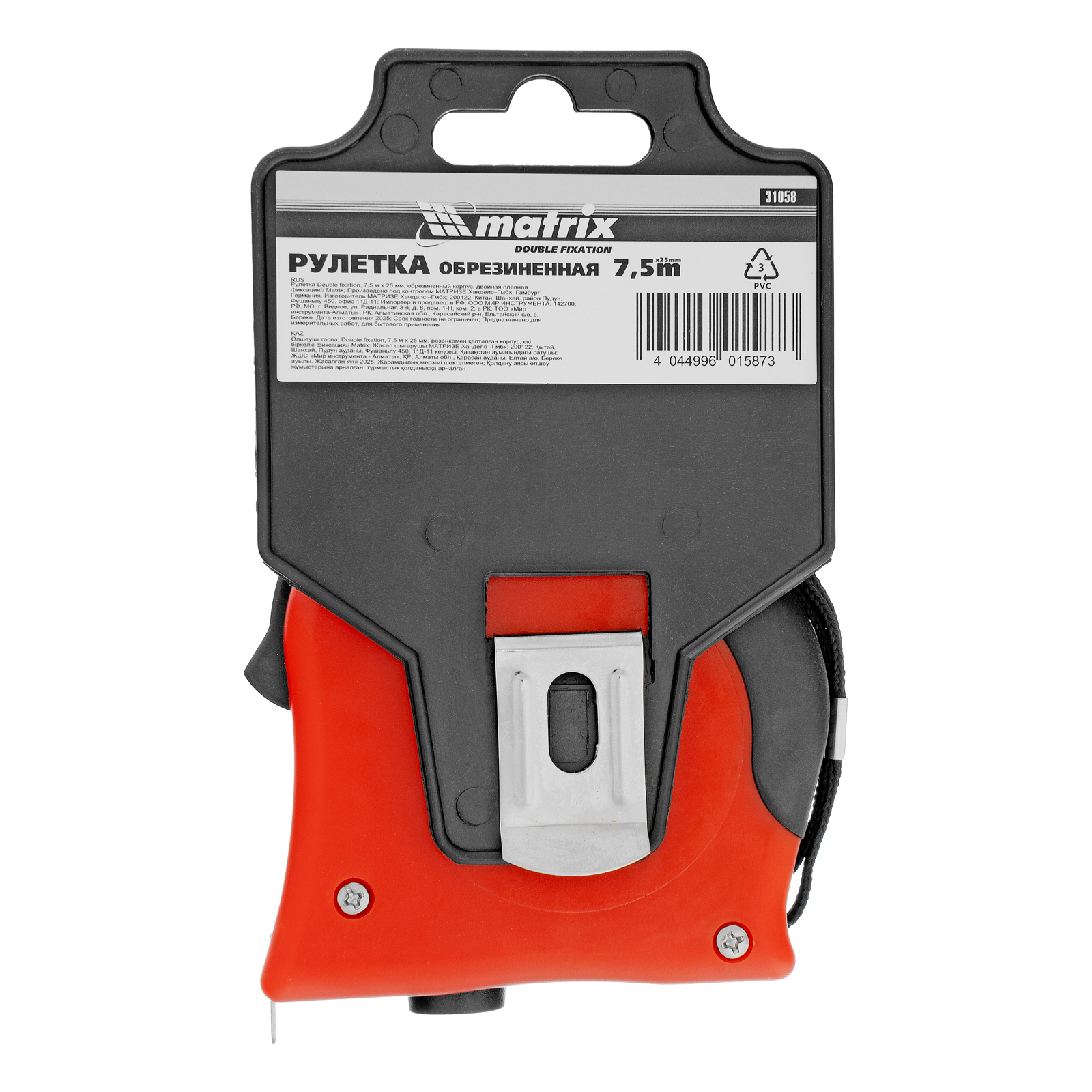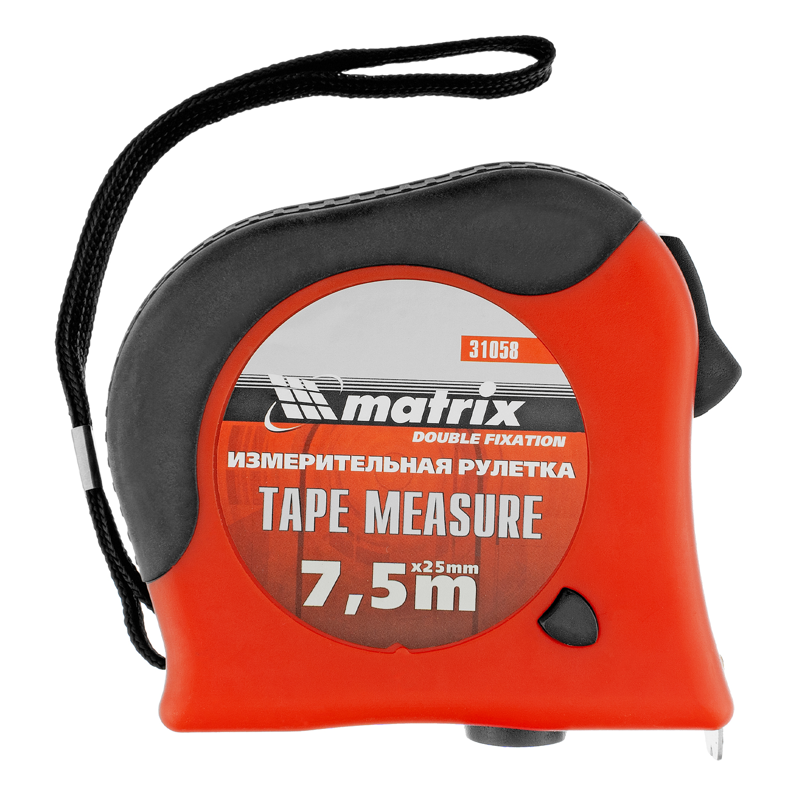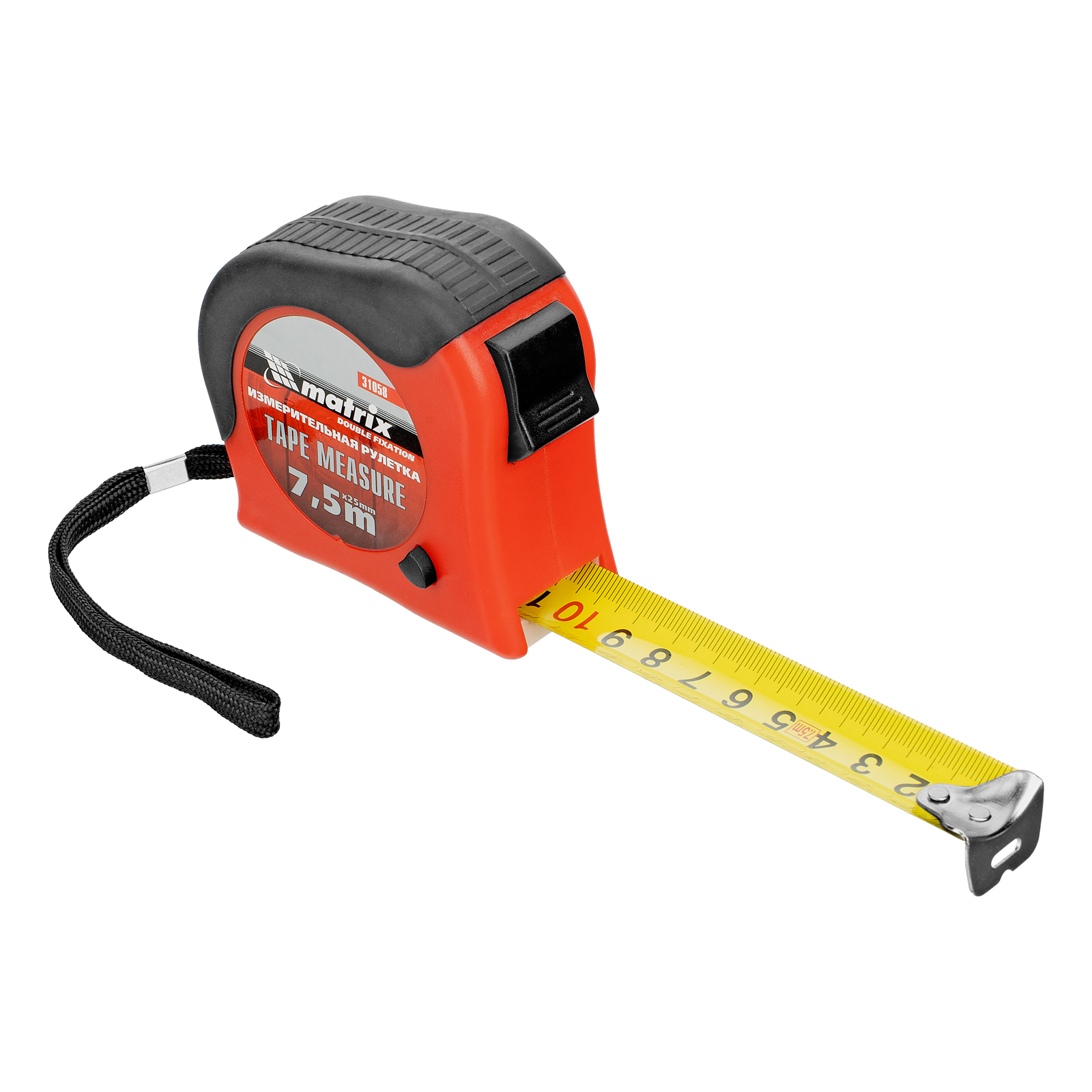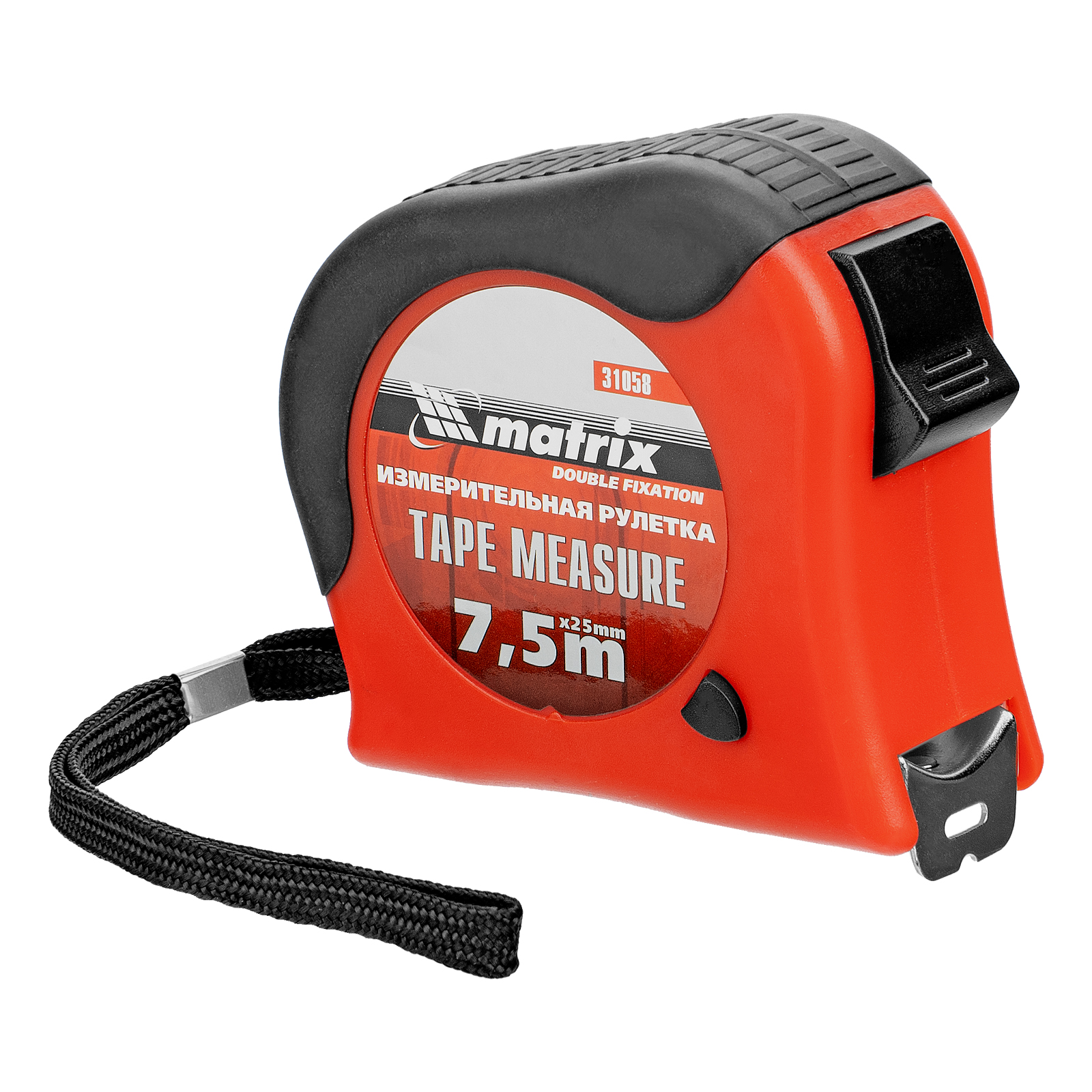 Рулетка Double fixation,7,5 м х 25 мм,обрезиненный корпус,двойная плавная фиксация Matrix